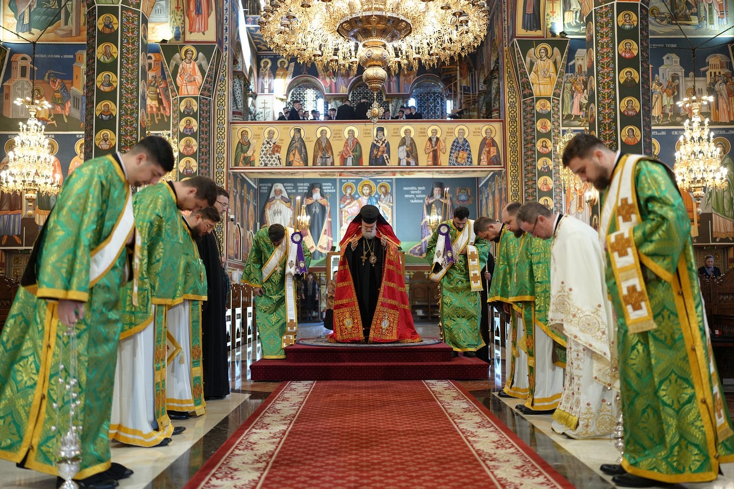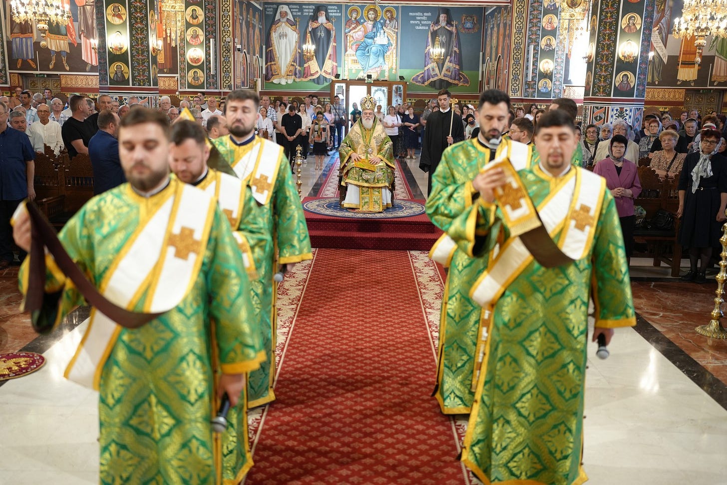 După Sfânta Liturghie, a fost oficiată Vecernia plecării genunchilor, în cadrul căreia au fost rostite cele șapte rugăciuni speciale și au fost binecuvântate frunzele de nuc, simbol al limbilor de foc ce s-au pogorât asupra Sfinților Apostoli.