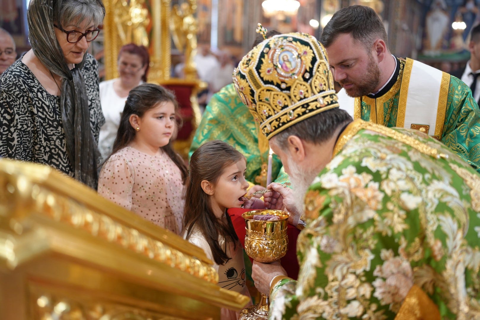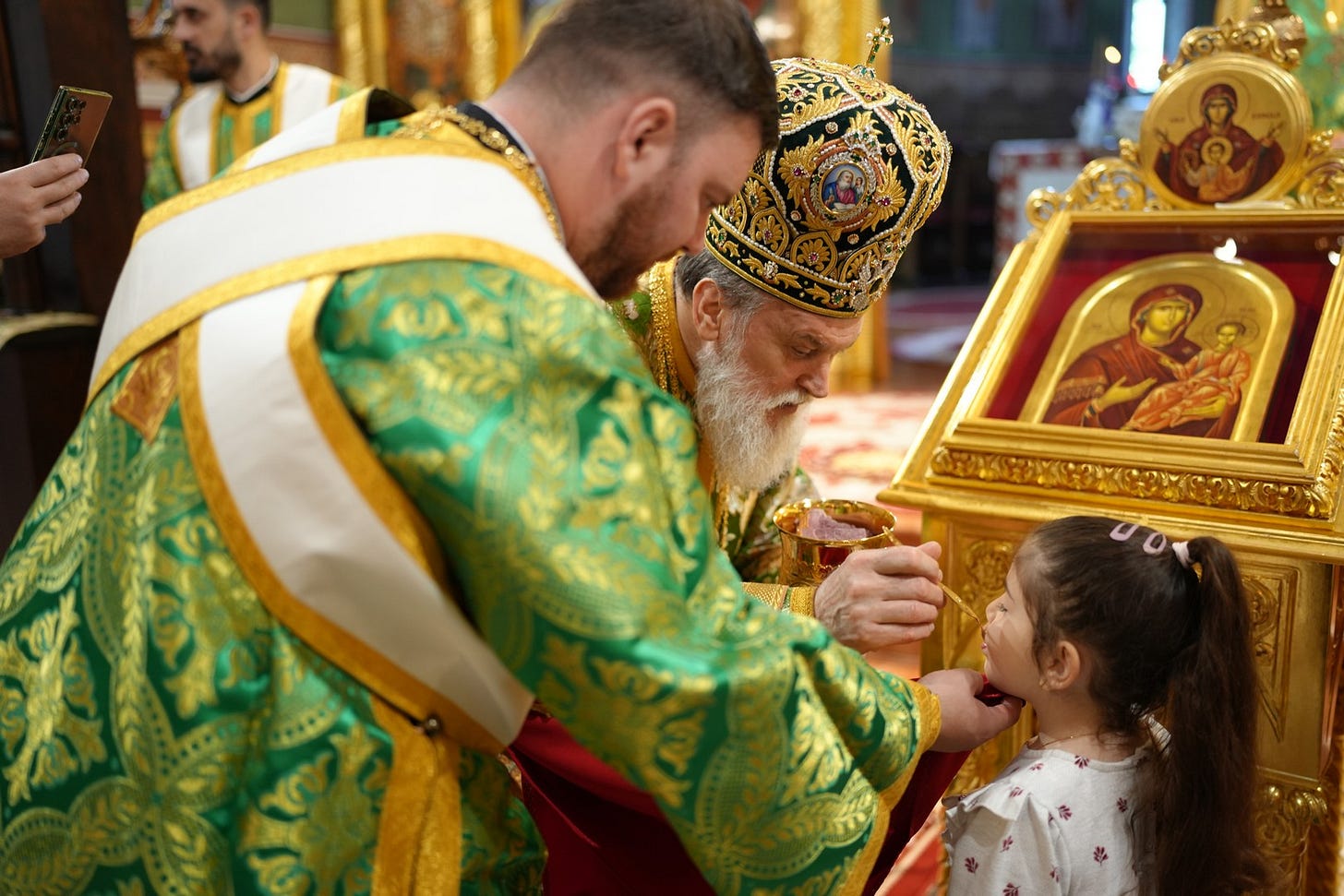 Preasfinția Sa a împărtășit toți copiii prezenți la Sfânta Liturghie.