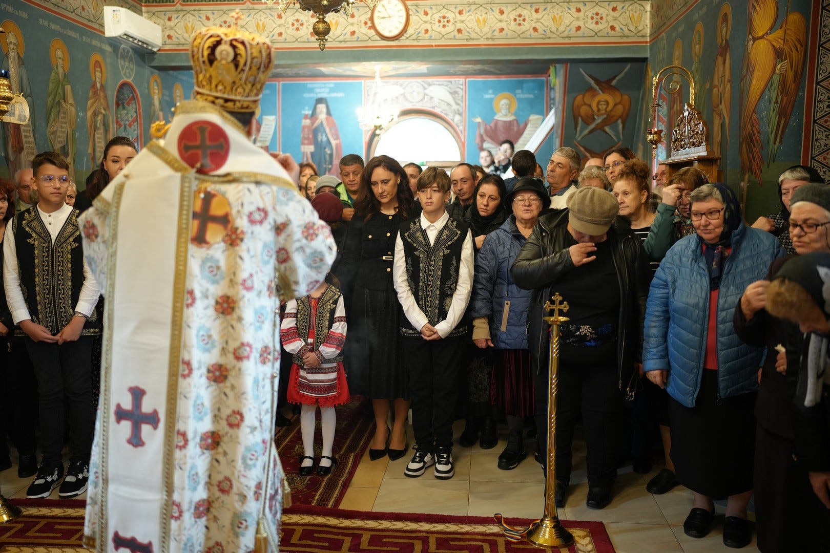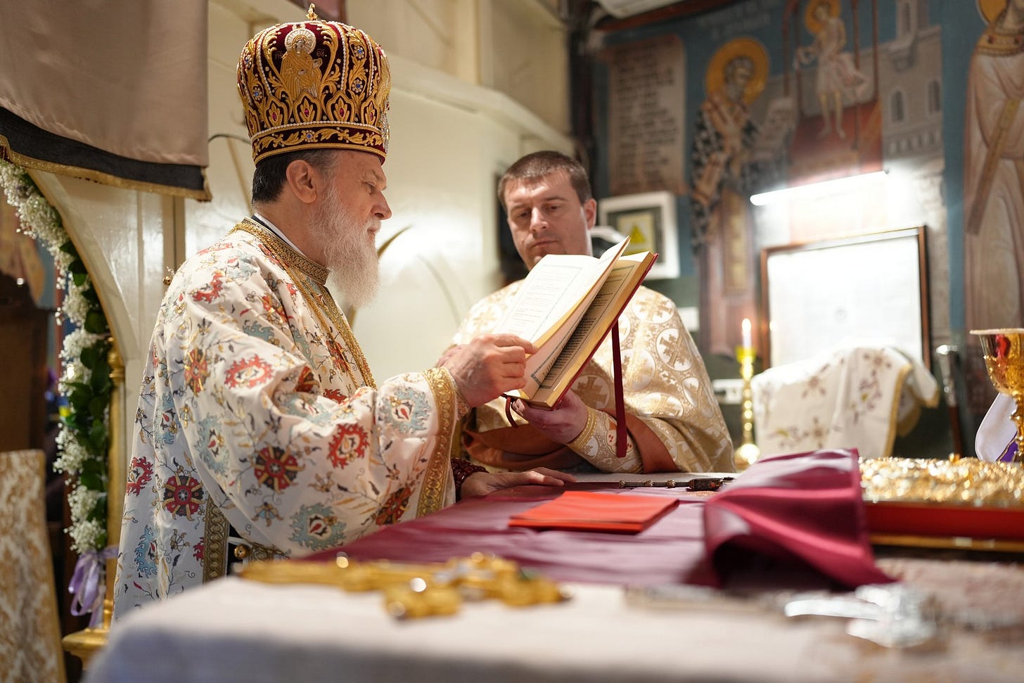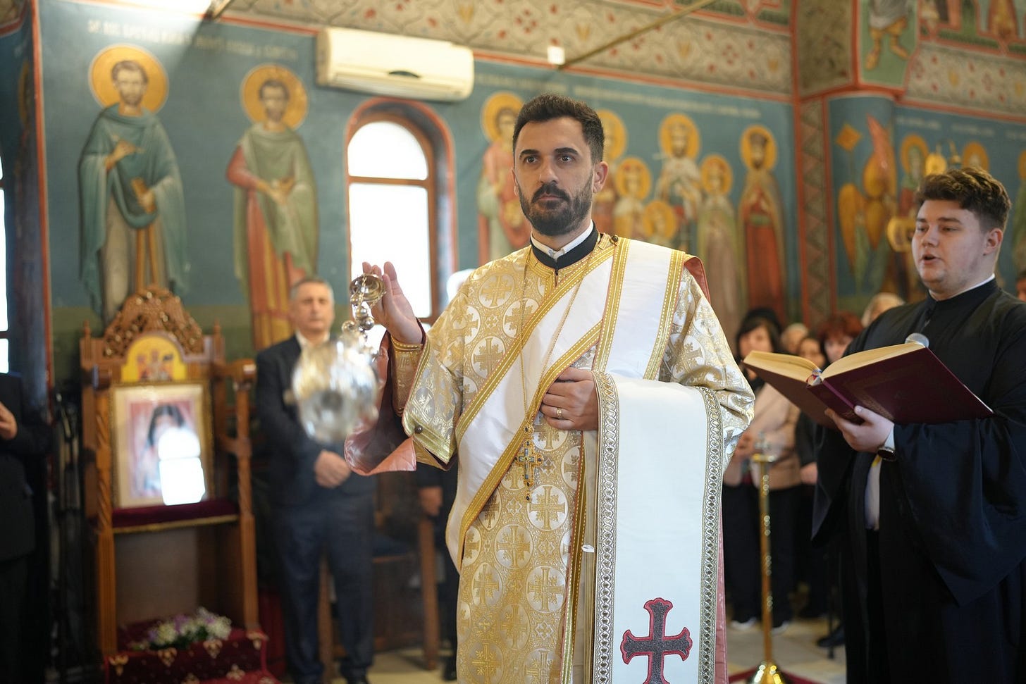 În timpul Sfintei Liturghii, s-a rostit ectenie pentru fericiții ctitori, slujitori, miluitori și binefăcători ai acestei biserici.