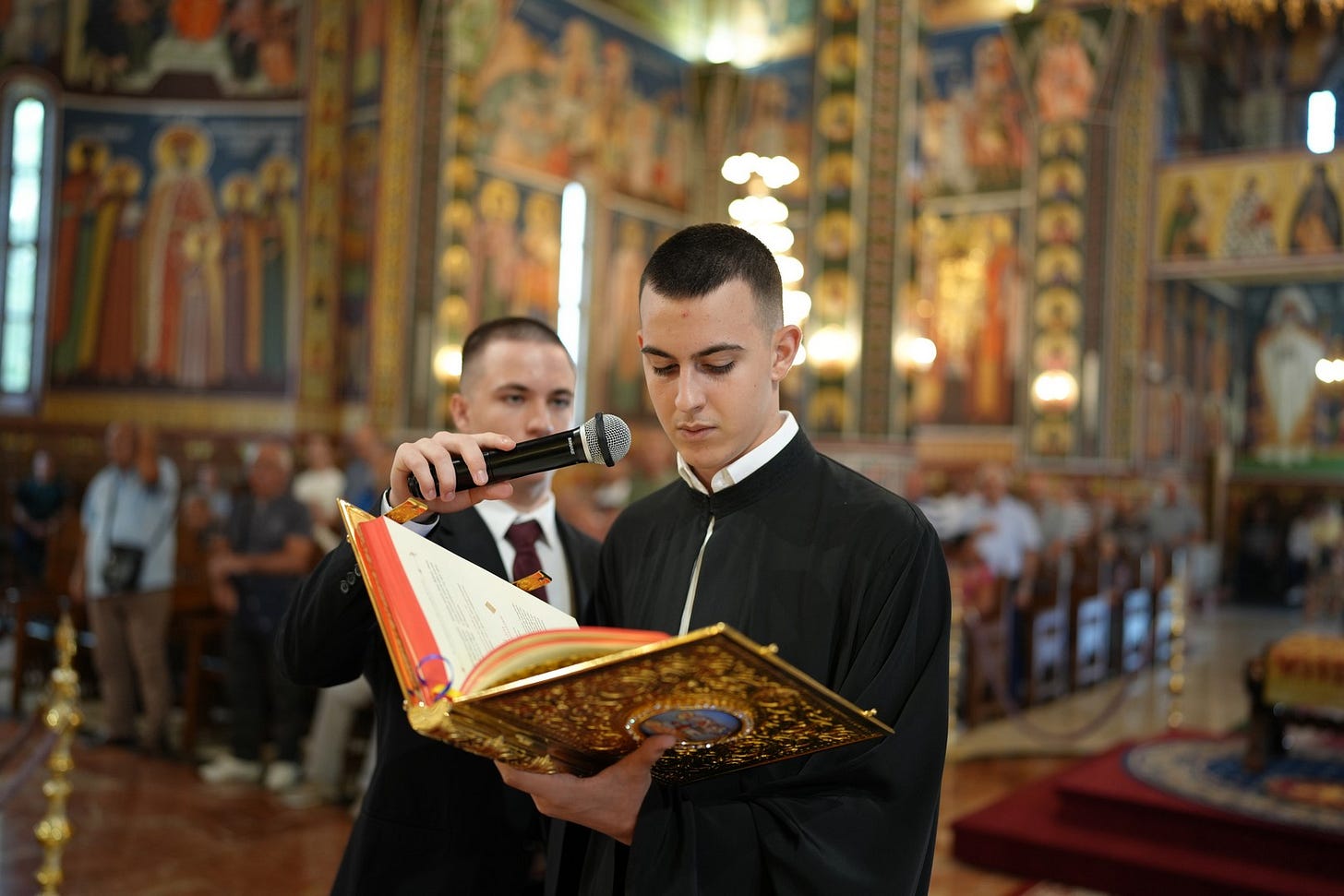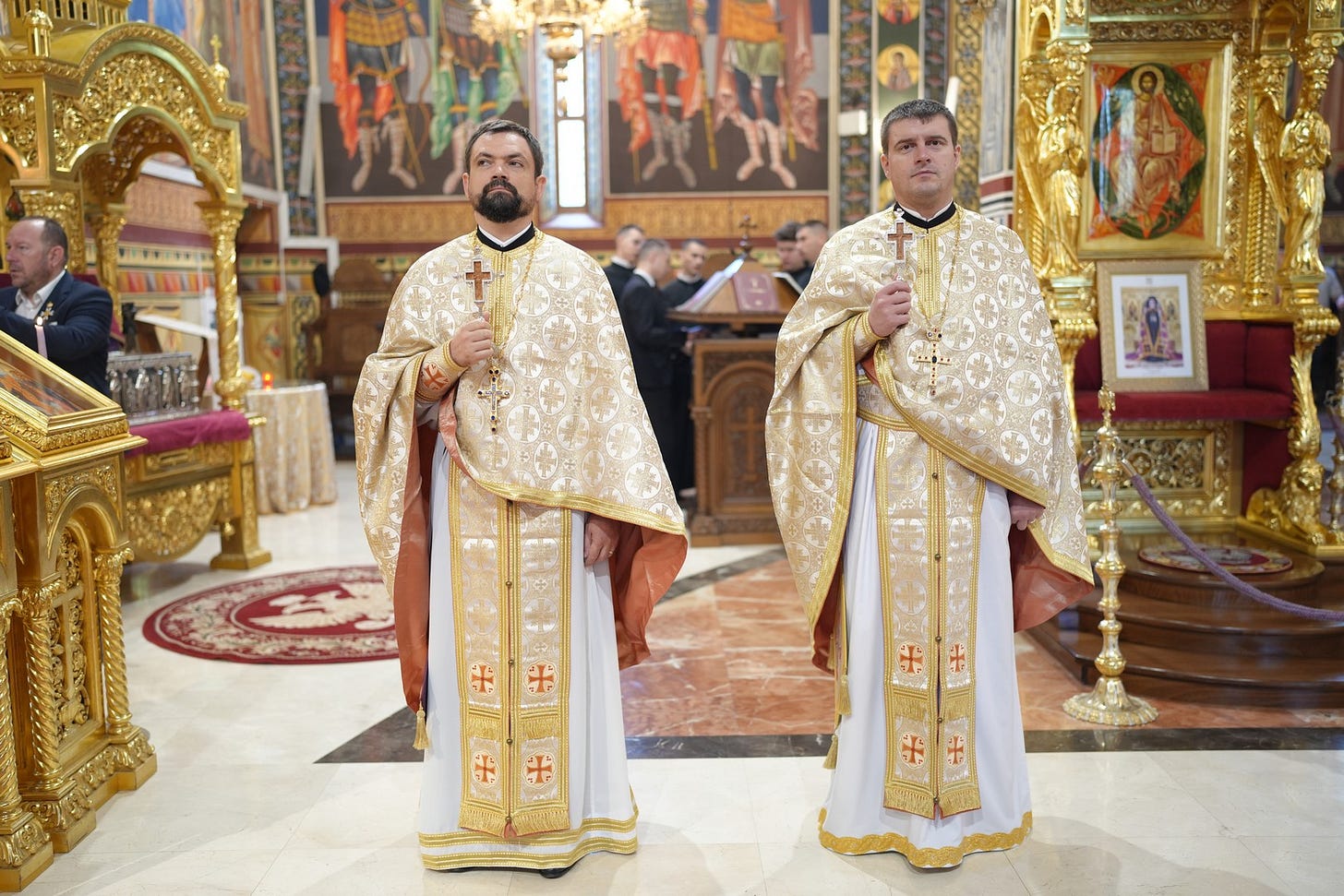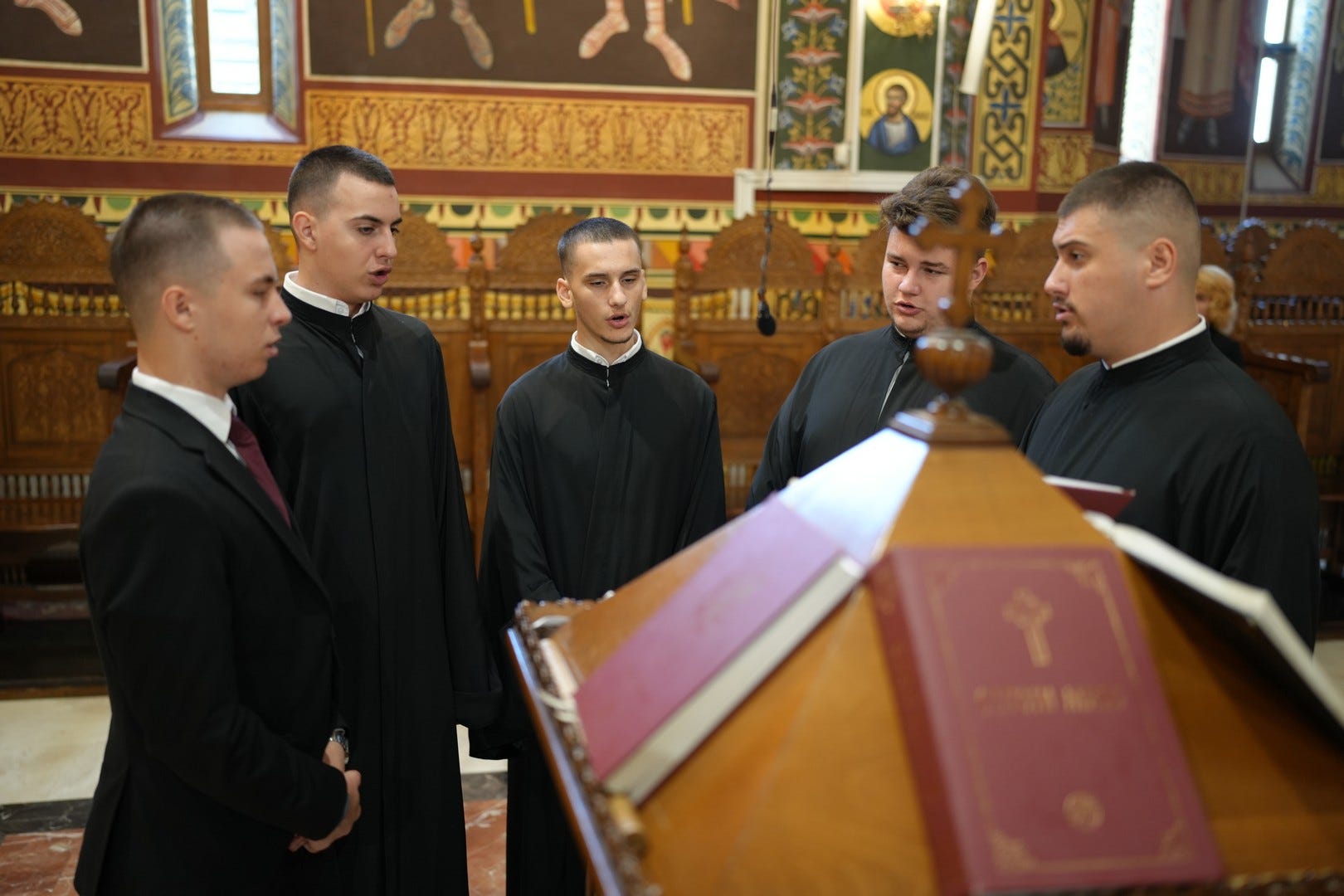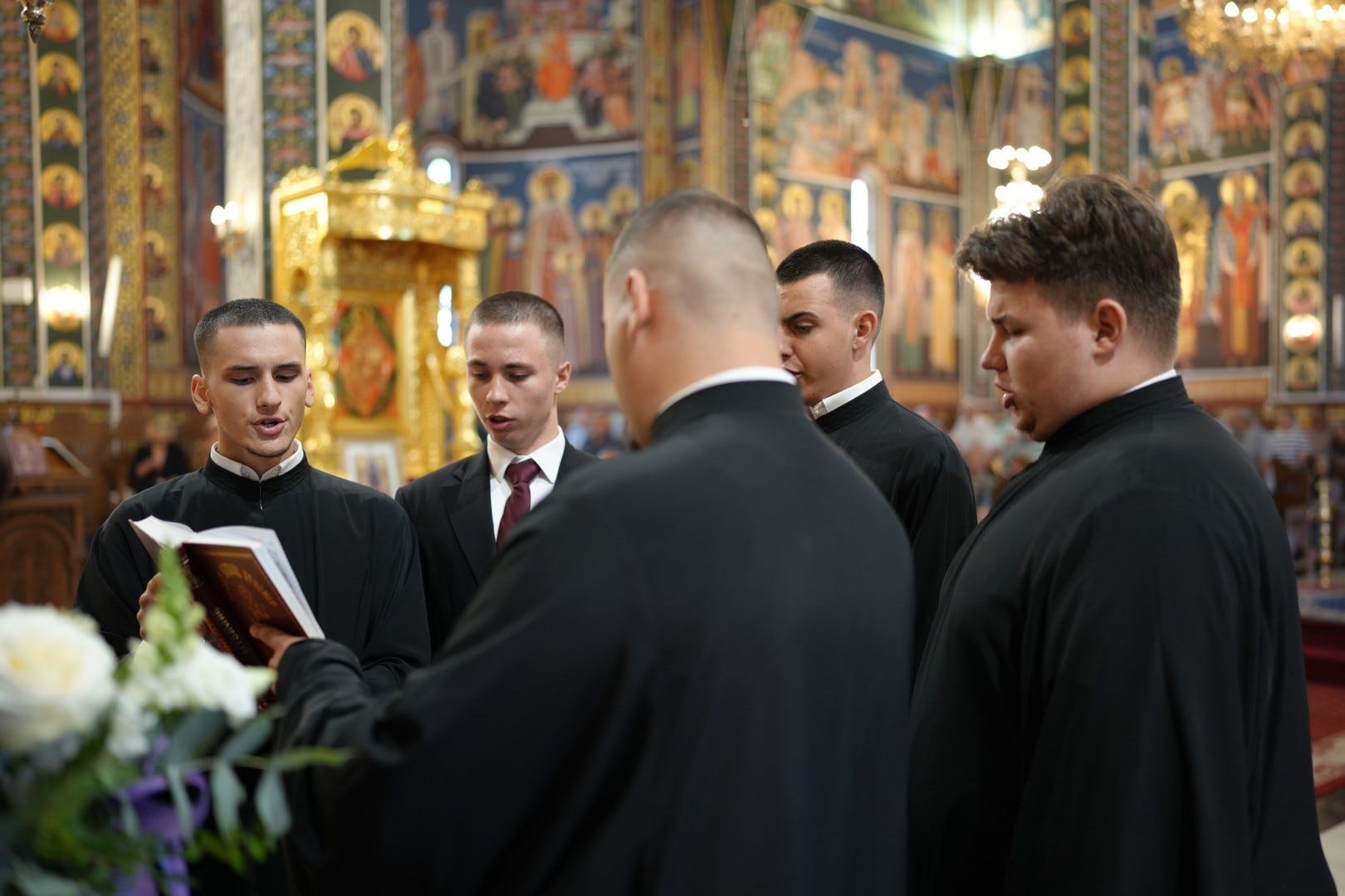 Răspunsurile liturgice au fost date de studenți, absolvenți și elevi ai Seminarului Teologic Ortodox „Sfântul Ioan Gură de Aur” din Slobozia, dirijați de studentul Cristian Andrei Brateș.