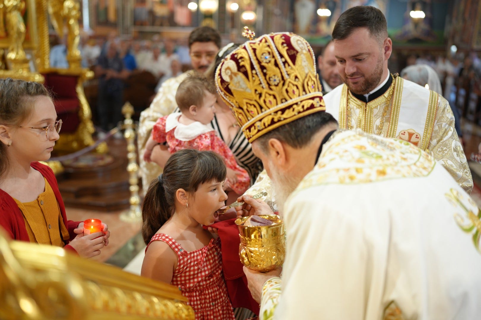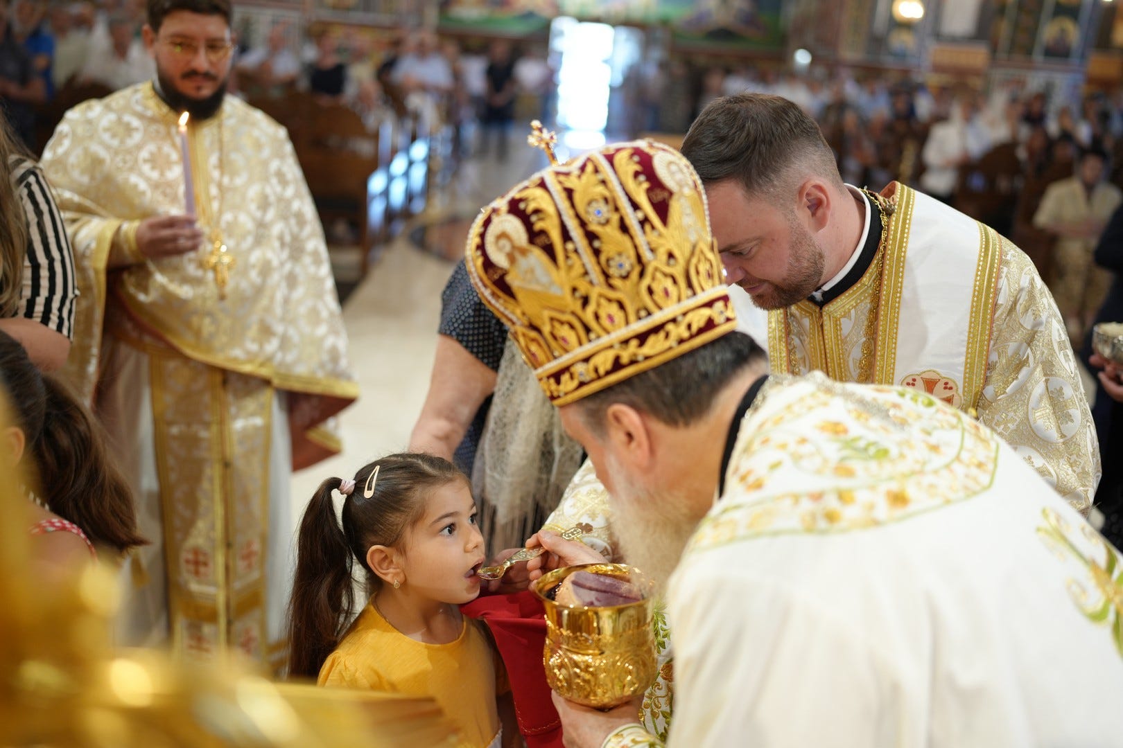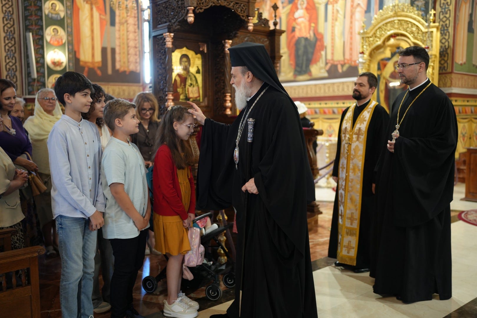 Preasfințitul Părinte i-a împărtășit pe copiii prezenți la slujbă, îndemnându-i pe părinți să-i crească în dragoste de Dumnezeu și în lumina Evangheliei.