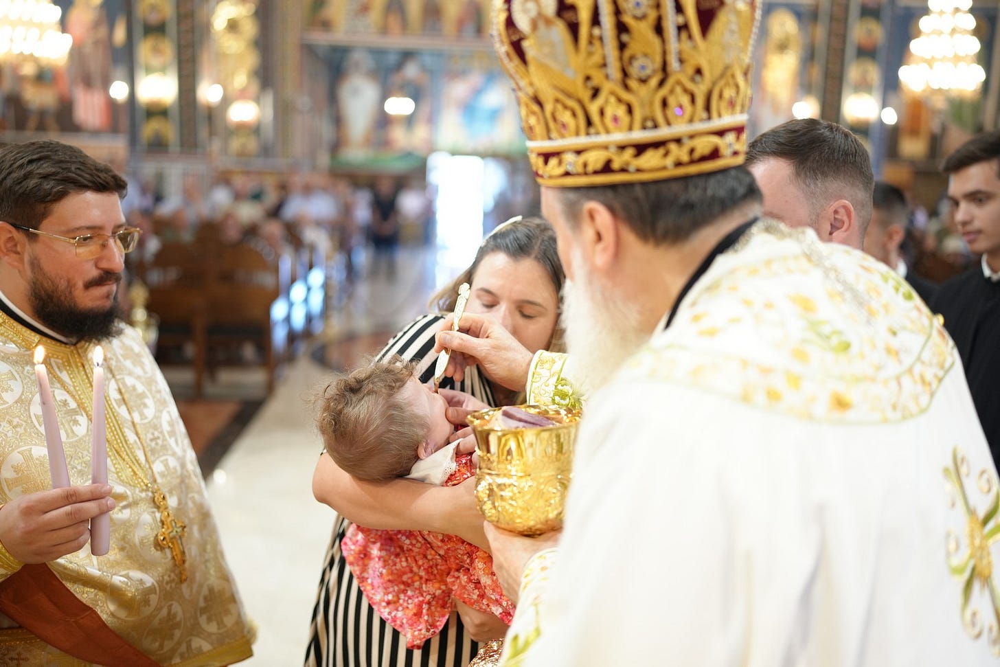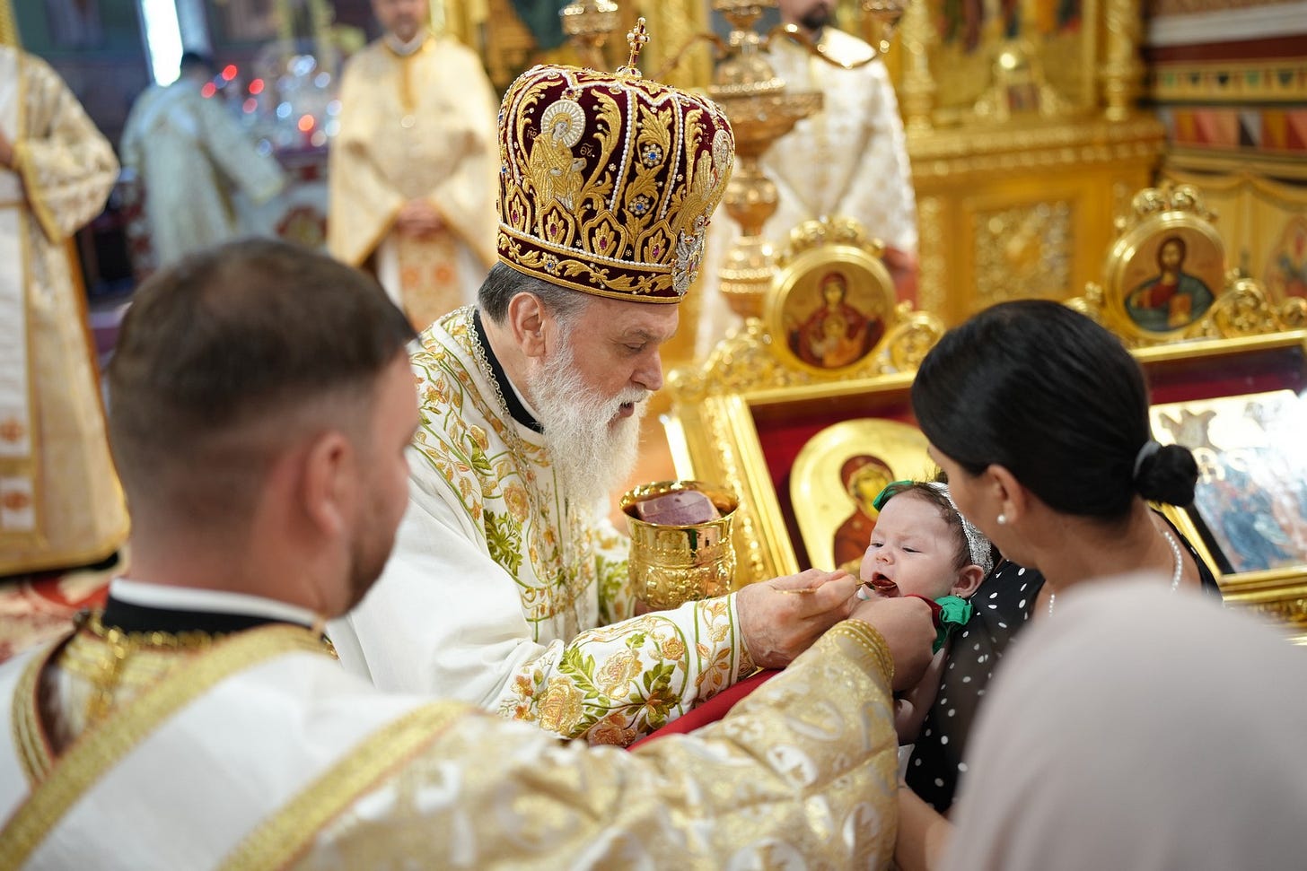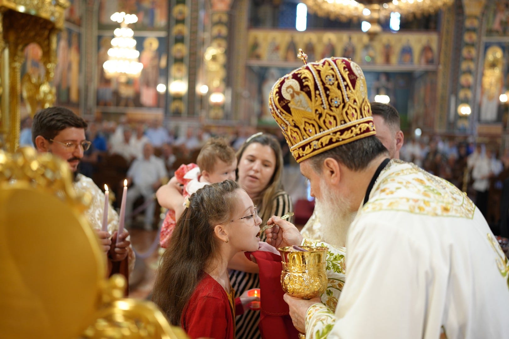 Preasfințitul Părinte i-a împărtășit pe copiii prezenți la slujbă, îndemnându-i pe părinți să-i crească în dragoste de Dumnezeu și în lumina Evangheliei.