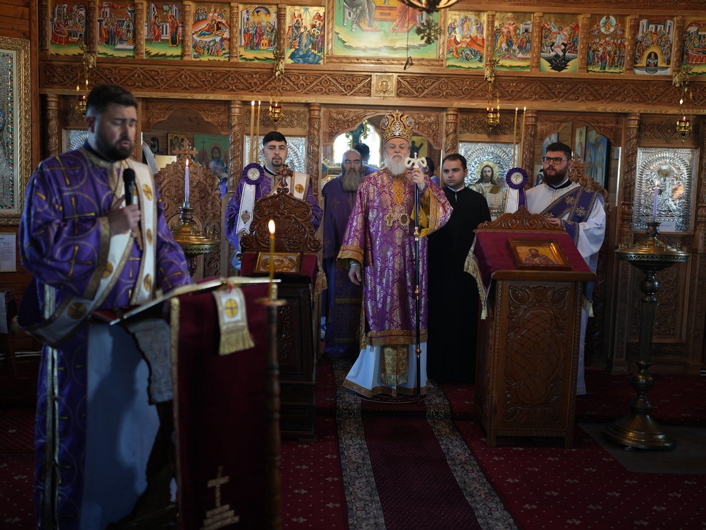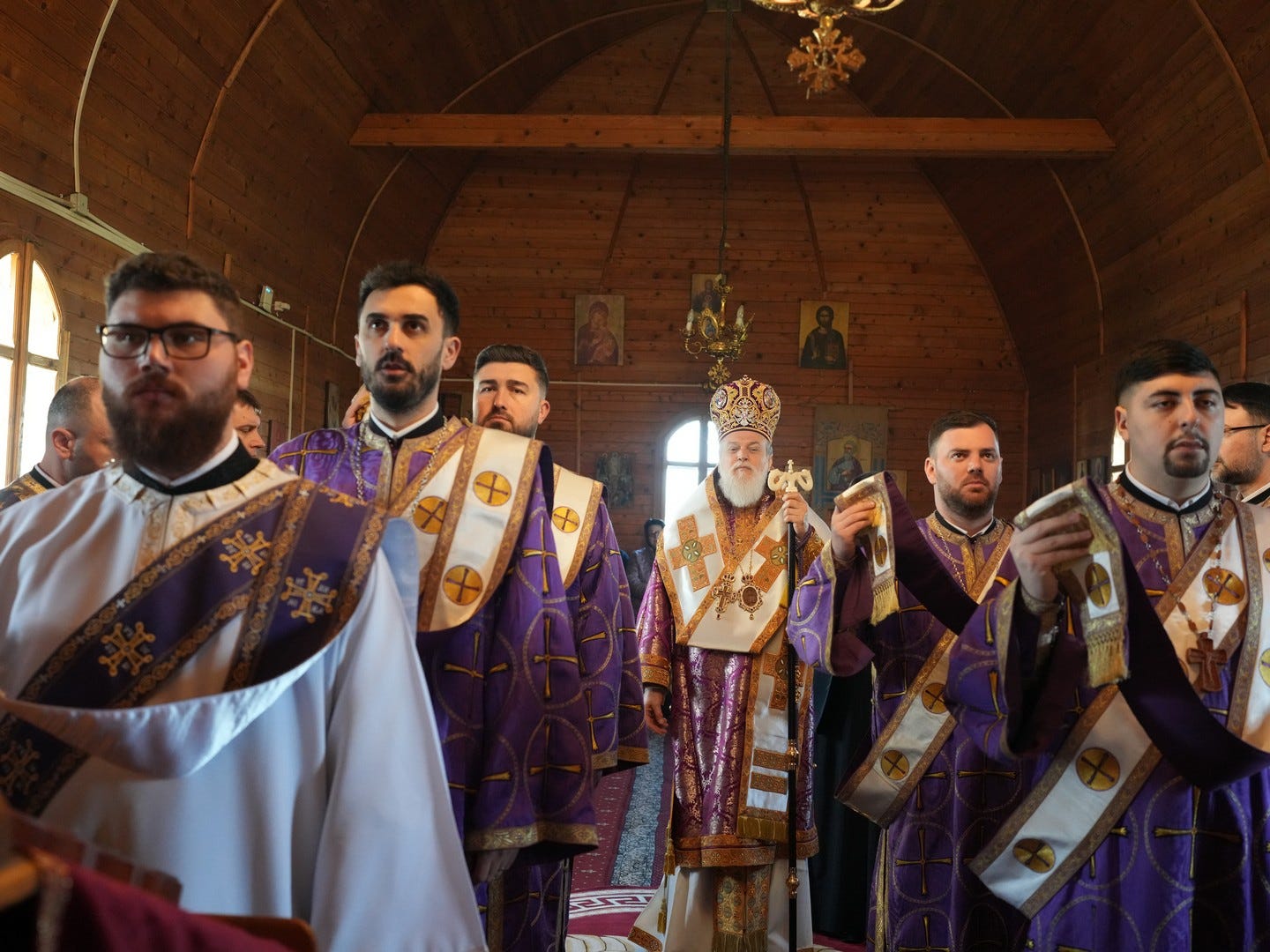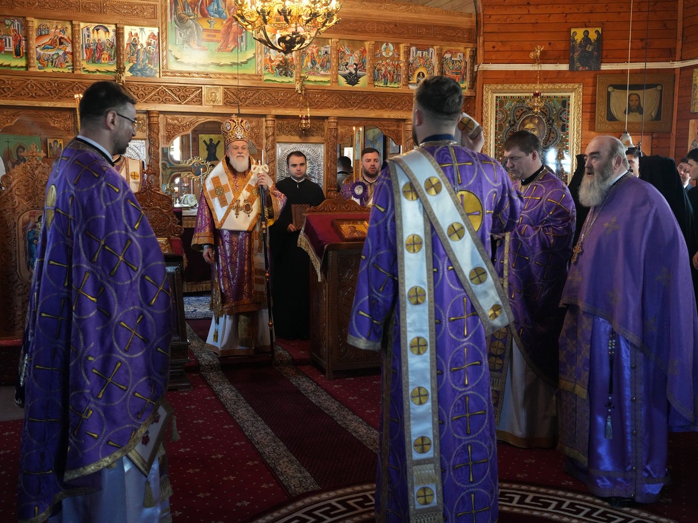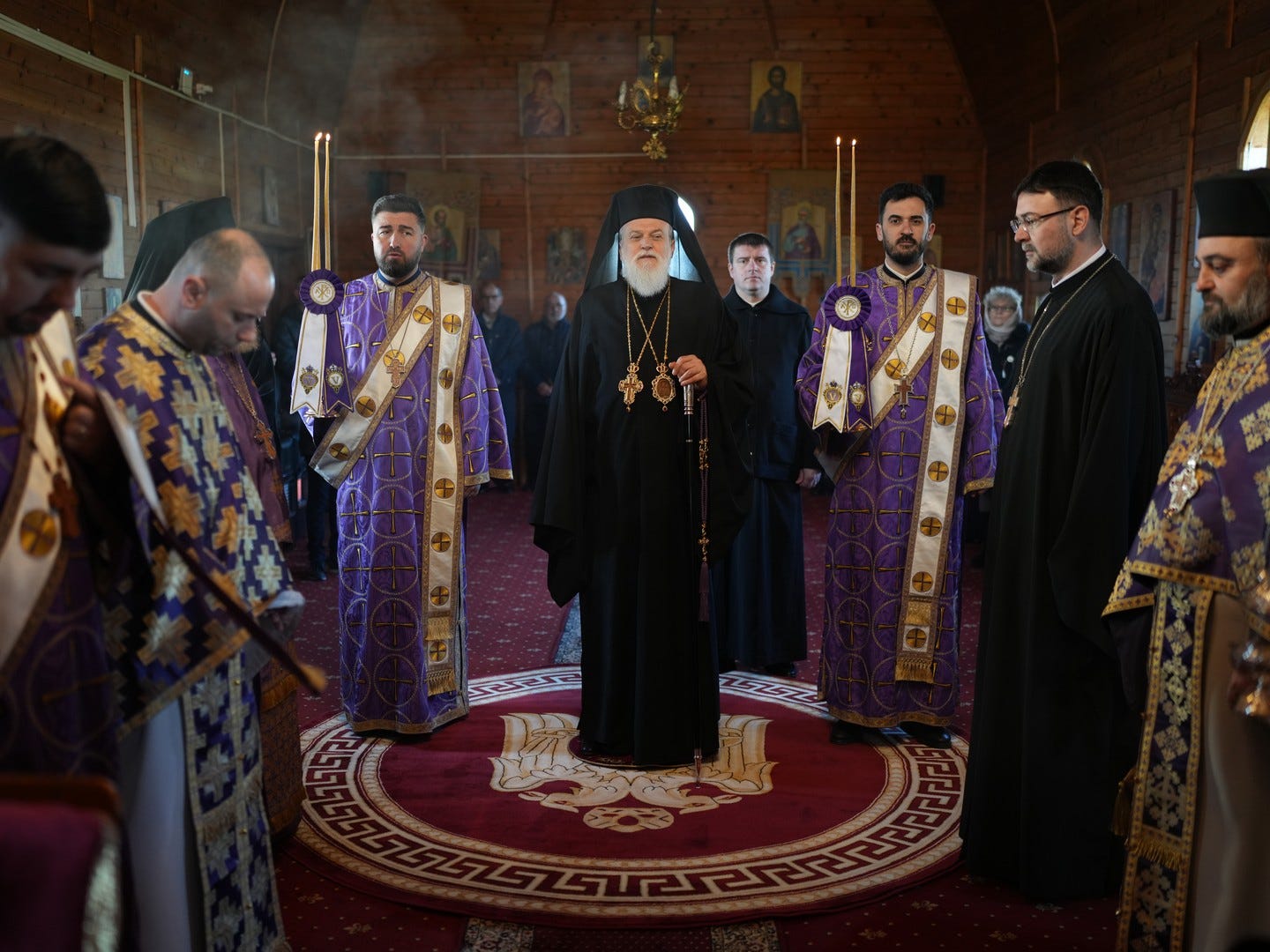 Sub protia Preasfinției Sale au participat la slujbă preacuviosul părinte Arhimandrit Rafail, Vicar Eparhial, preacucernicii părinți consilieri Florin Ionescu, Marius Gabriel Purcărea, Nicușor Silviu Dascălu, Cornel Andrei Petre, părintele stareț Serafim, arhidiaconi și un ierodiacon.