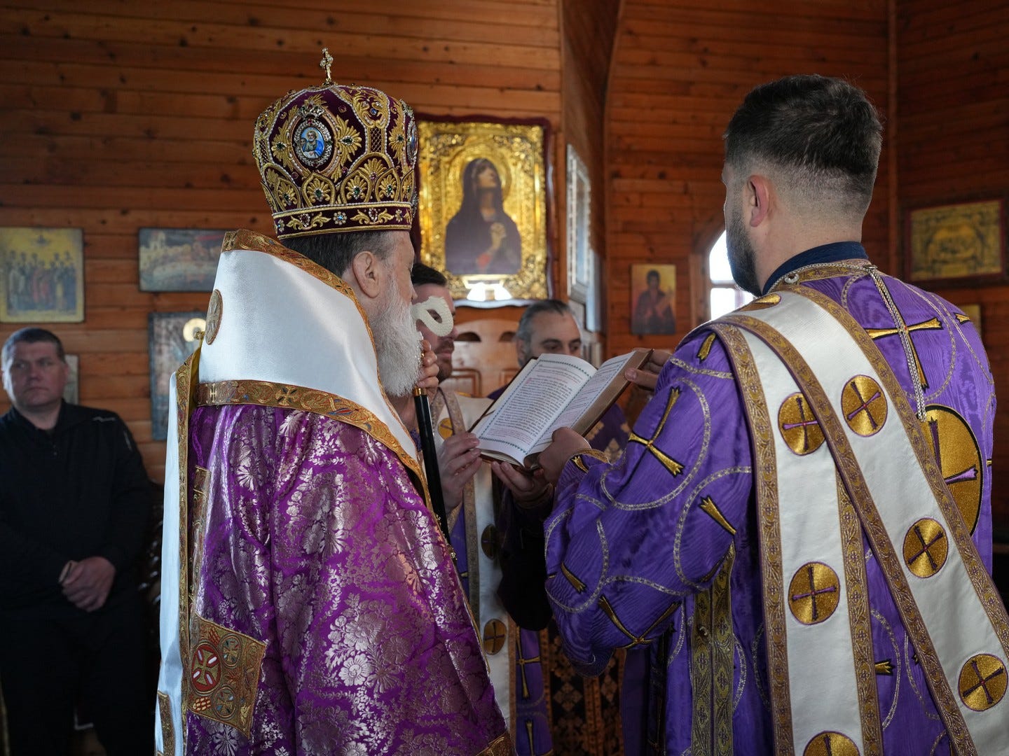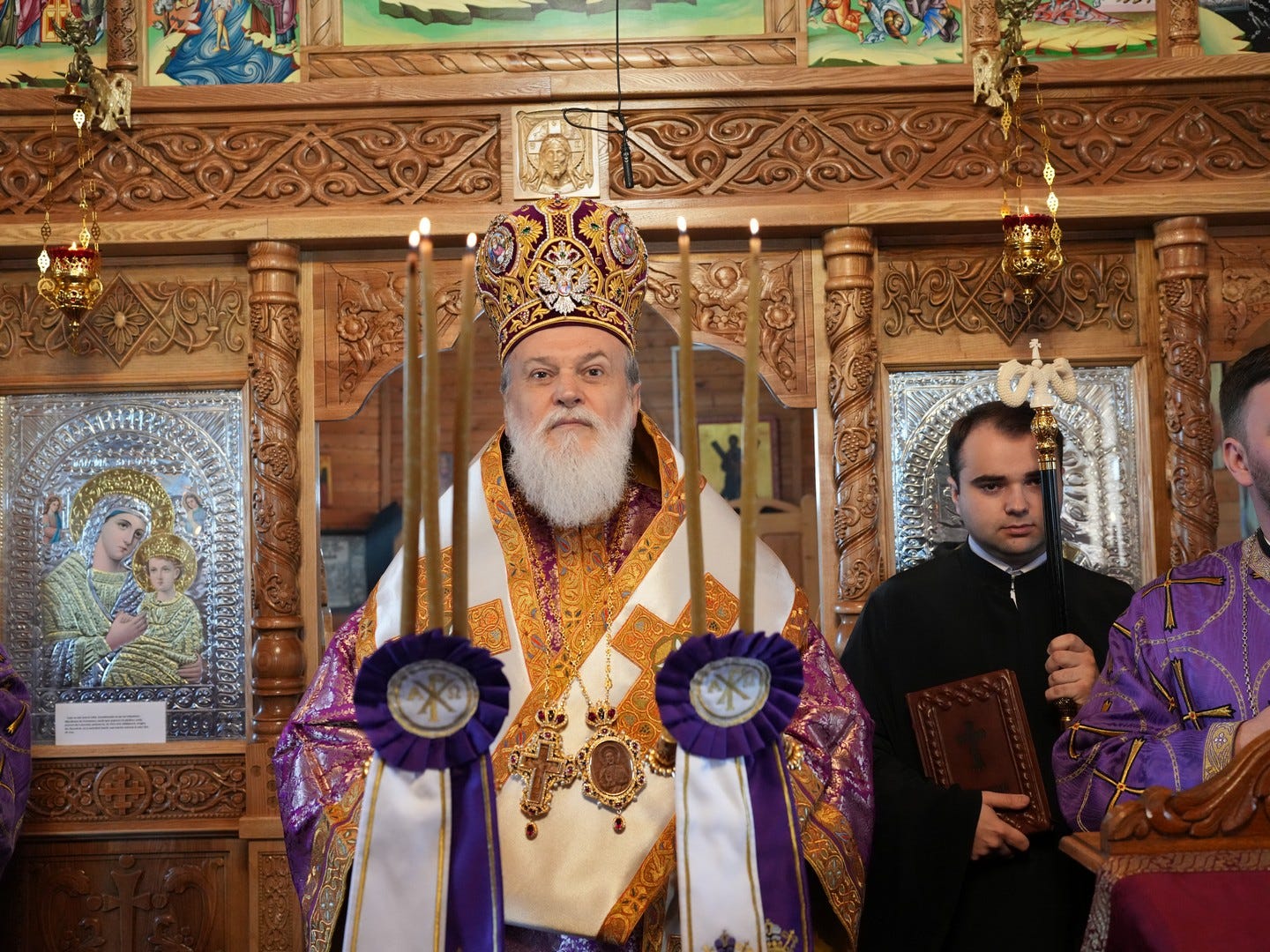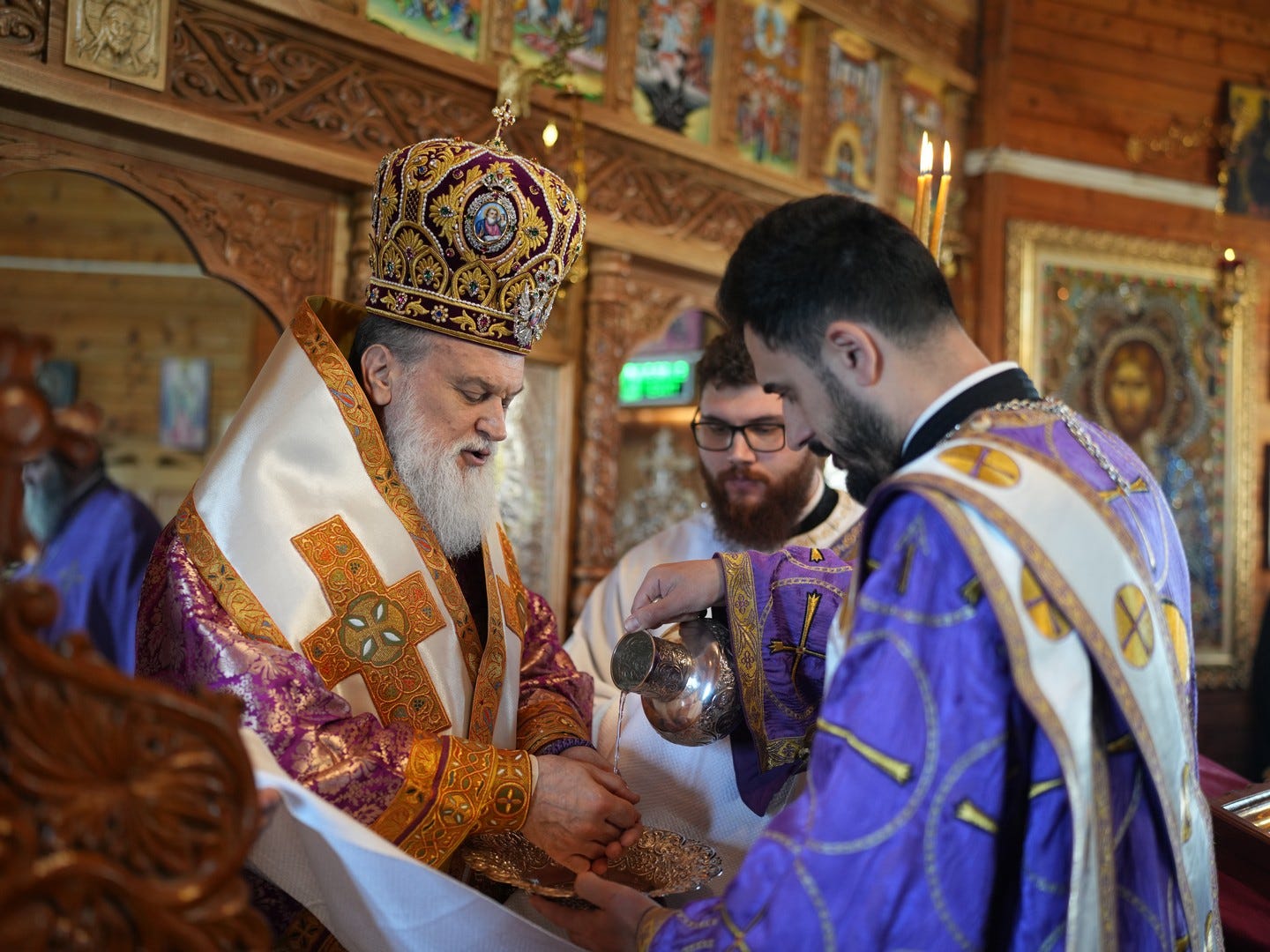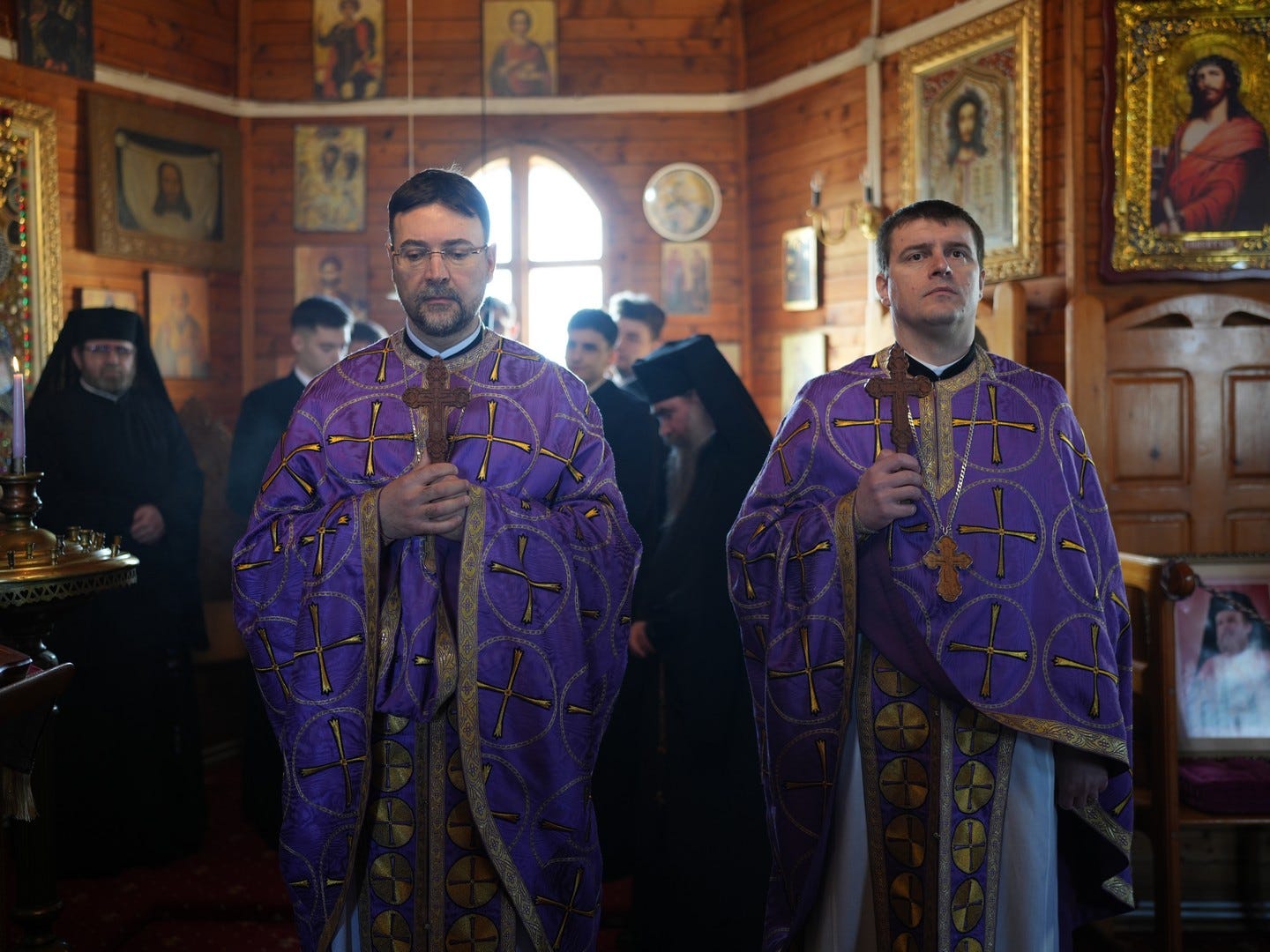 Sub protia Preasfinției Sale au participat la slujbă preacuviosul părinte Arhimandrit Rafail, Vicar Eparhial, preacucernicii părinți consilieri Florin Ionescu, Marius Gabriel Purcărea, Nicușor Silviu Dascălu, Cornel Andrei Petre, părintele stareț Serafim, arhidiaconi și un ierodiacon.