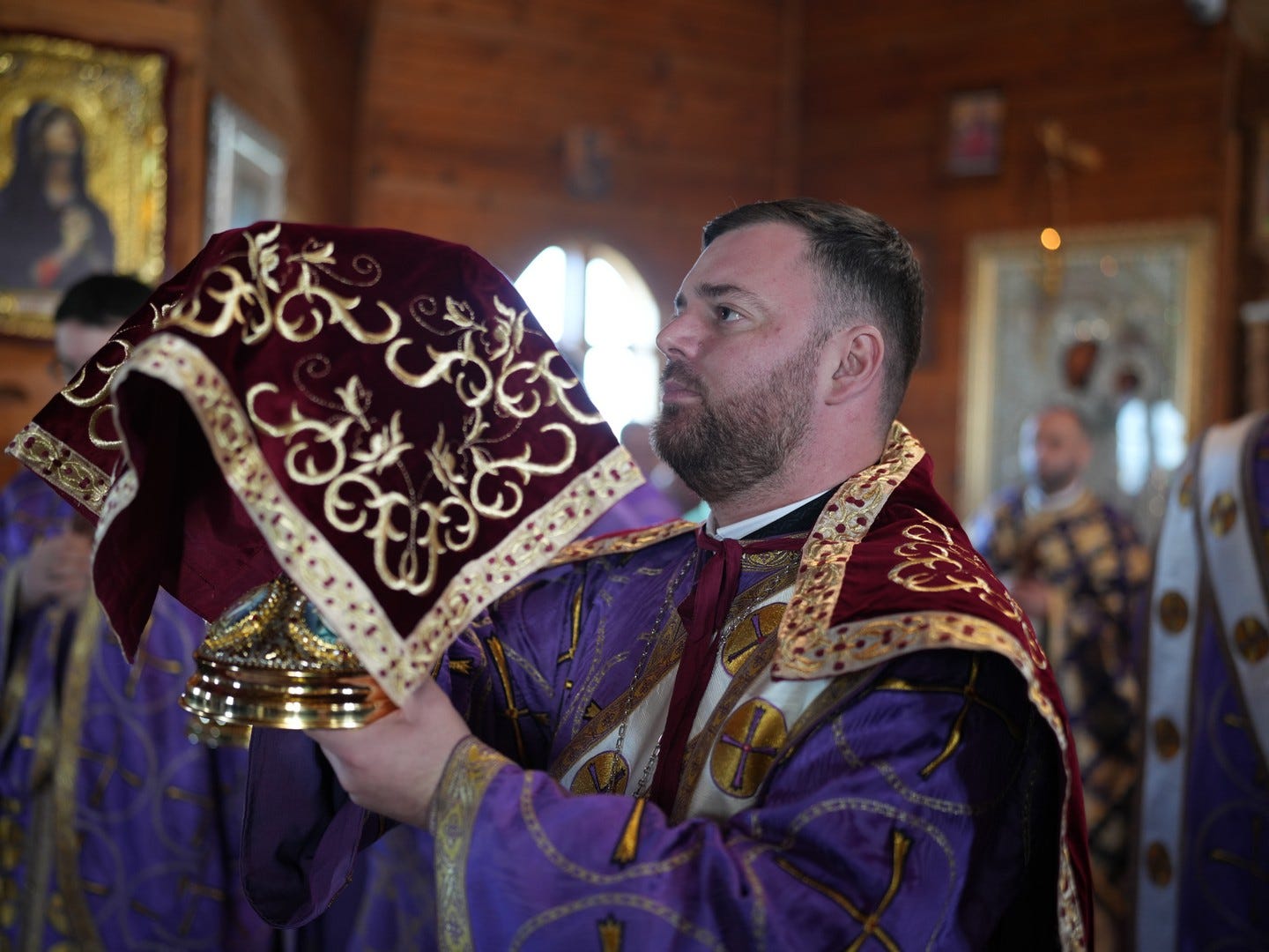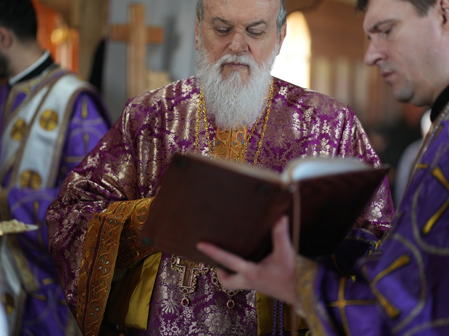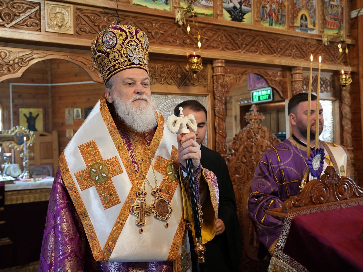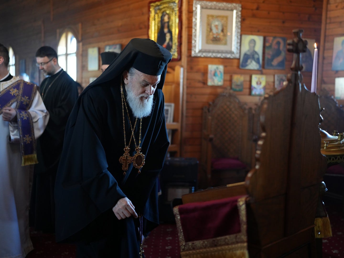 Sub protia Preasfinției Sale au participat la slujbă preacuviosul părinte Arhimandrit Rafail, Vicar Eparhial, preacucernicii părinți consilieri Florin Ionescu, Marius Gabriel Purcărea, Nicușor Silviu Dascălu, Cornel Andrei Petre, părintele stareț Serafim, arhidiaconi și un ierodiacon.