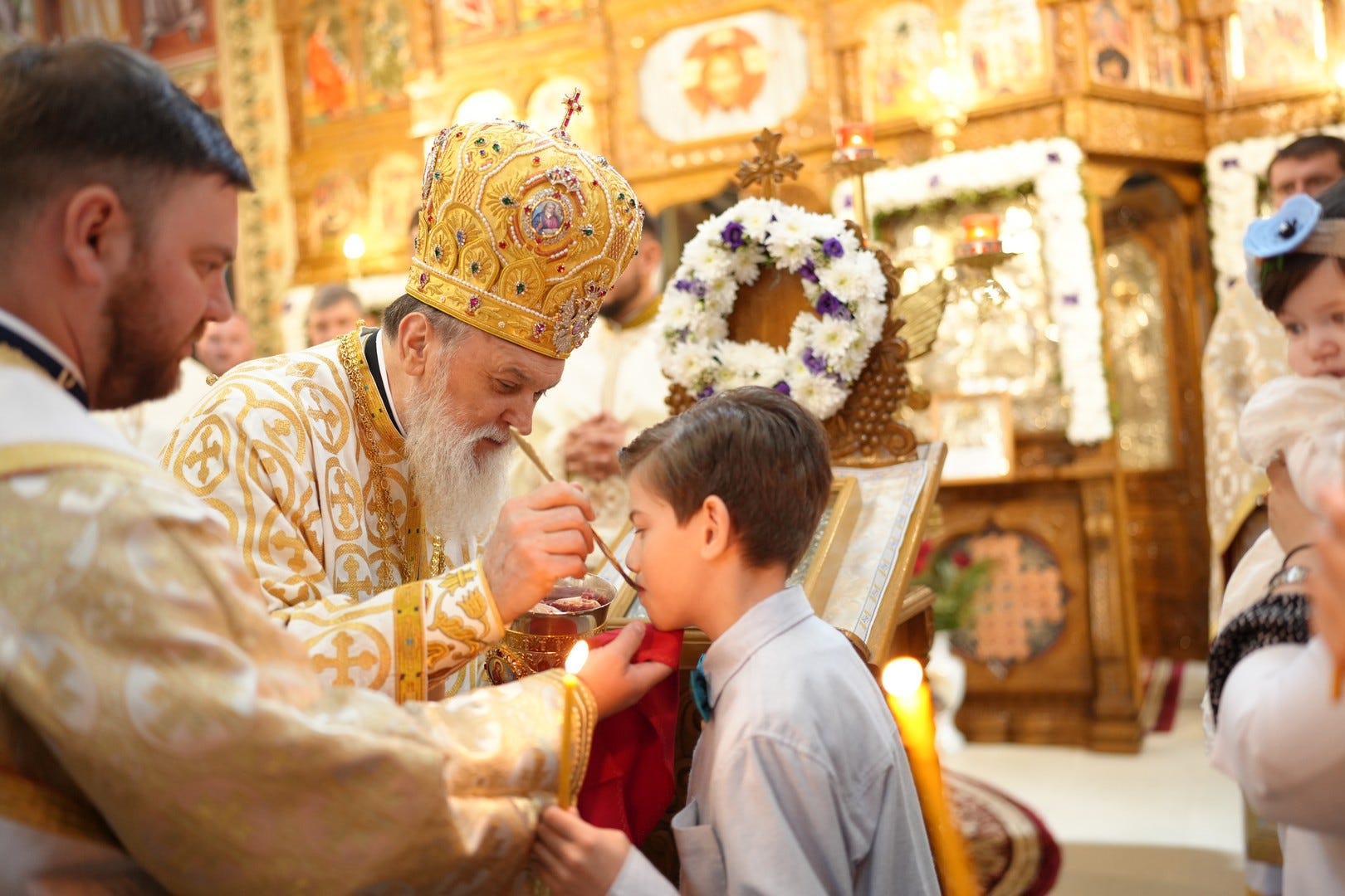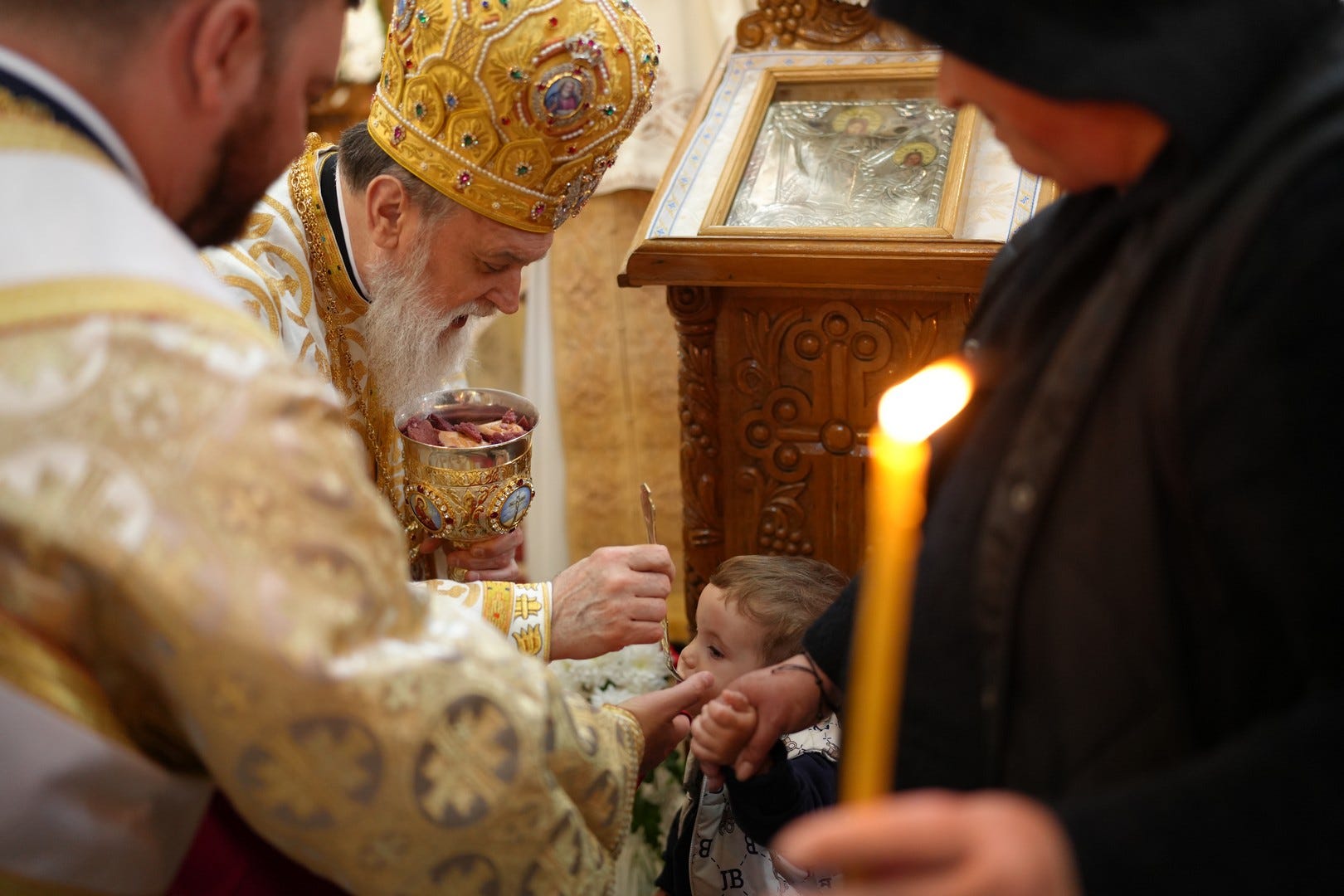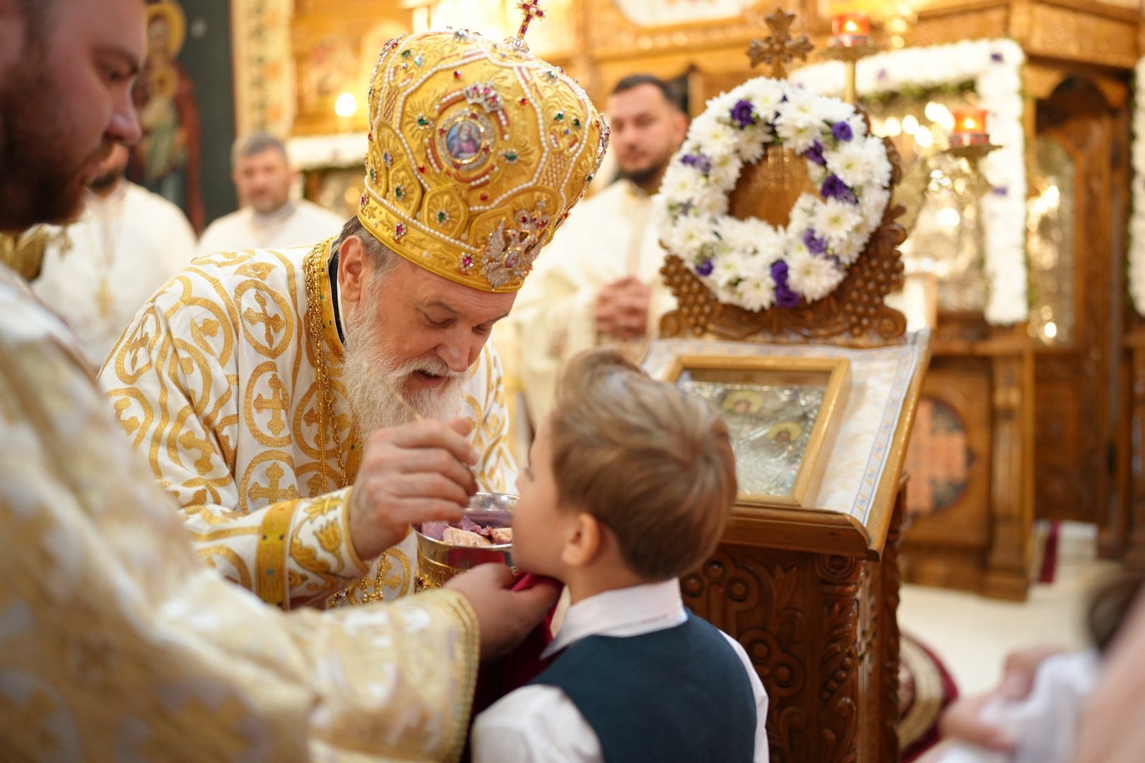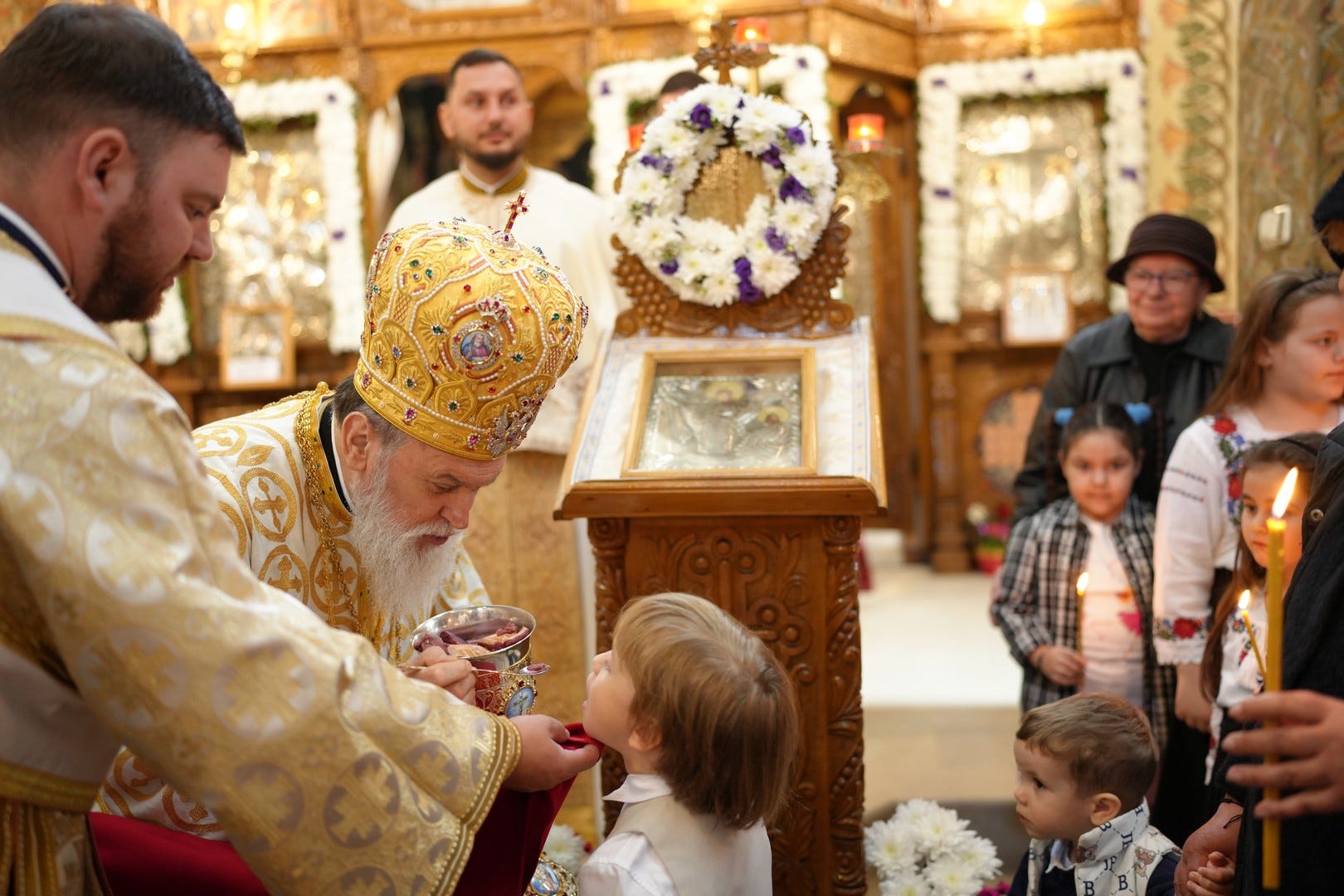 Preasfințitul Părinte a împărtășit toți copiii prezenți la Sfânta Liturghie.