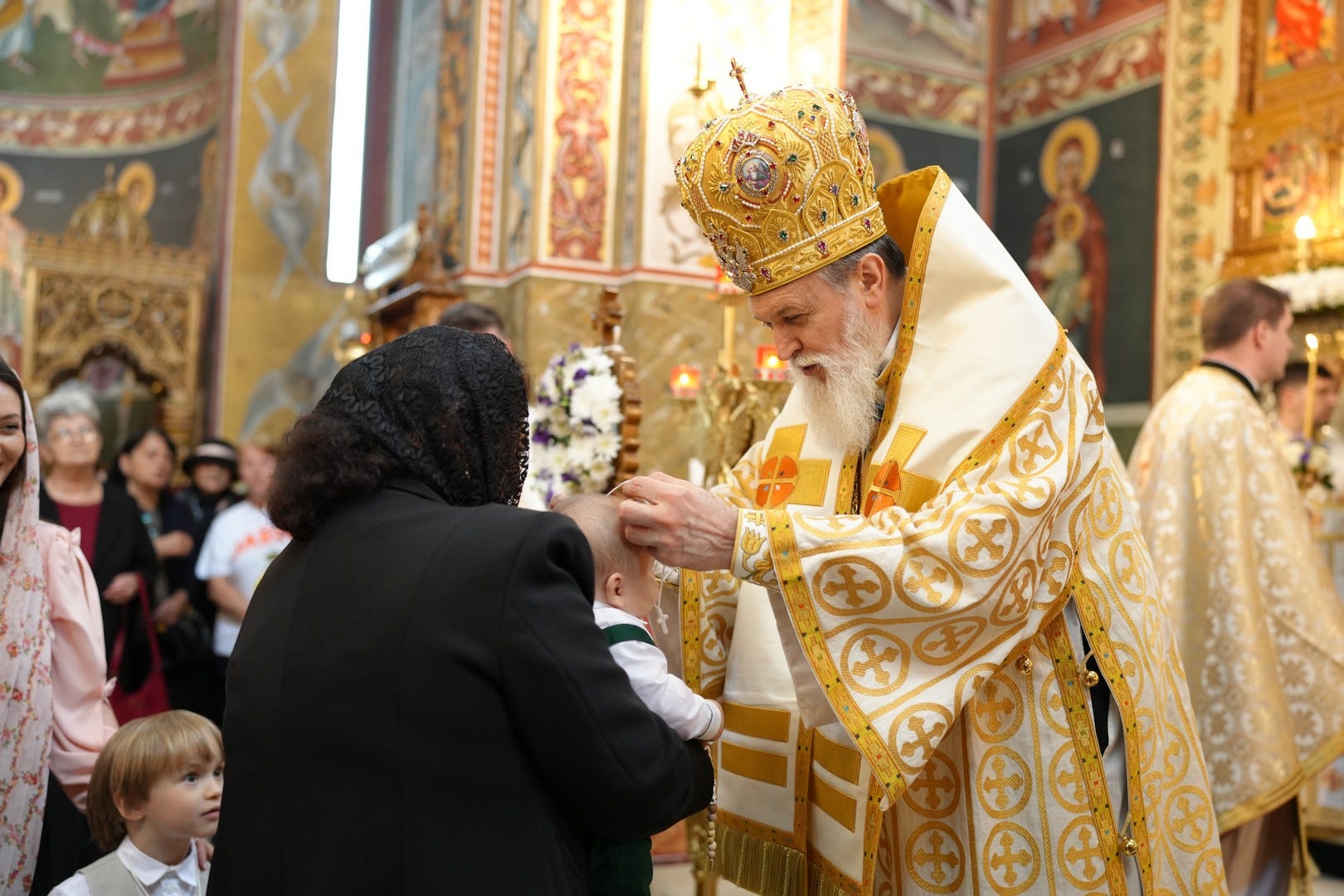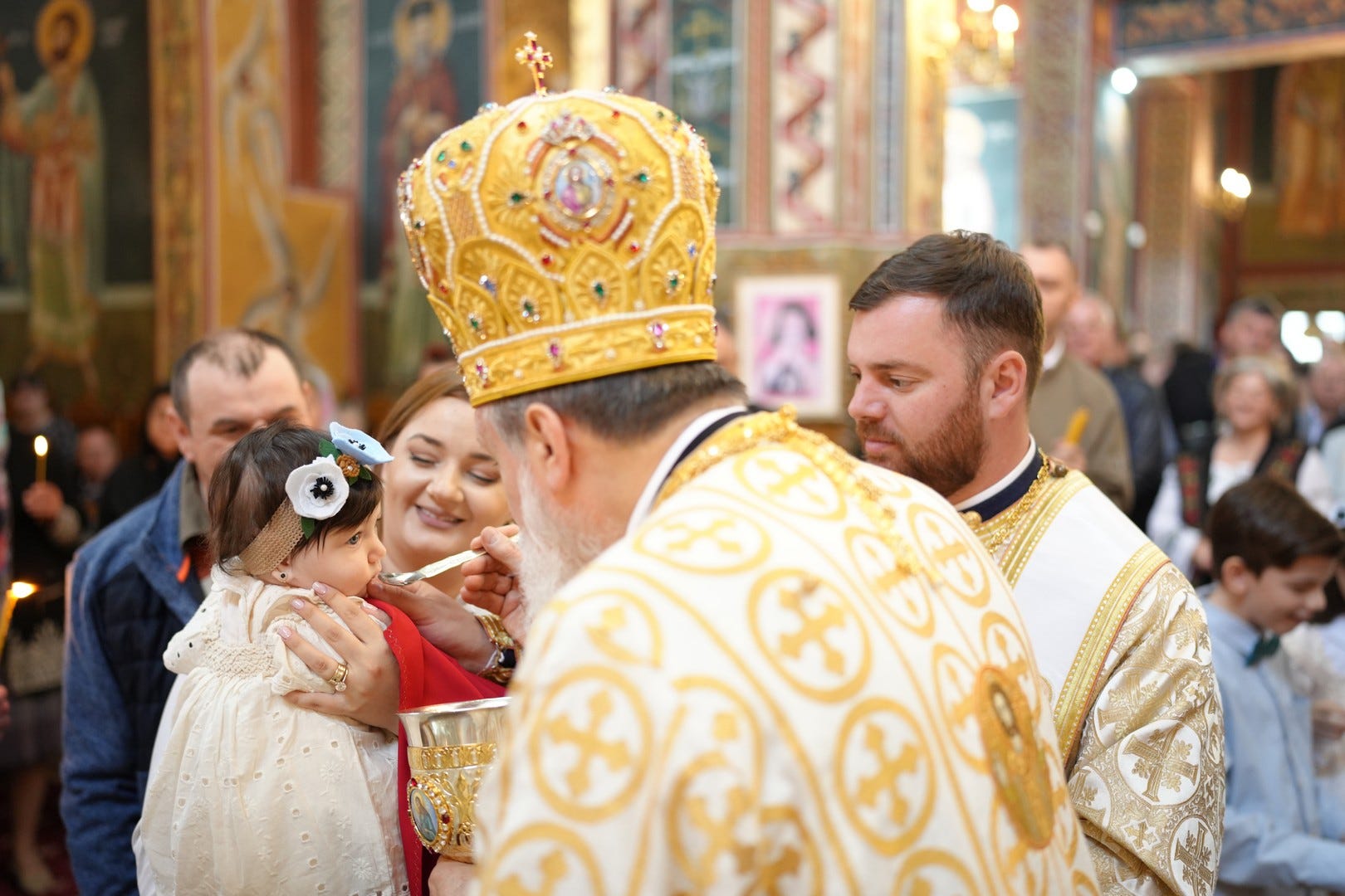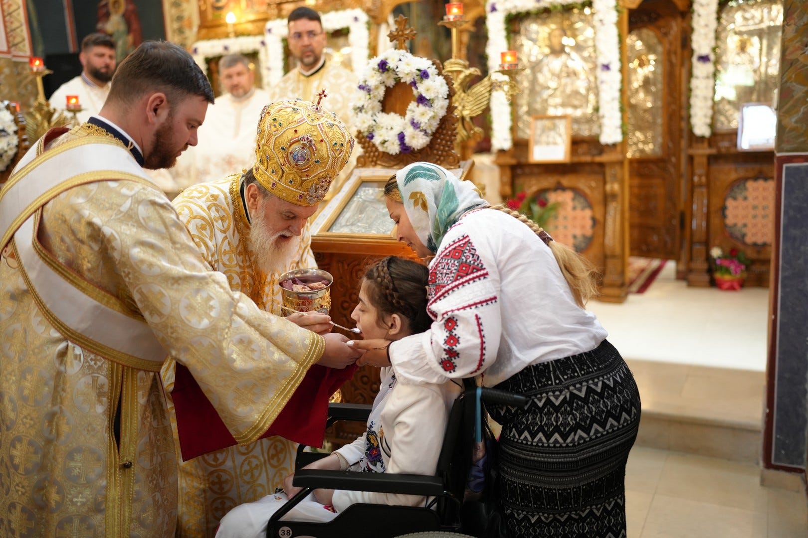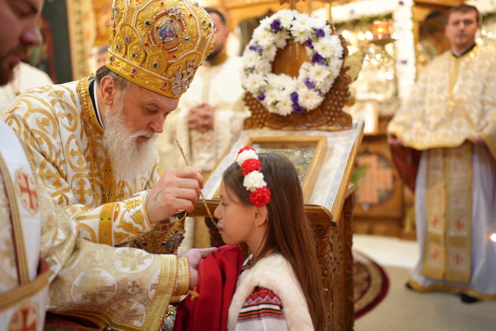 Preasfințitul Părinte a împărtășit toți copiii prezenți la Sfânta Liturghie.