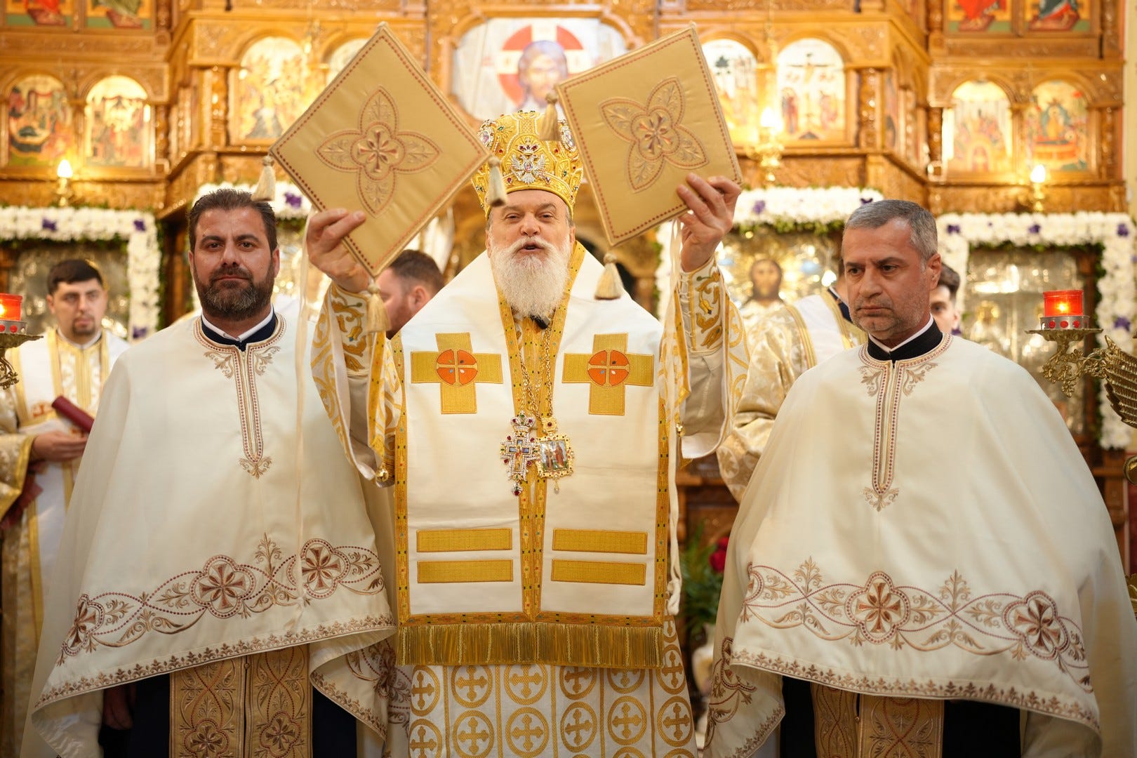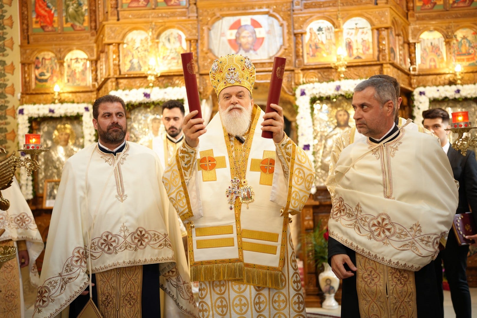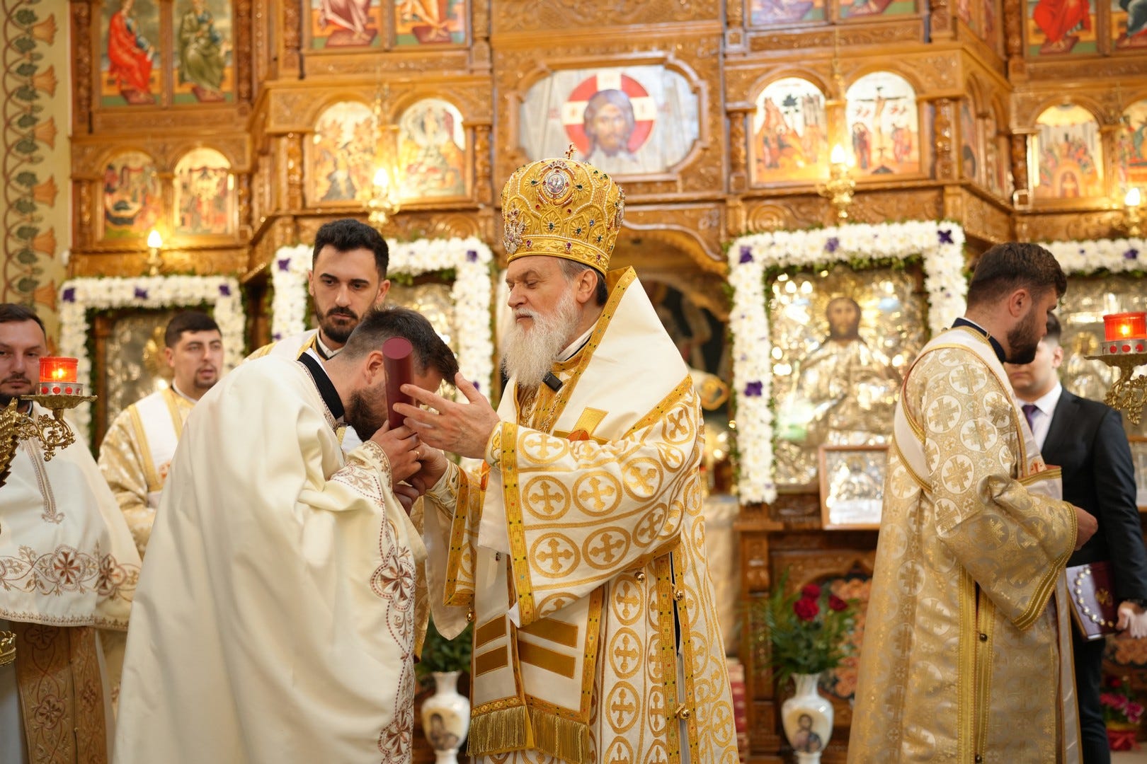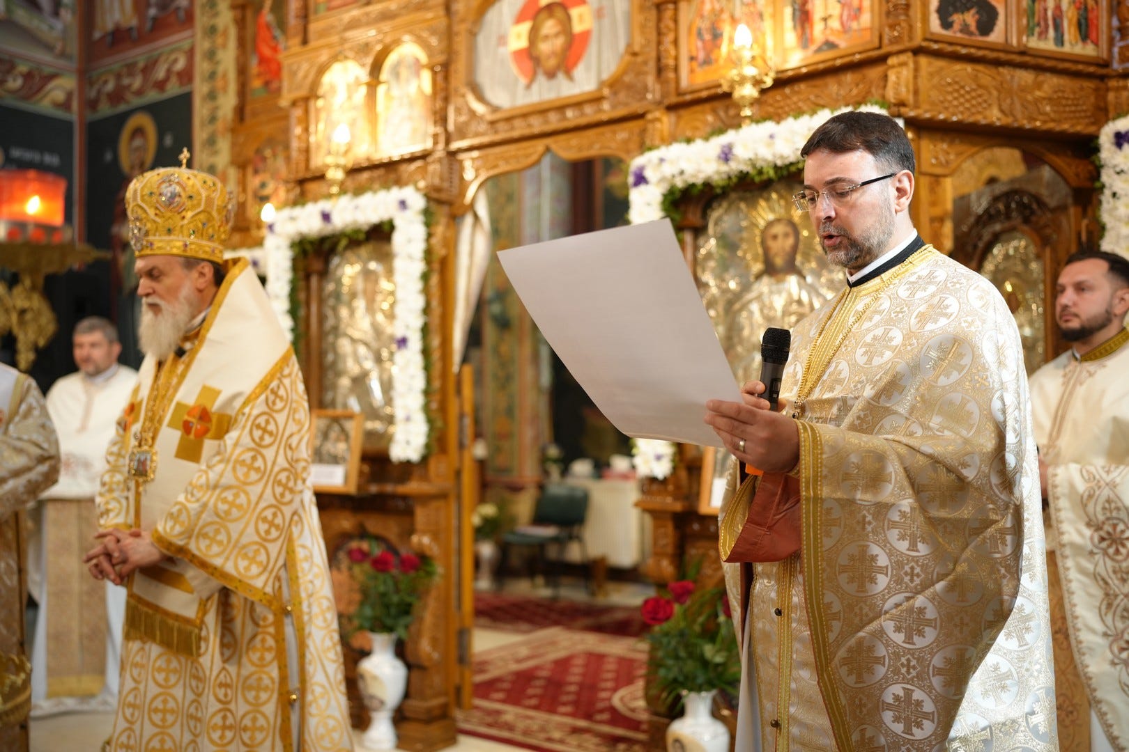 Sub protia Preasfinției Sale au slujit preacucernicii părinți consilieri Florin Ionescu, Marius Gabriel Purcărea, Nicușor Silviu Dascălu, preacucernicul părinte protopop Aurel Berbec, alături de un sobor de preoți, arhidiaconi și diaconi.