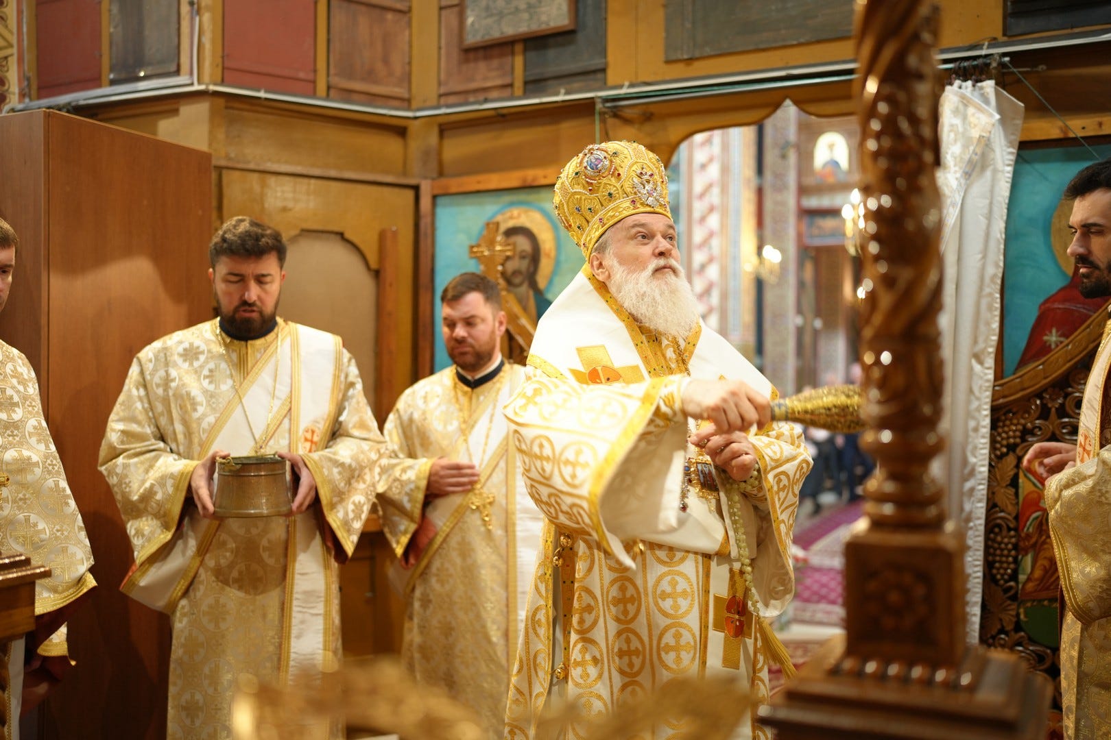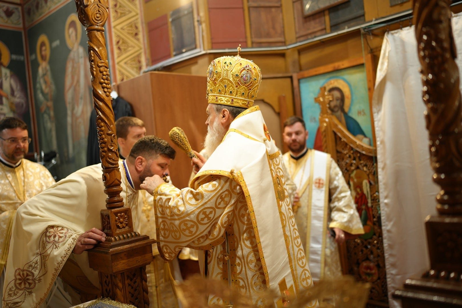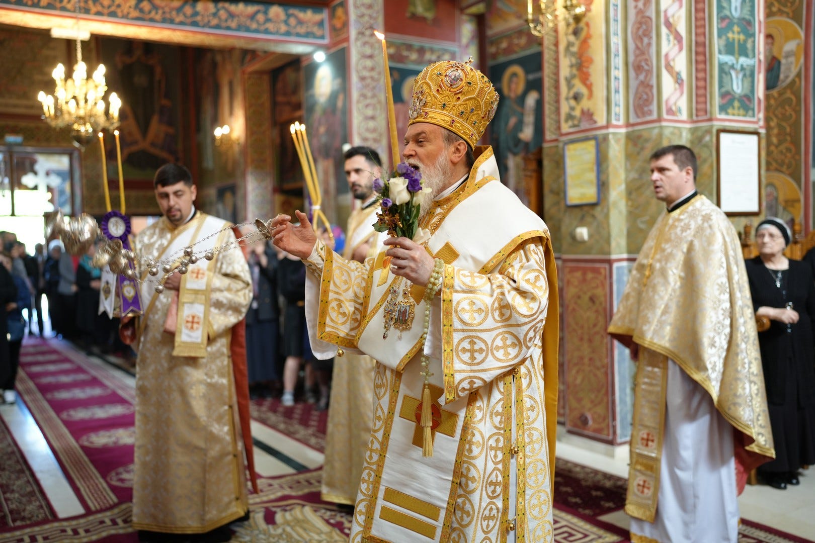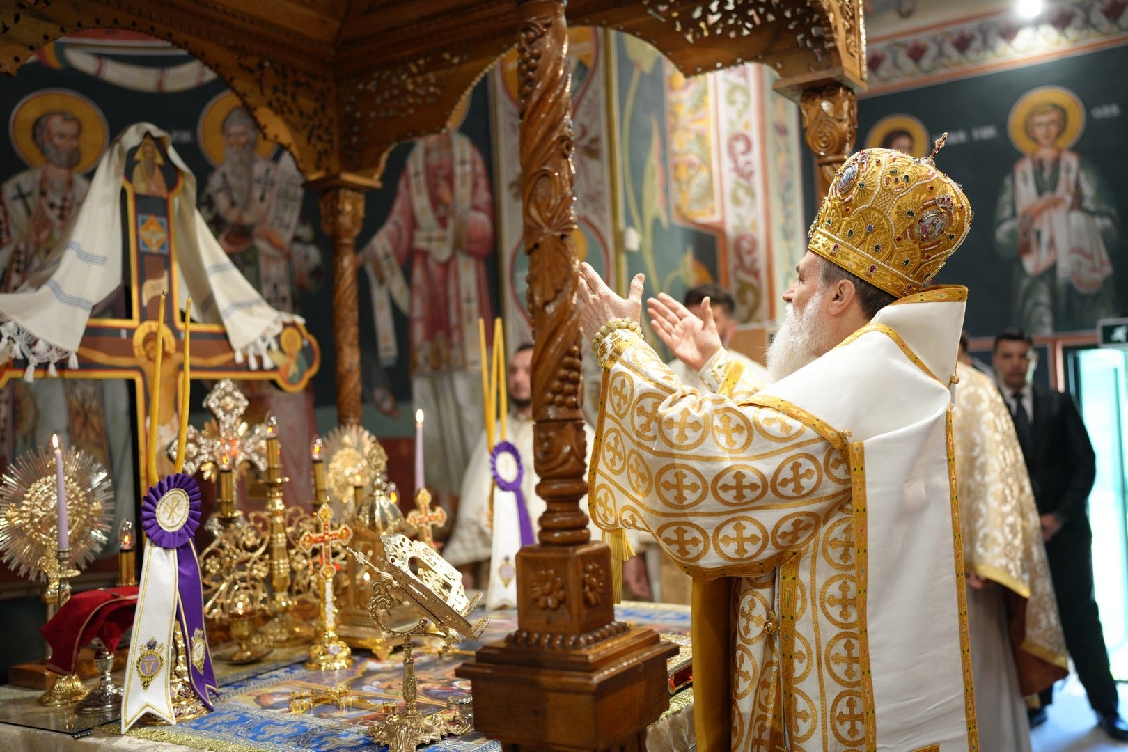 Sub protia Preasfinției Sale au slujit preacucernicii părinți consilieri Florin Ionescu, Marius Gabriel Purcărea, Nicușor Silviu Dascălu, preacucernicul părinte protopop Aurel Berbec, alături de un sobor de preoți, arhidiaconi și diaconi.