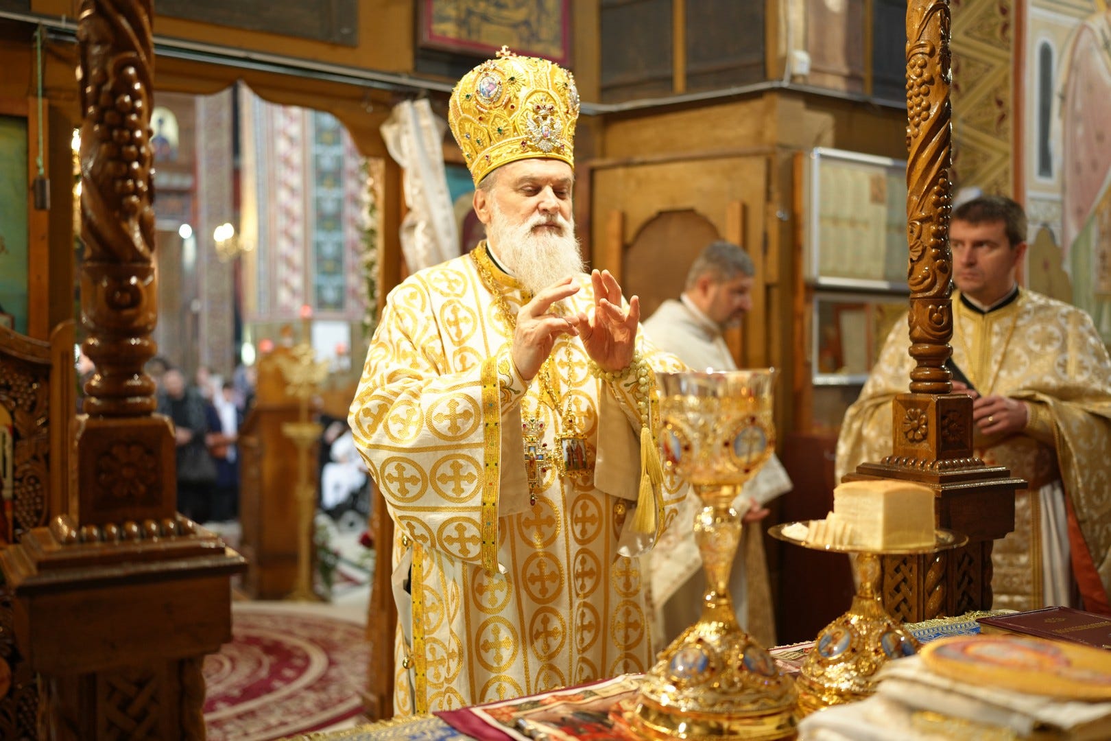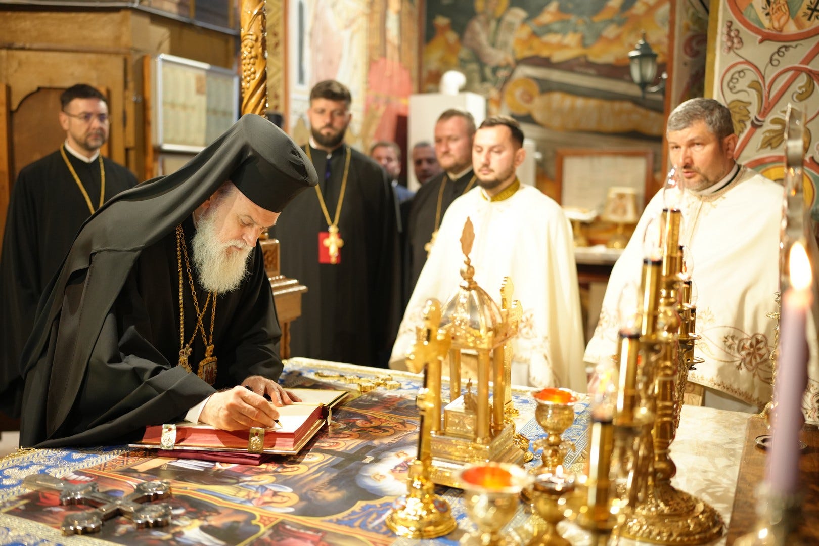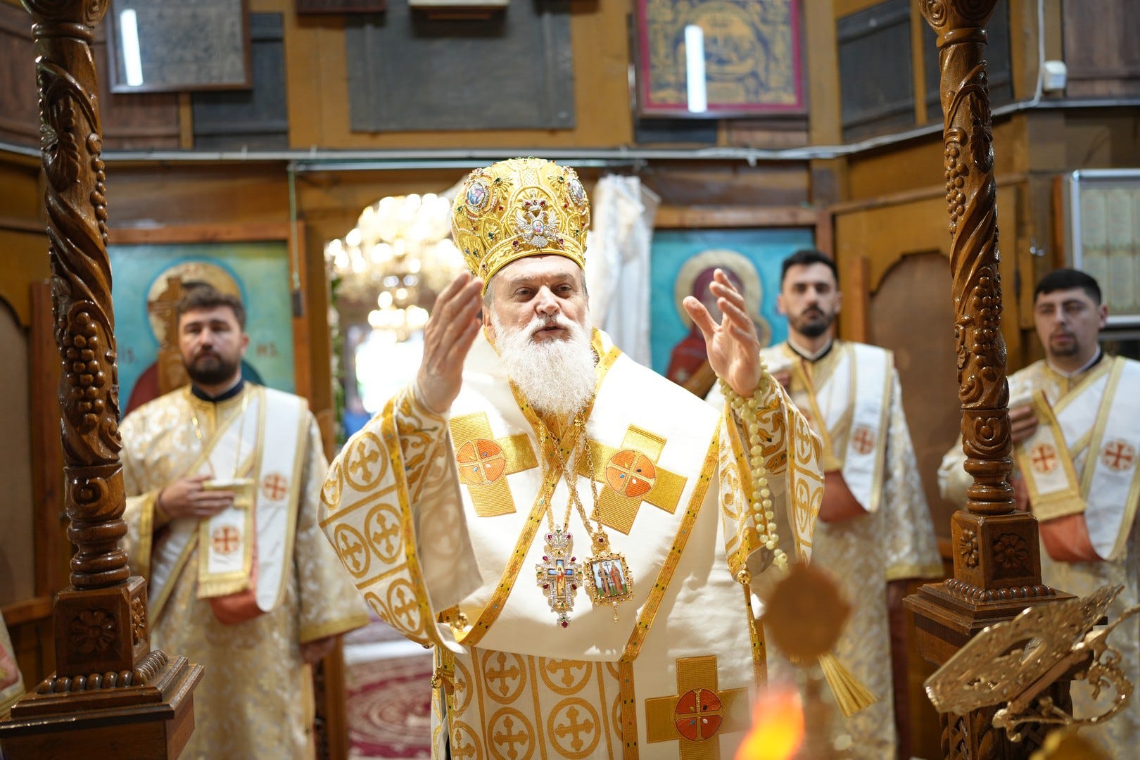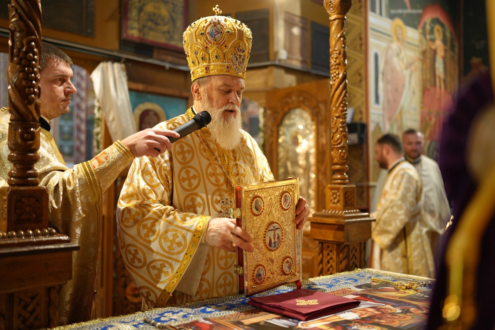 Sub protia Preasfinției Sale au slujit preacucernicii părinți consilieri Florin Ionescu, Marius Gabriel Purcărea, Nicușor Silviu Dascălu, preacucernicul părinte protopop Aurel Berbec, alături de un sobor de preoți, arhidiaconi și diaconi.