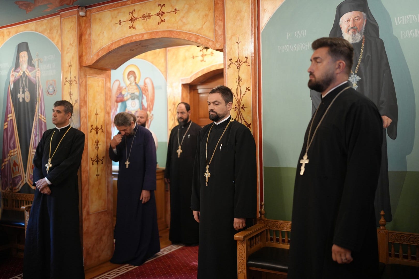 La acest moment de rugăciune, Preasfinția Sa a fost înconjurat de preacucernici părinți consilieri, care și-au unit rugăciunea în slujba de pomenire.