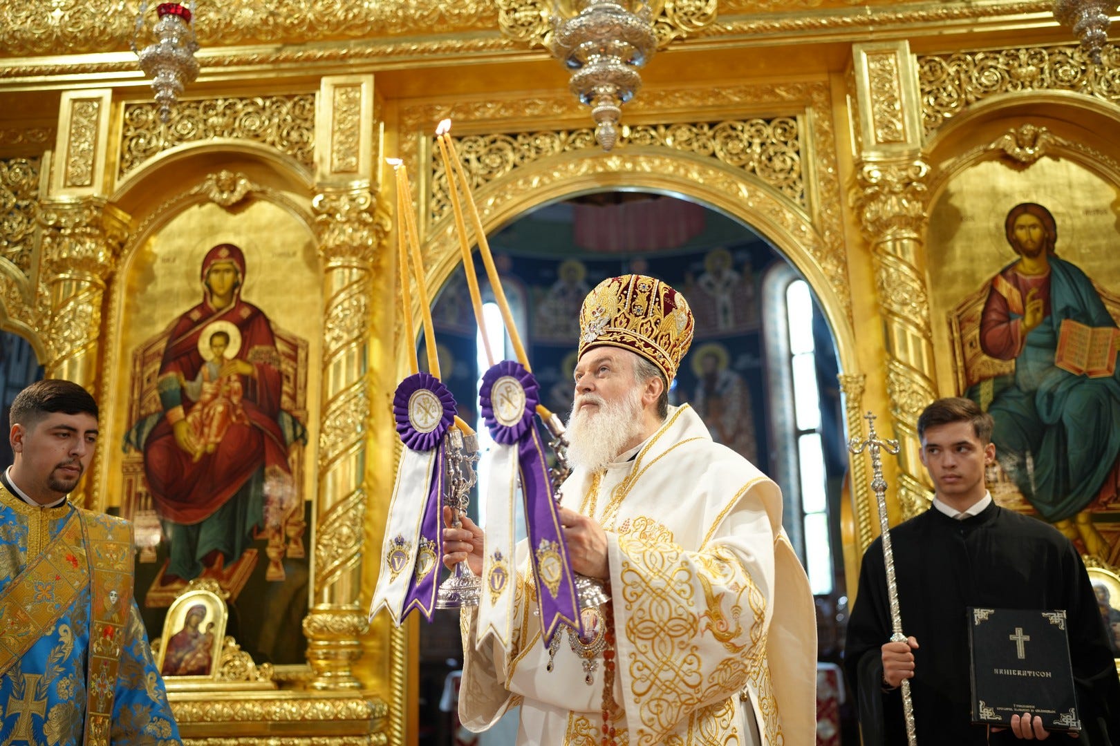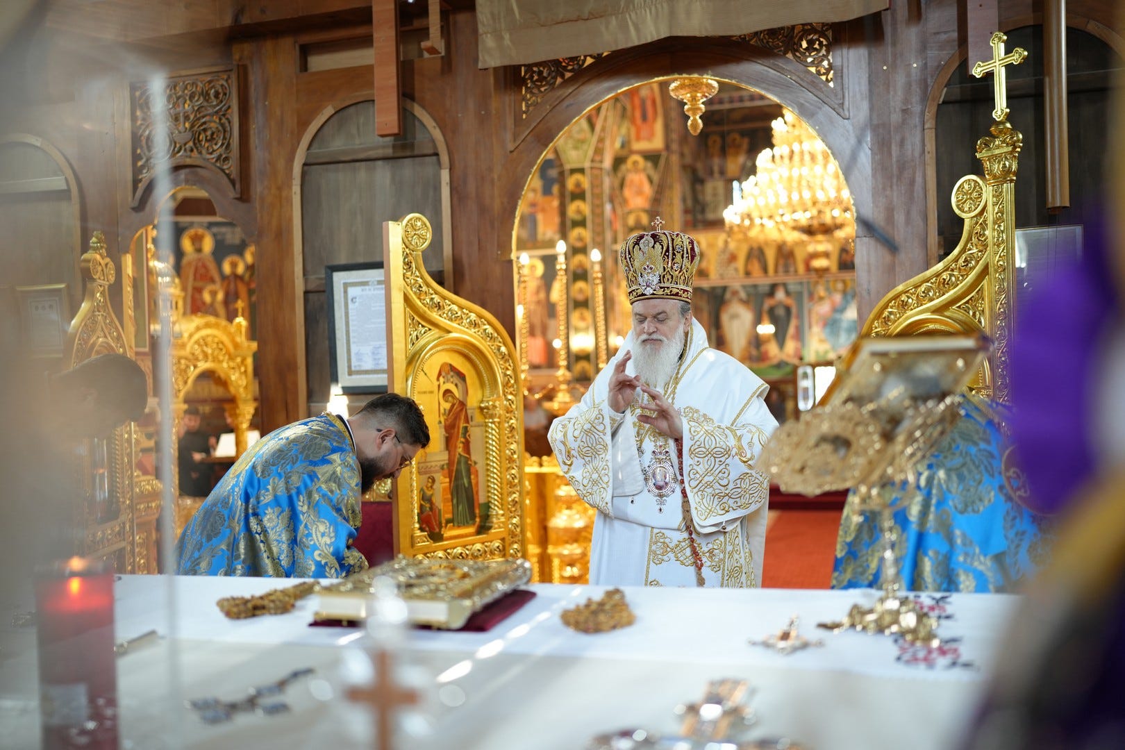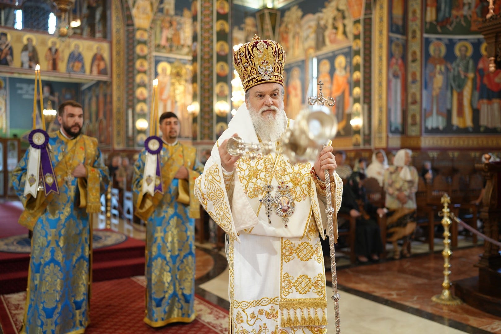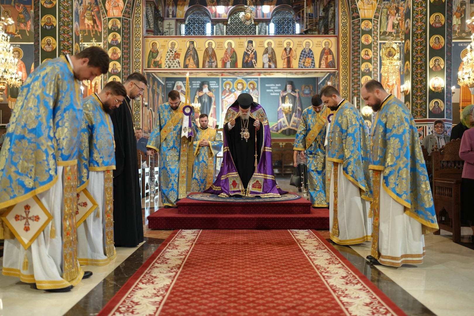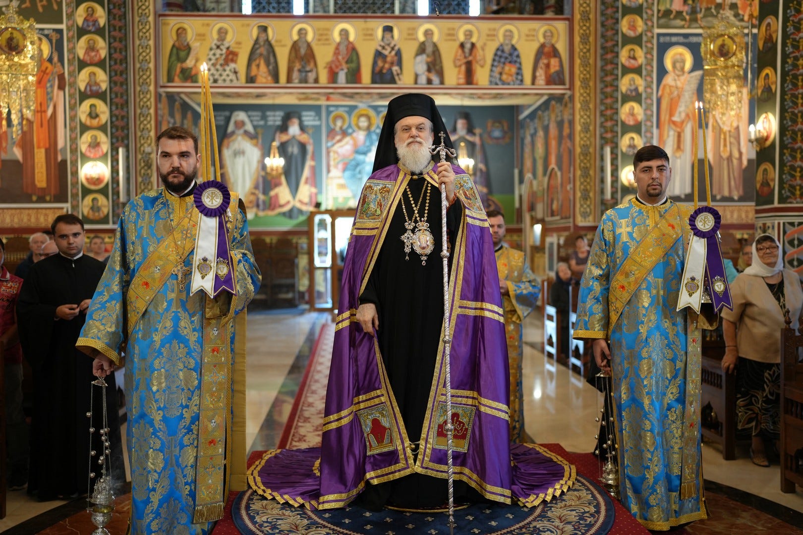 Sub protia Preasfinției Sale au slujit preacucernicii părinți consilieri Florin Ionescu și Andrei Cornel Petre, preoții slujitori ai Catedralei Episcopale, arhidiaconi și diaconi.