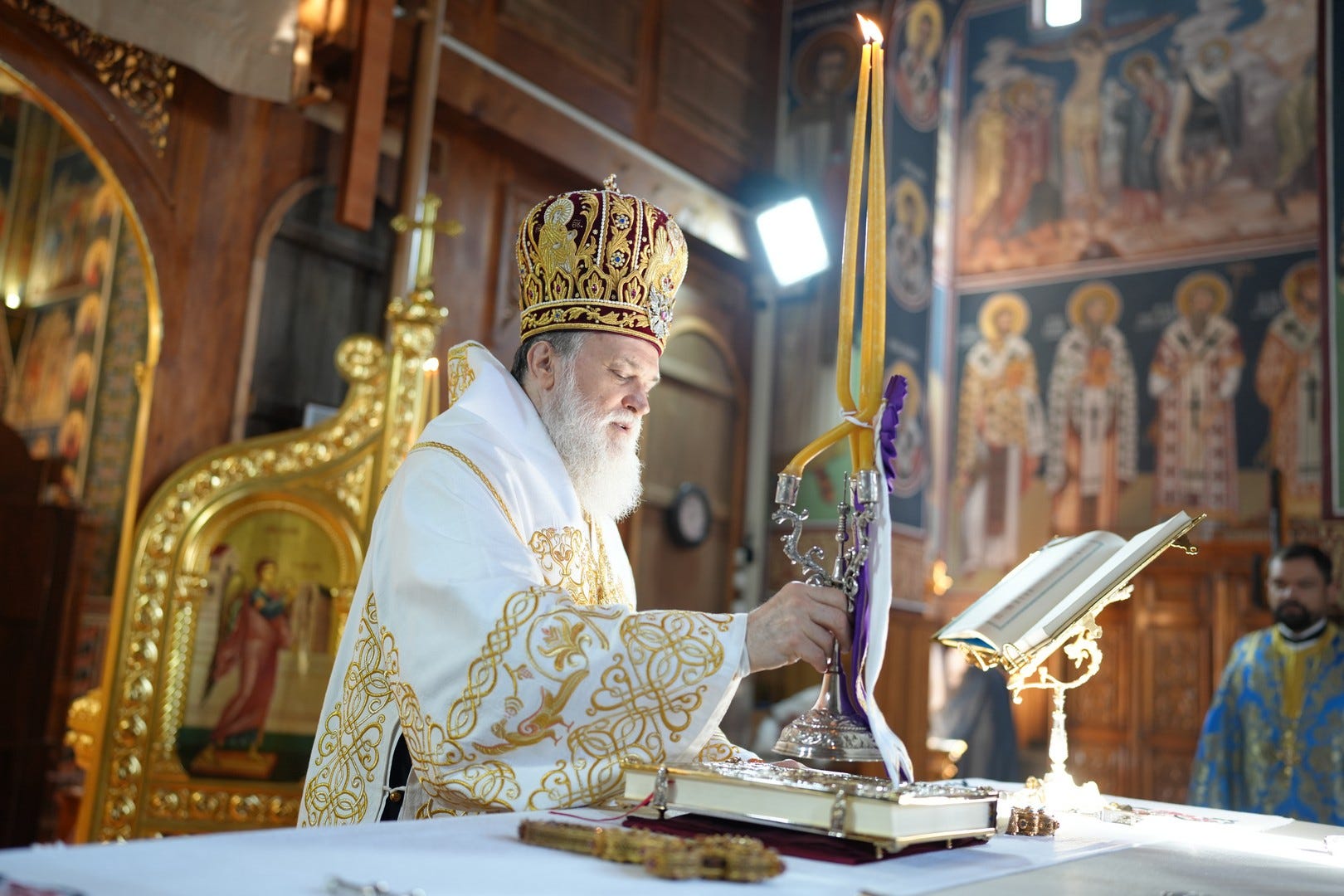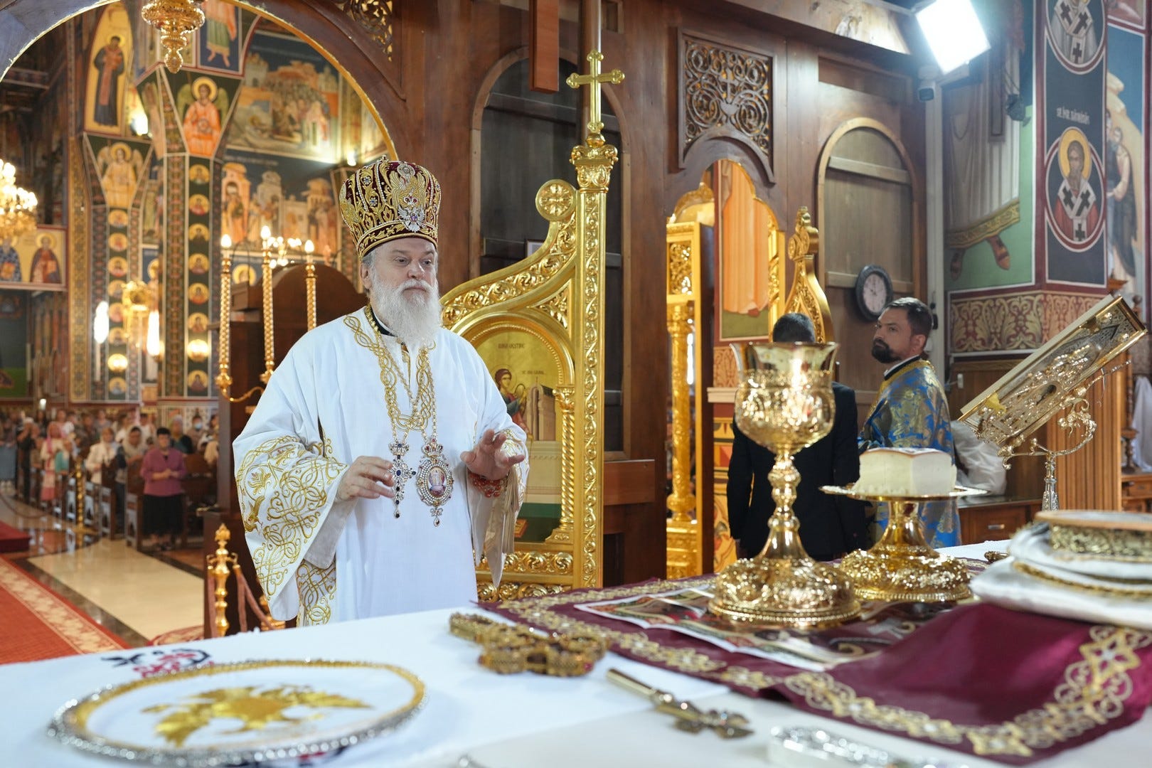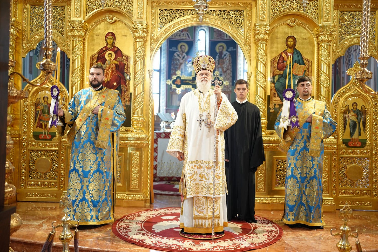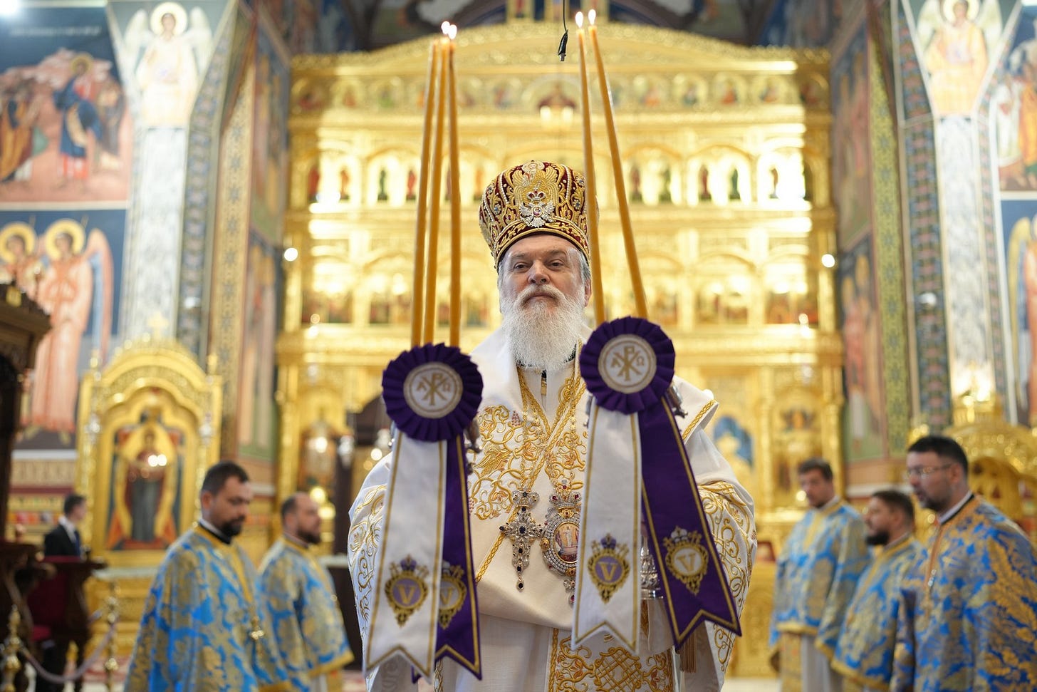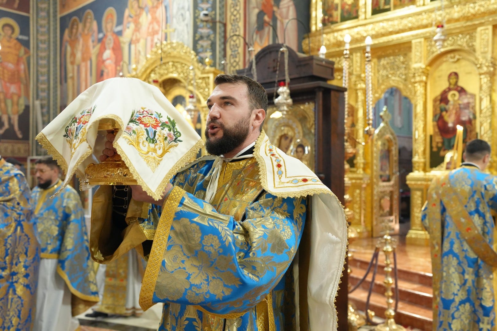 Sub protia Preasfinției Sale au slujit preacucernicii părinți consilieri Florin Ionescu și Andrei Cornel Petre, preoții slujitori ai Catedralei Episcopale, arhidiaconi și diaconi.