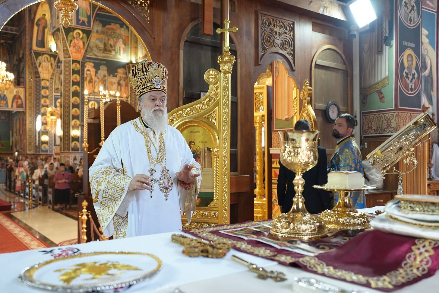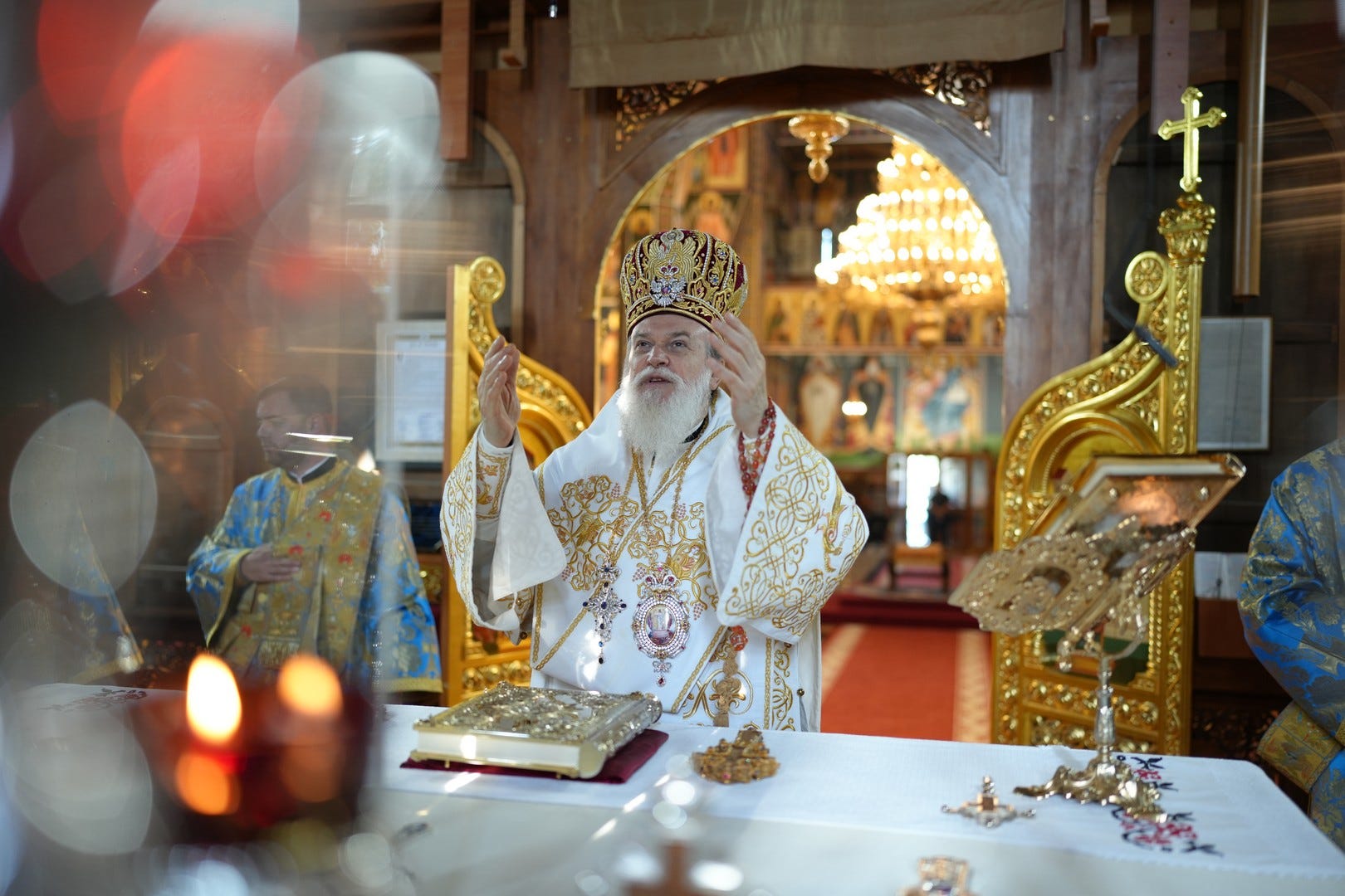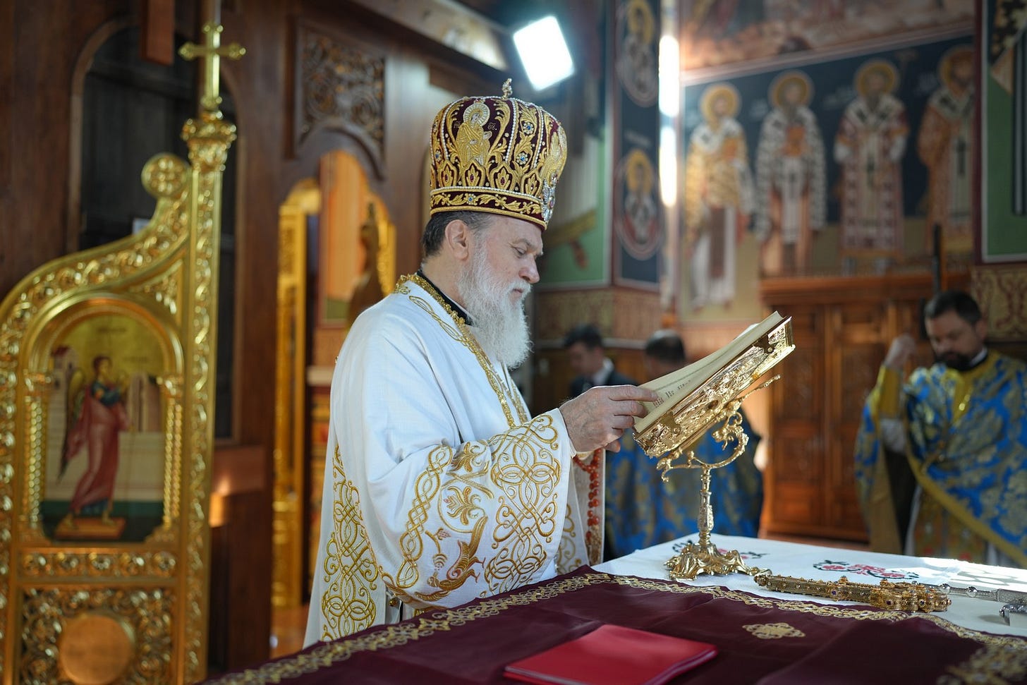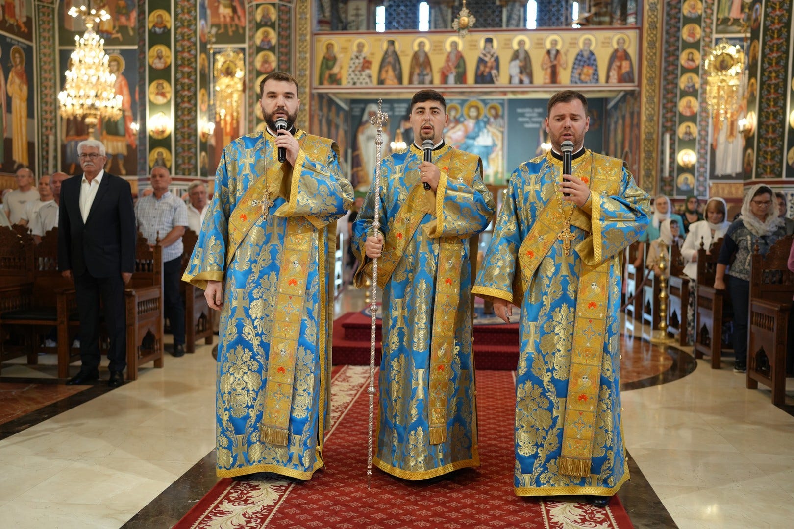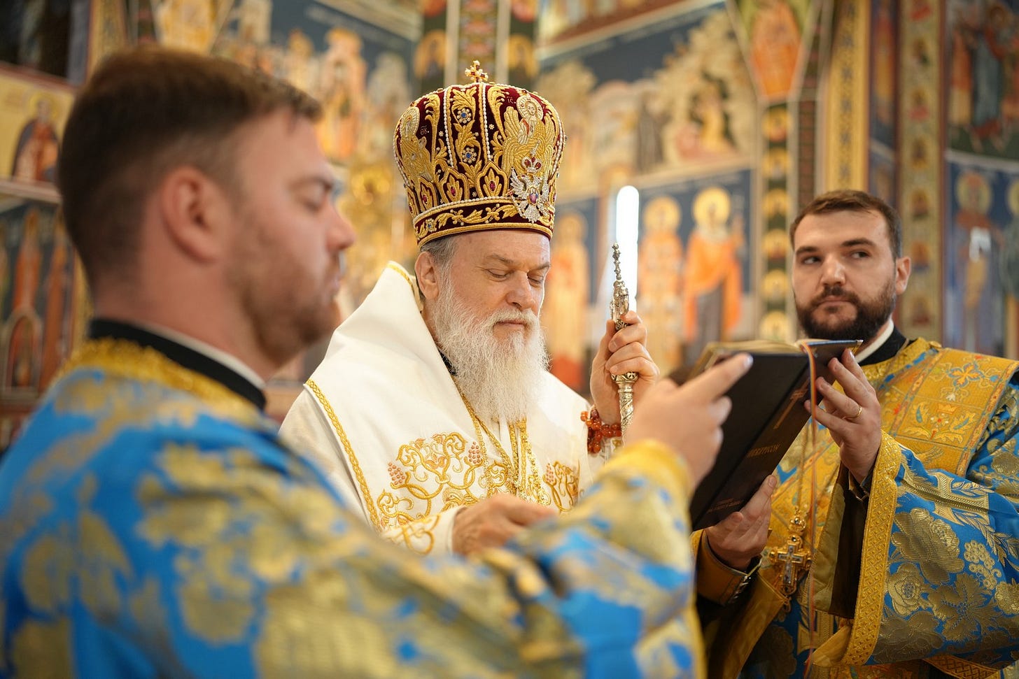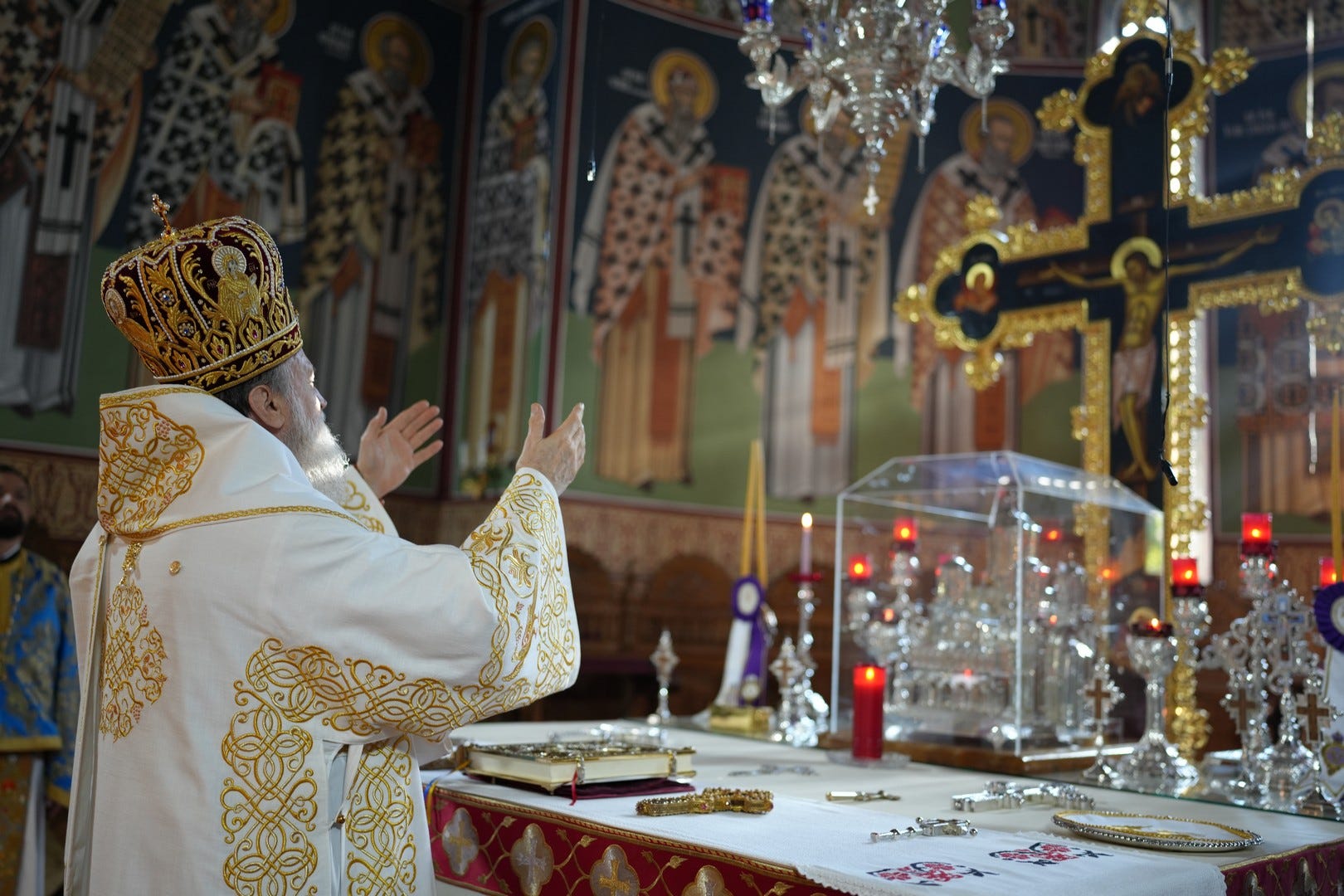 Sub protia Preasfinției Sale au slujit preacucernicii părinți consilieri Florin Ionescu și Andrei Cornel Petre, preoții slujitori ai Catedralei Episcopale, arhidiaconi și diaconi.