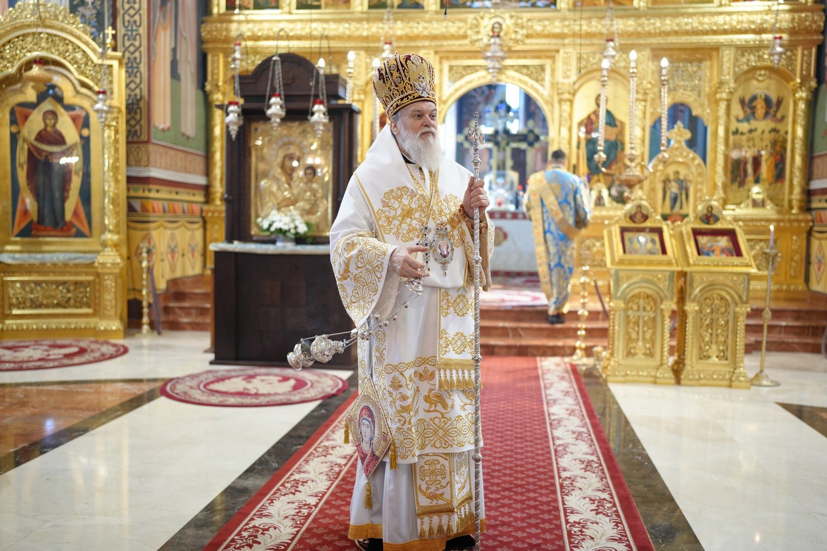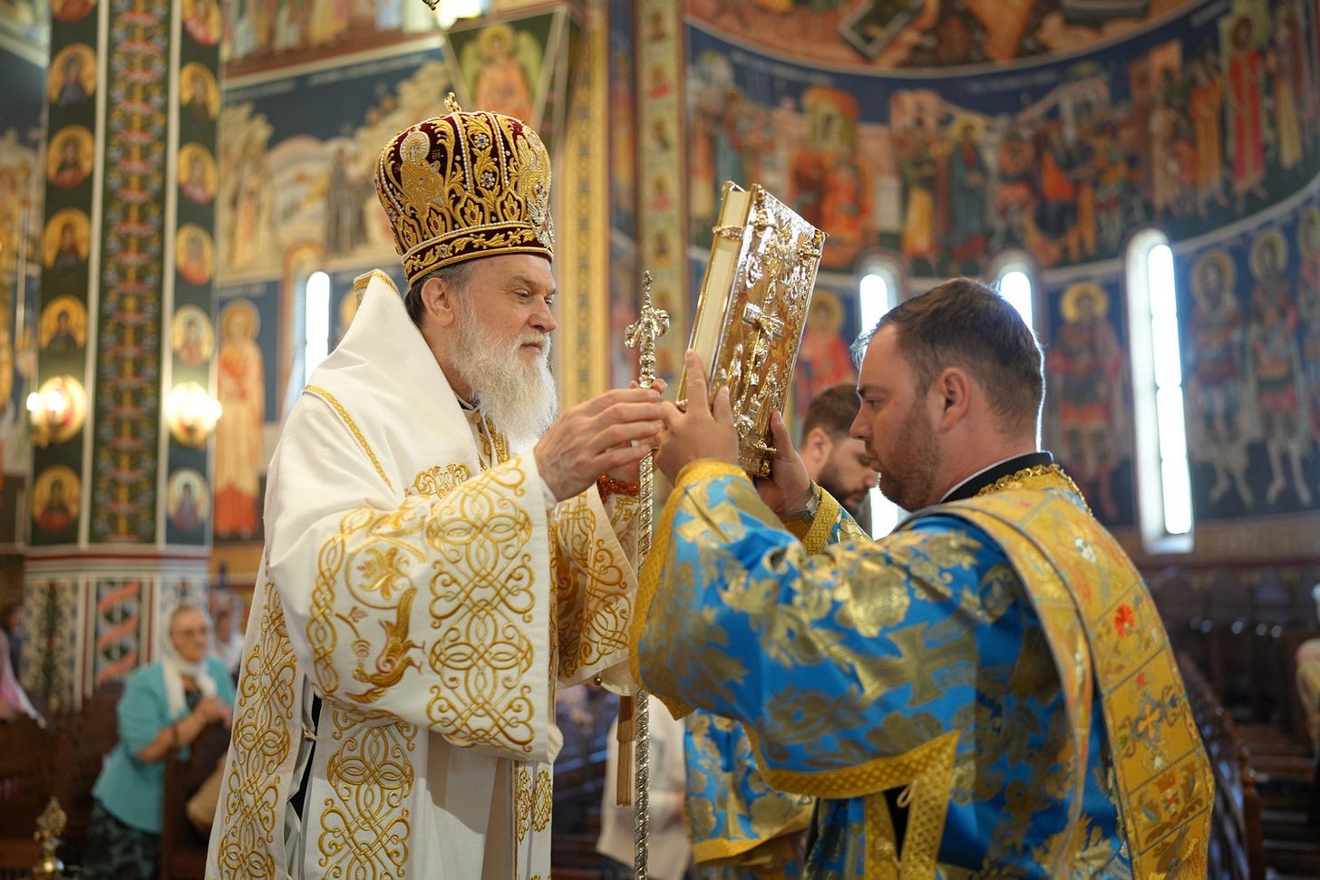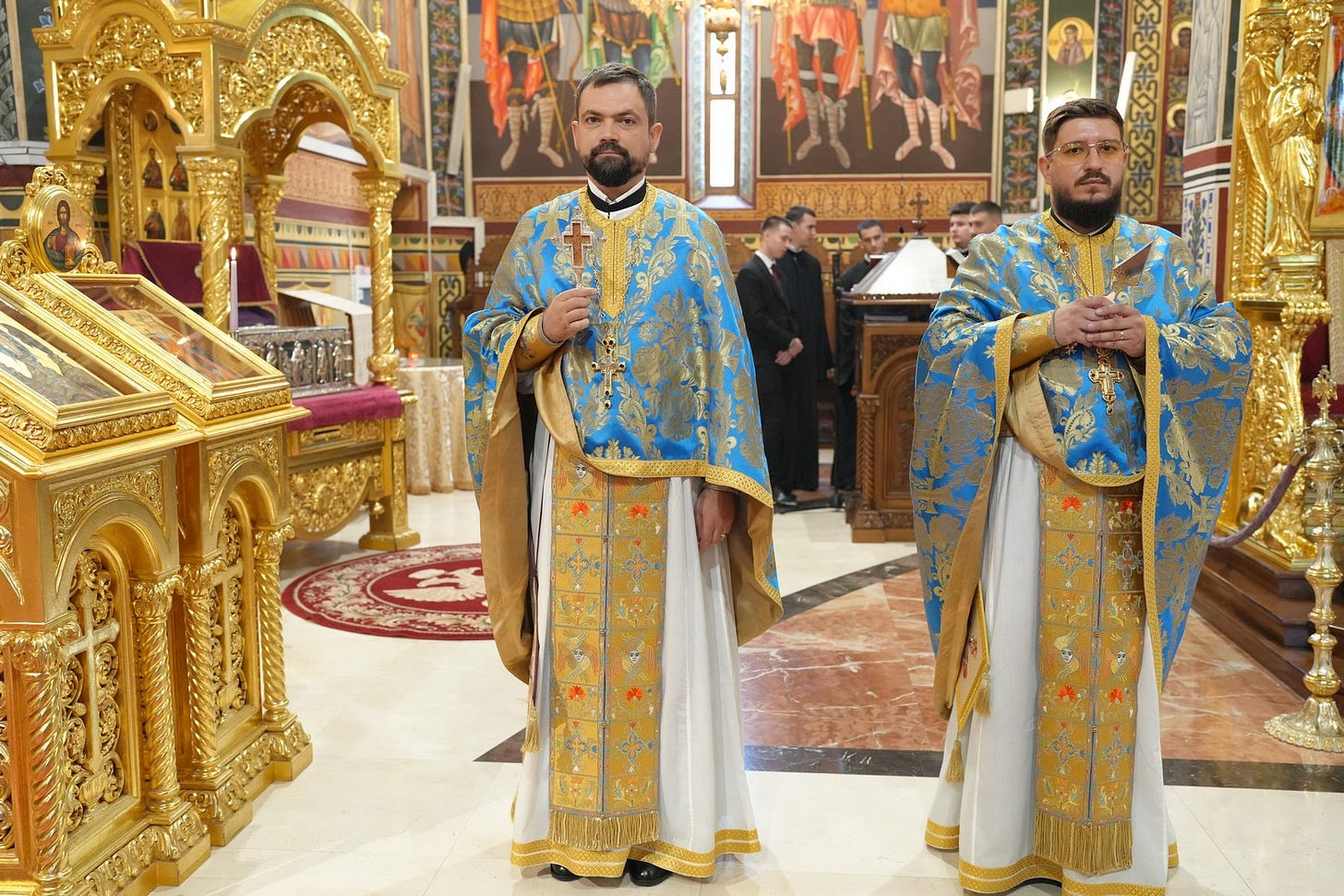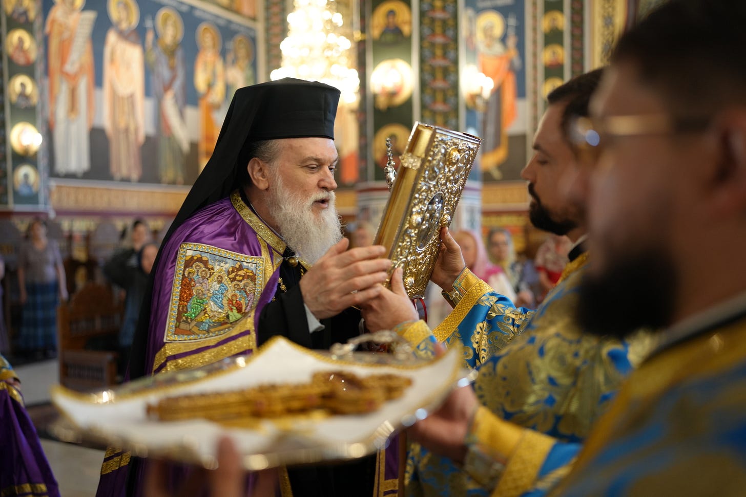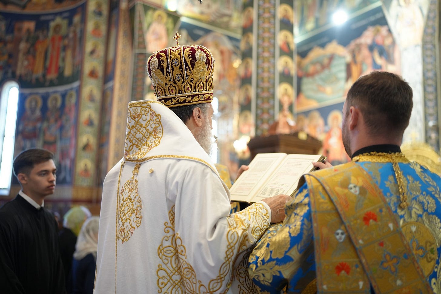 Sub protia Preasfinției Sale au slujit preacucernicii părinți consilieri Florin Ionescu și Andrei Cornel Petre, preoții slujitori ai Catedralei Episcopale, arhidiaconi și diaconi.