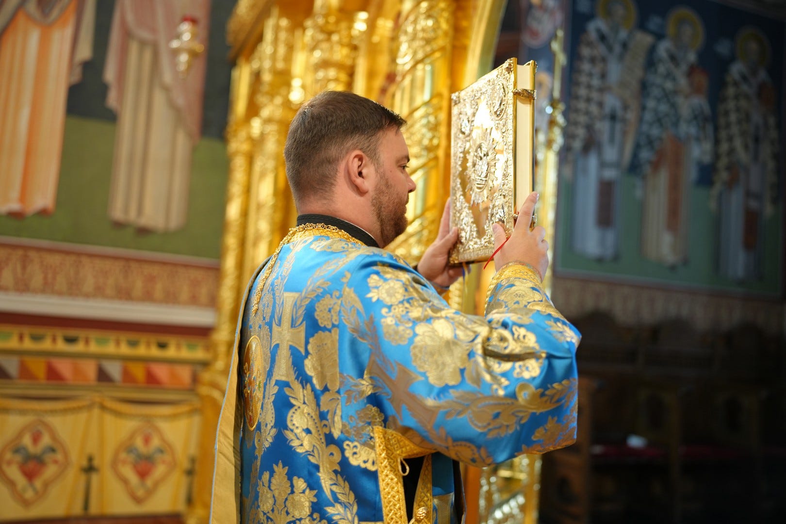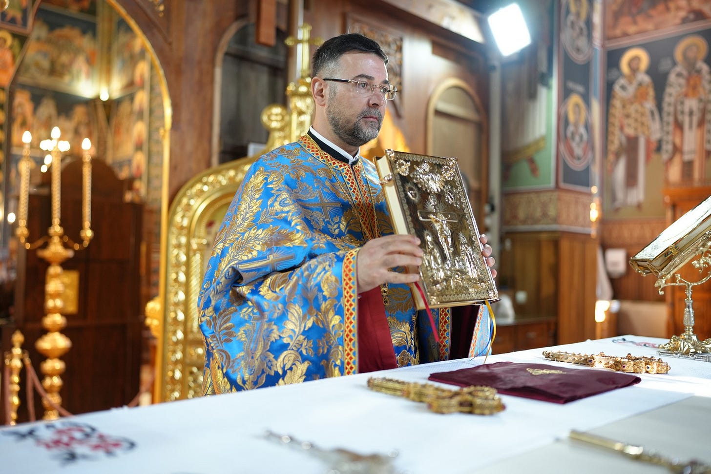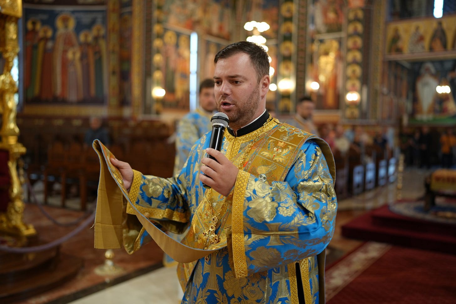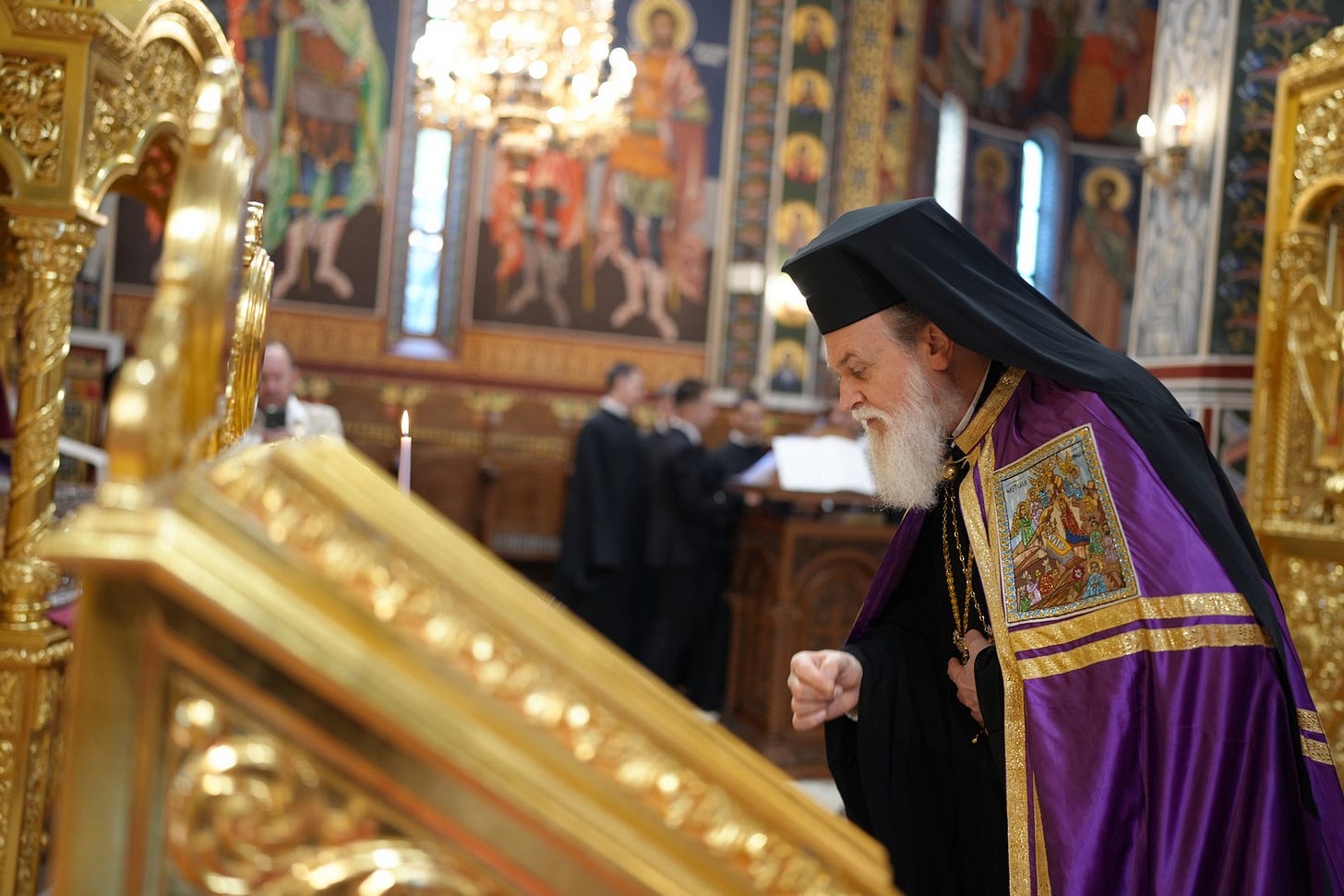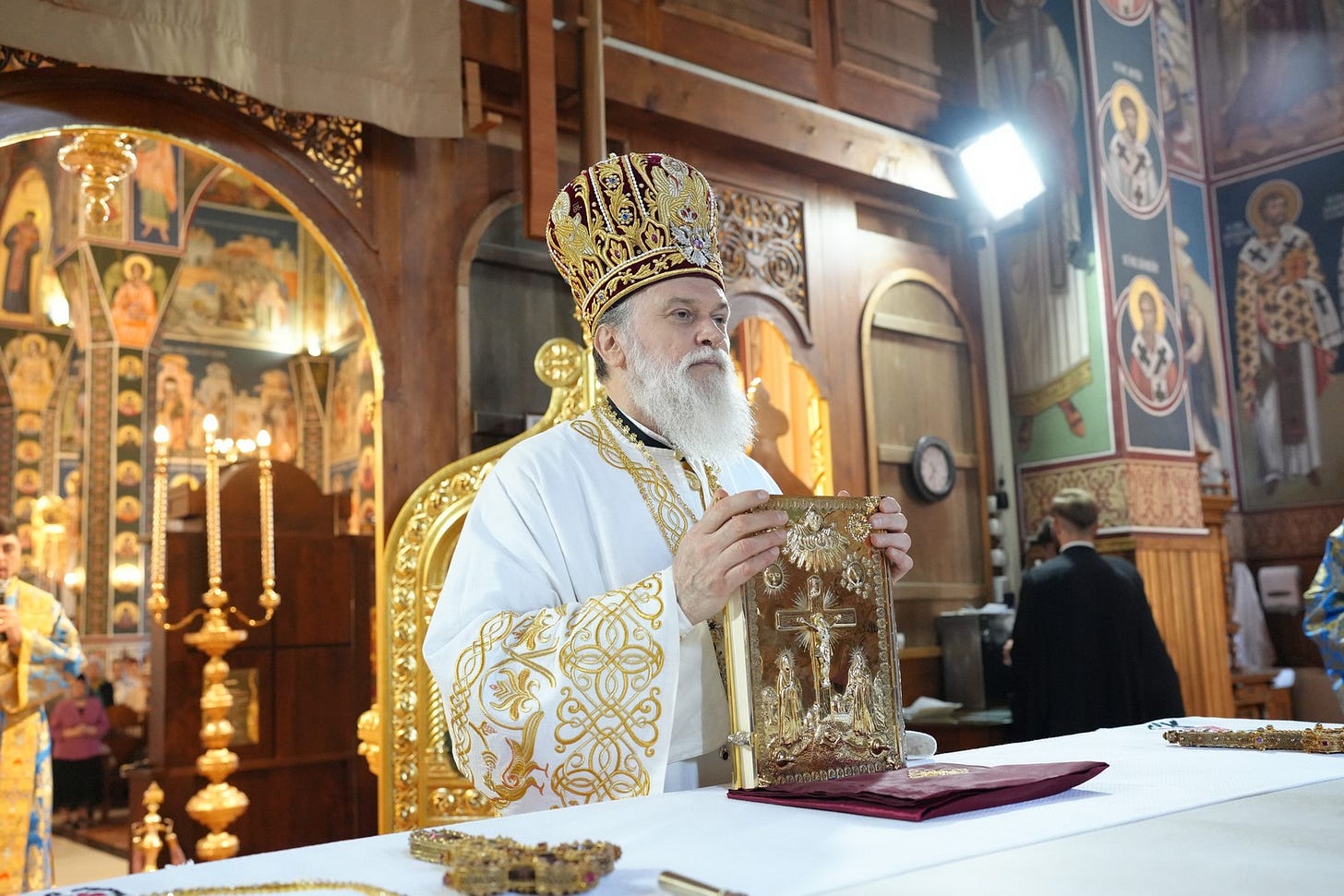 Sub protia Preasfinției Sale au slujit preacucernicii părinți consilieri Florin Ionescu și Andrei Cornel Petre, preoții slujitori ai Catedralei Episcopale, arhidiaconi și diaconi.