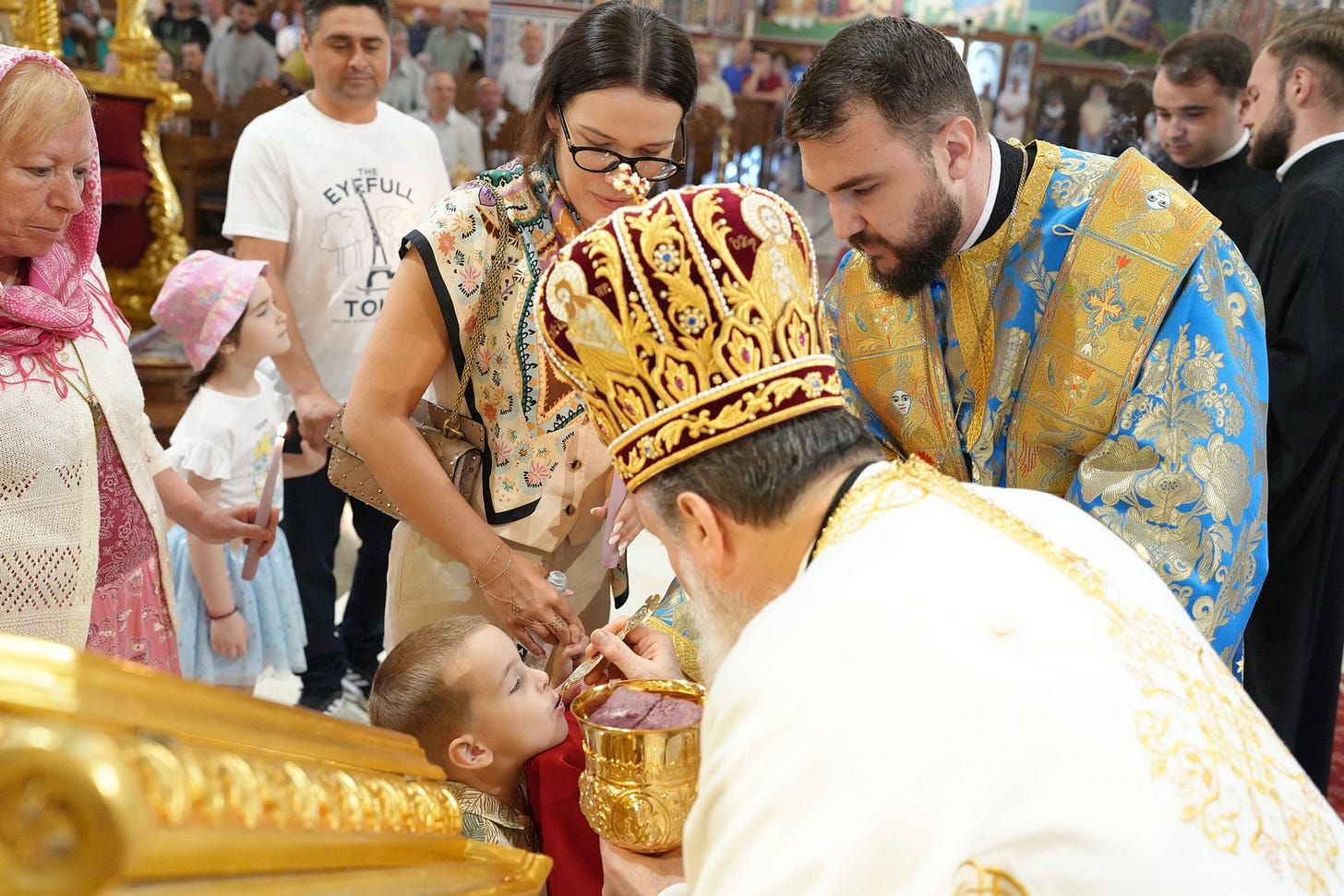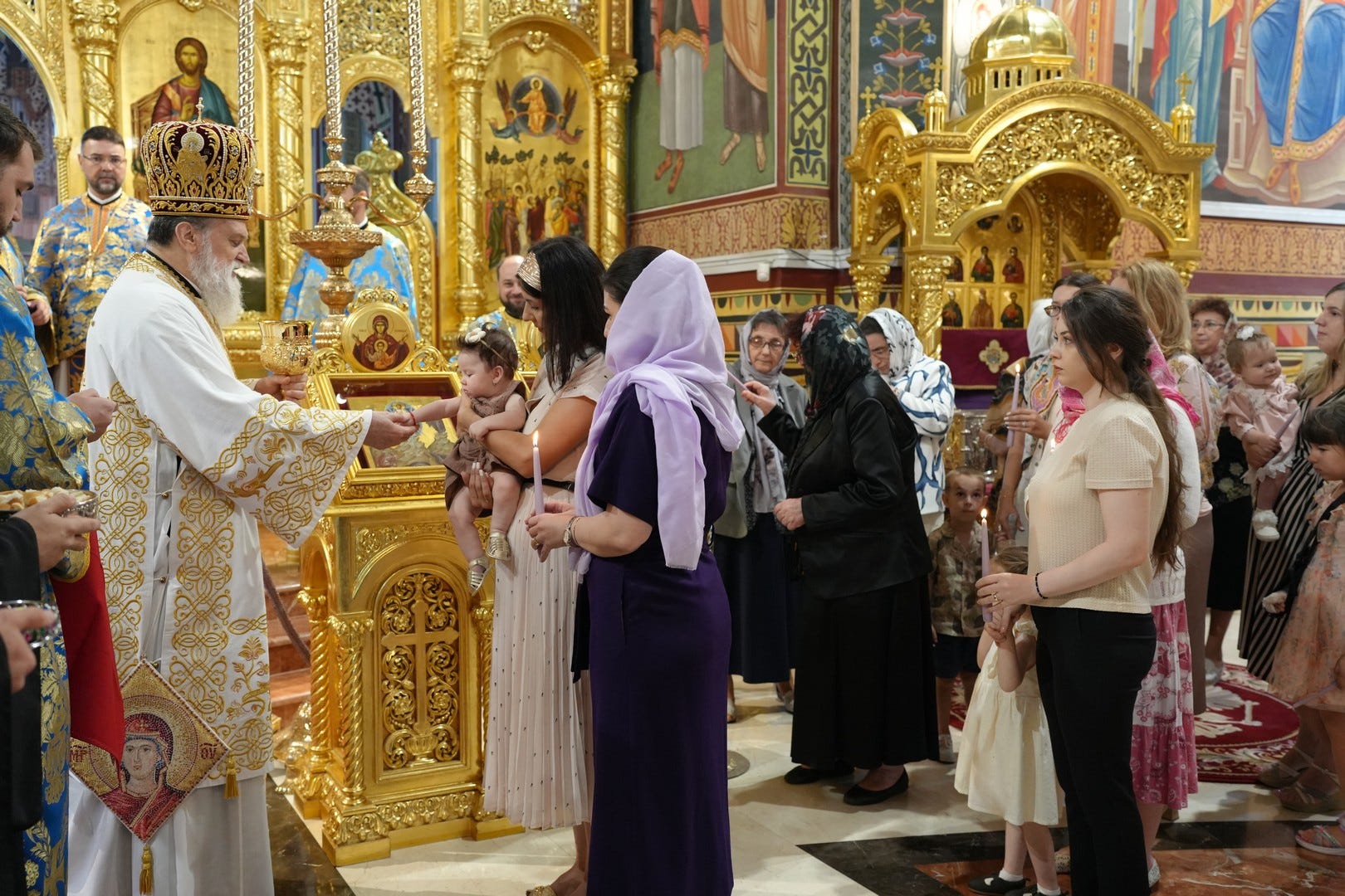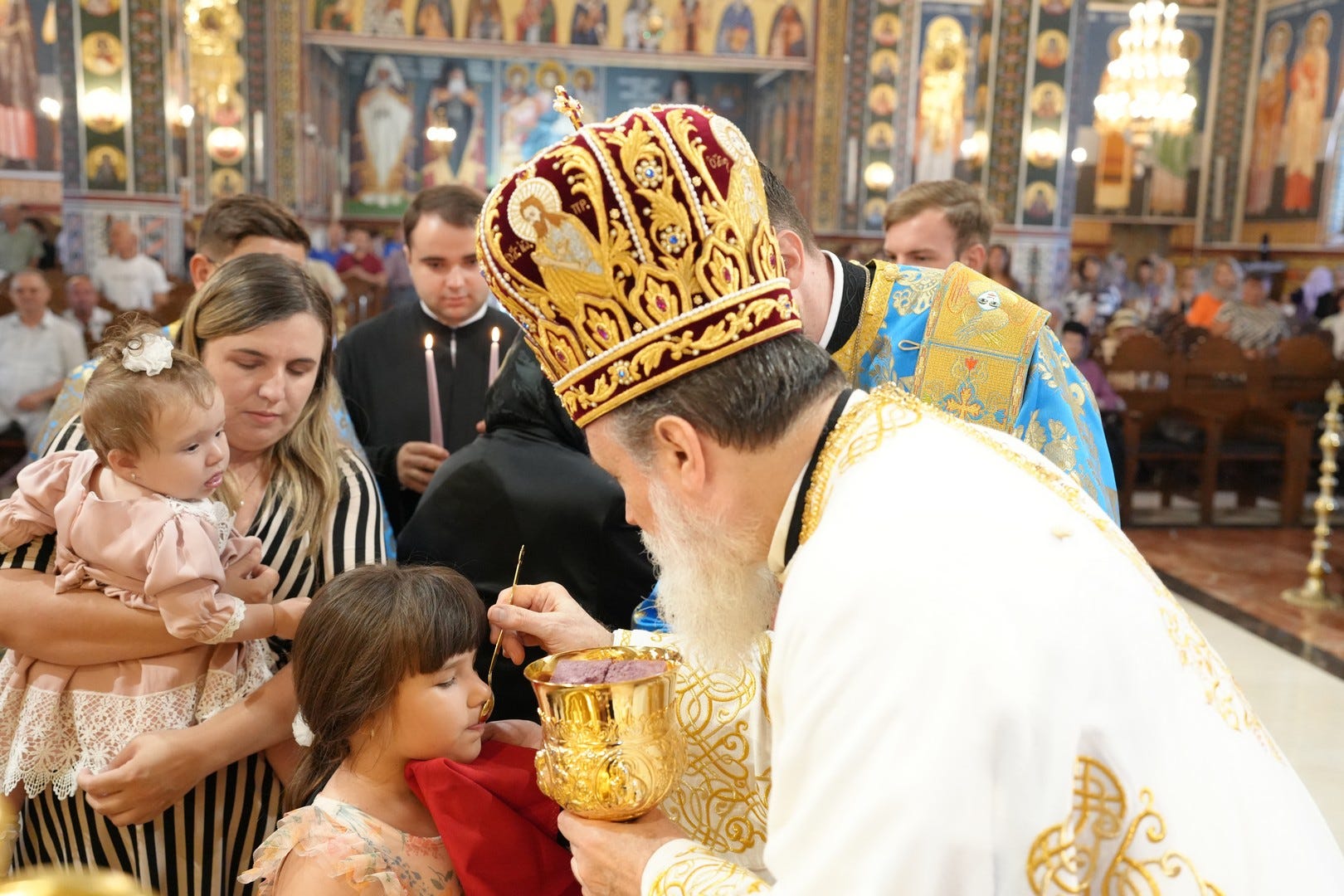 La momentul potrivit, Preasfinția Sa a împărtășit cu Trupul și Sângele Mântuitorului pe copiii prezenți și pe adulții care au primit dezlegare de la duhovnic.