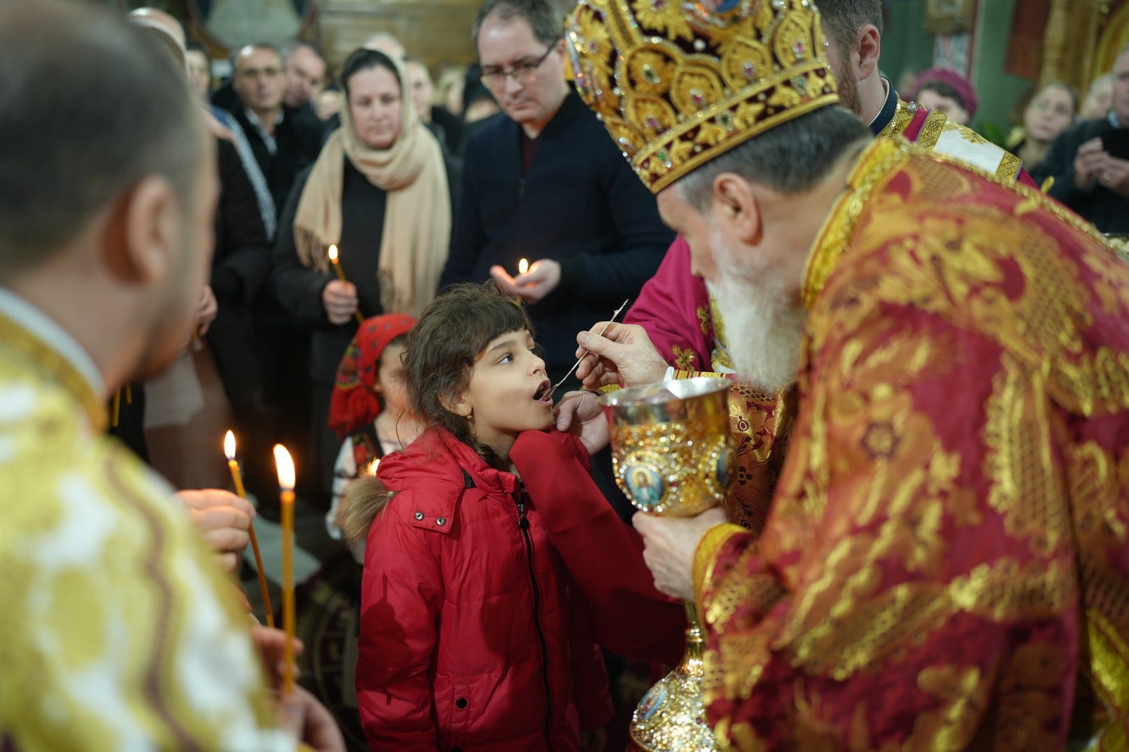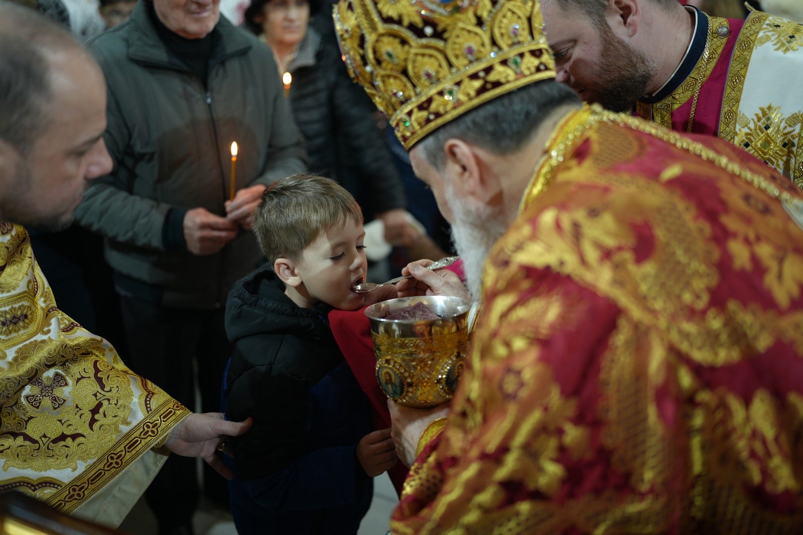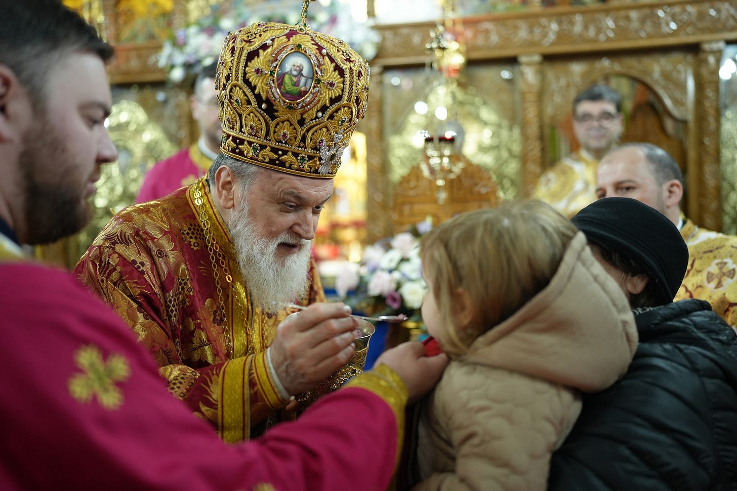 Preasfințitul Părinte a împărtășit toți copiii și adulții care au primit dezlegare de la duhovnic.