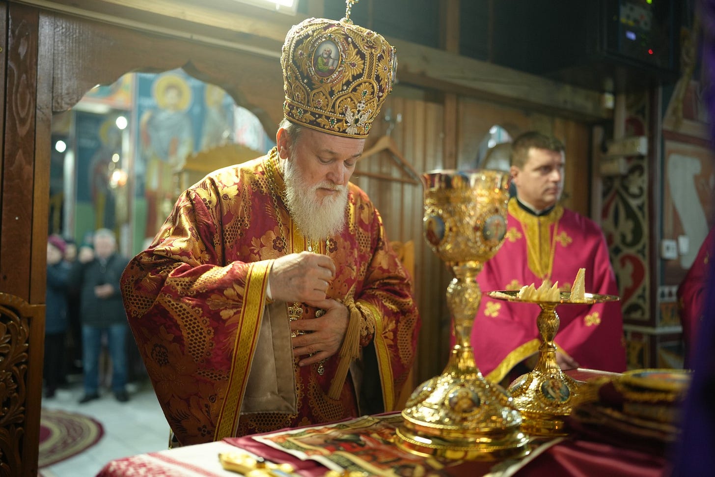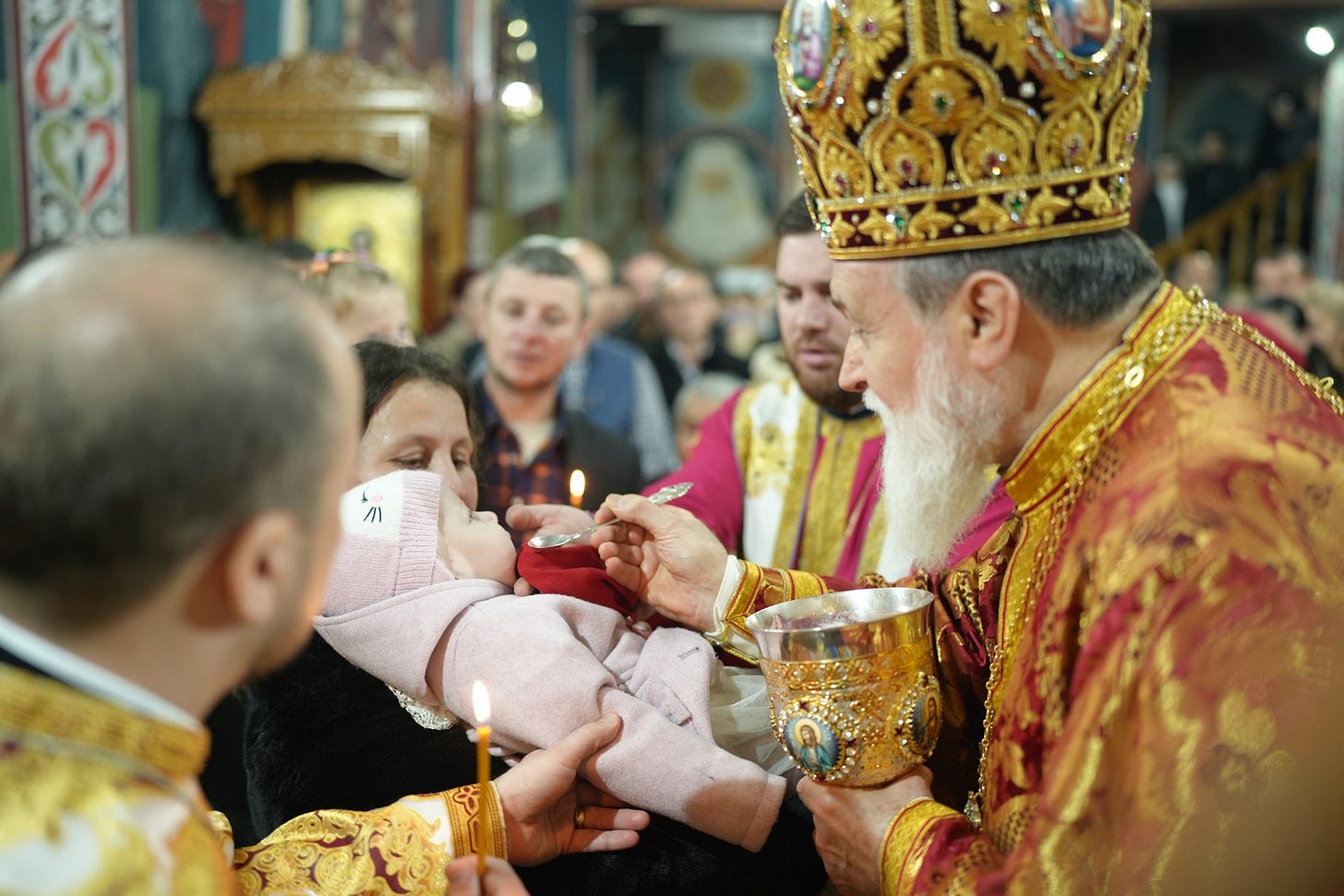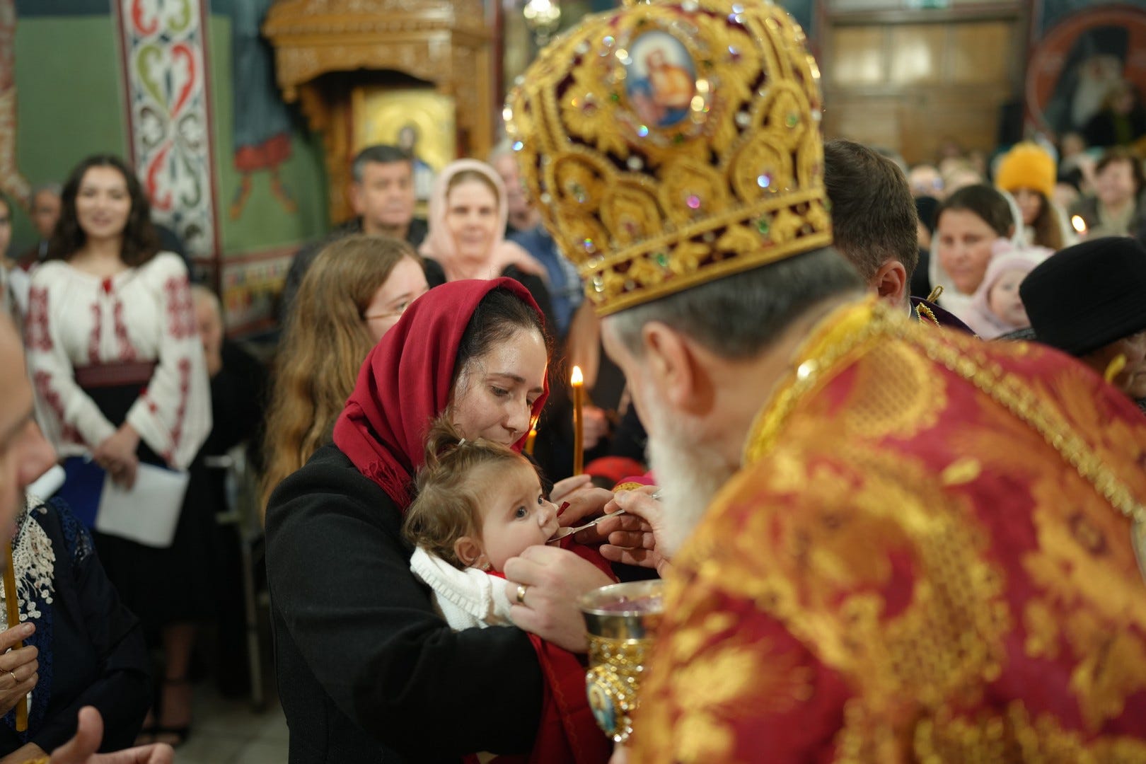 Preasfințitul Părinte a împărtășit toți copiii și adulții care au primit dezlegare de la duhovnic.
