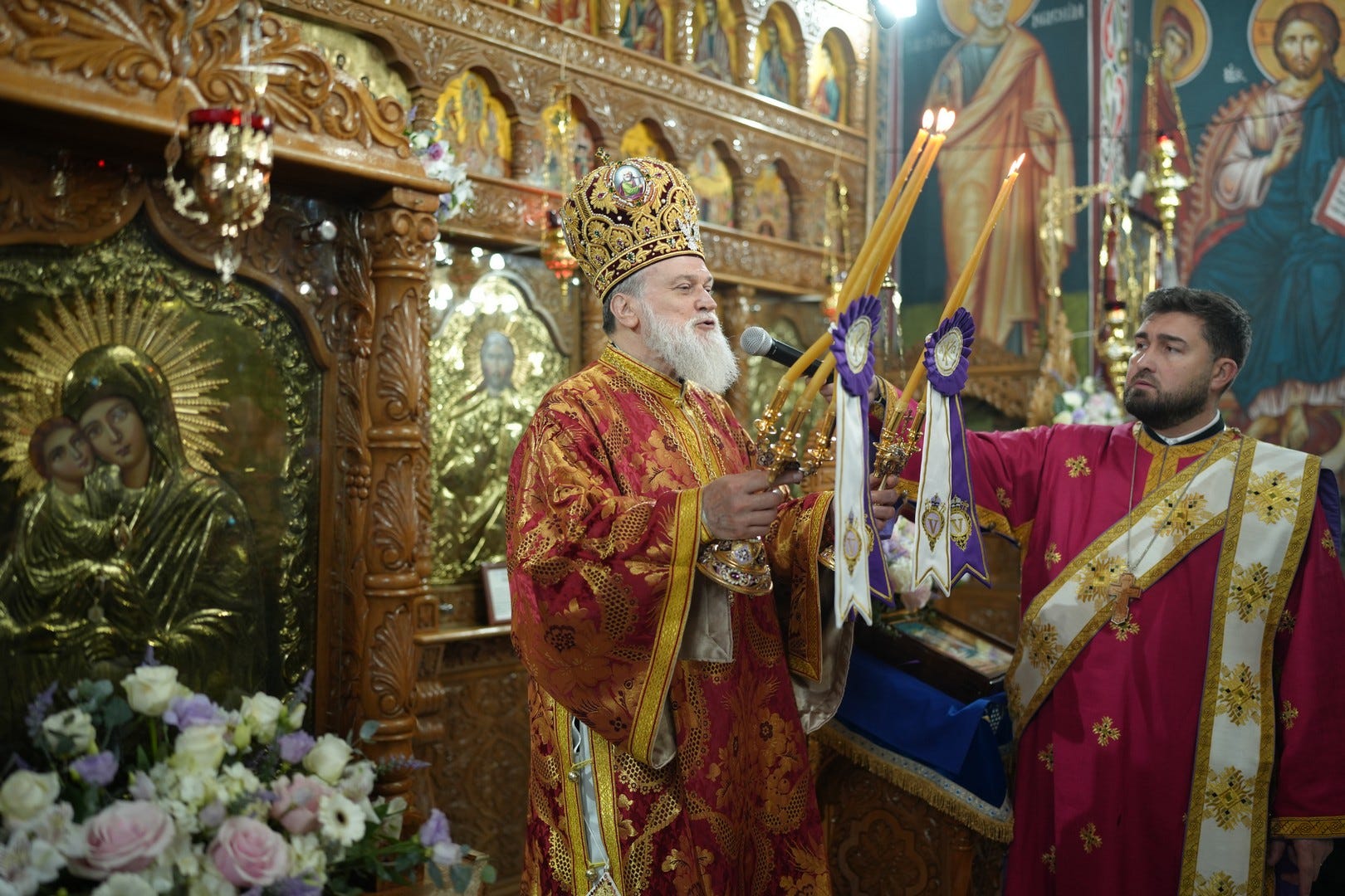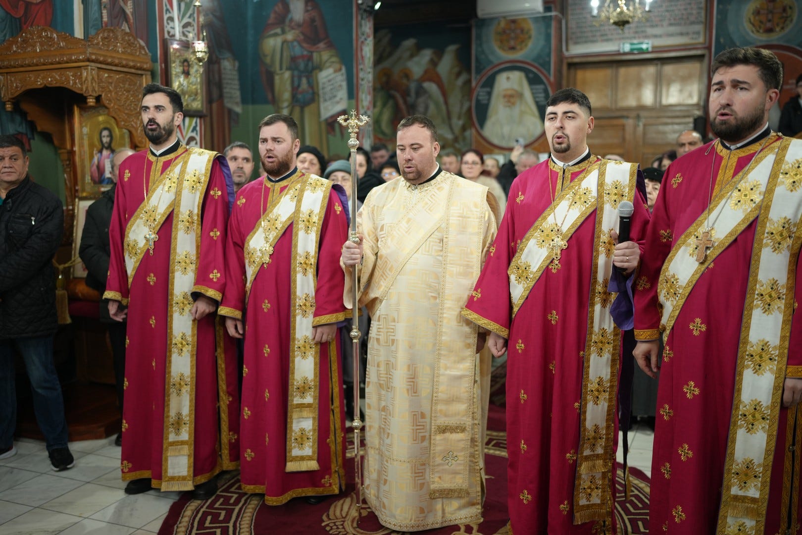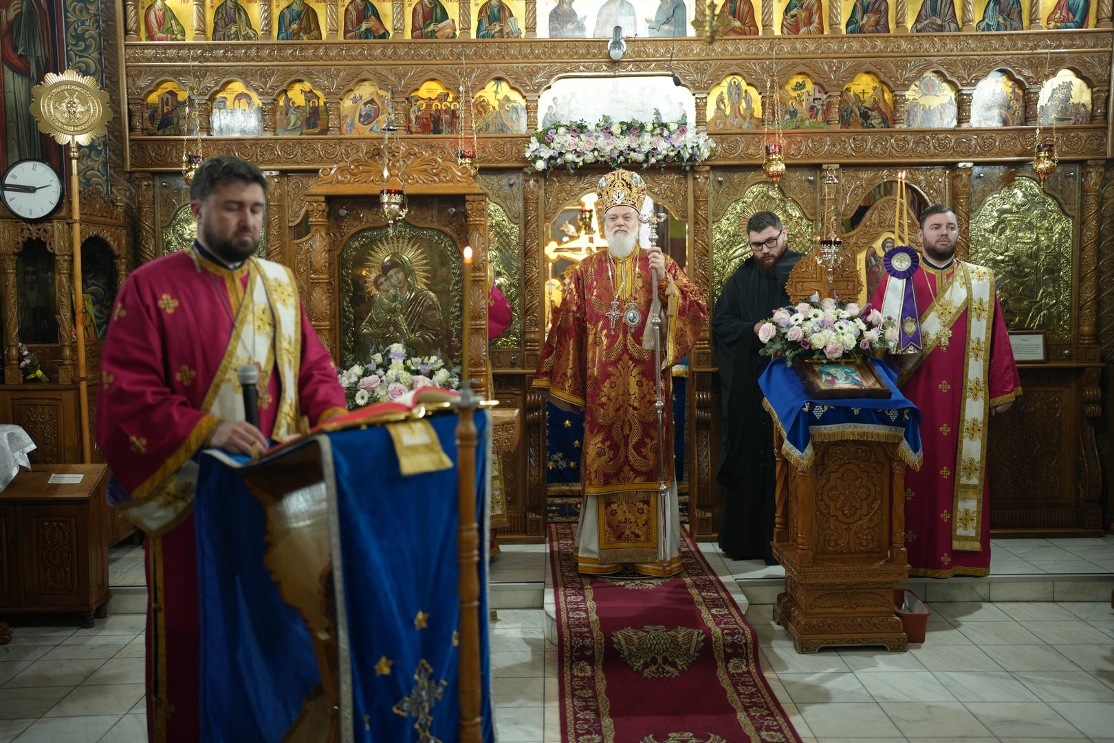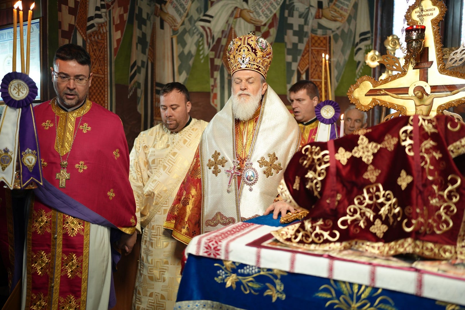 Sfânta Liturghie a fost săvârșită de către Preasfințitul Părinte Episcop Vincențiu, înconjurat de un sobor de preoți și arhidiaconi, din care au făcut parte preacuviosul părinte Arhimandrit Rafail, vicar eparhial, preacucernicii părinți consilieri Florin Ionescu, Marius Gabriel Purcărea, Nicușor Silviu Dascălu și Andrei Cornel Petre.
