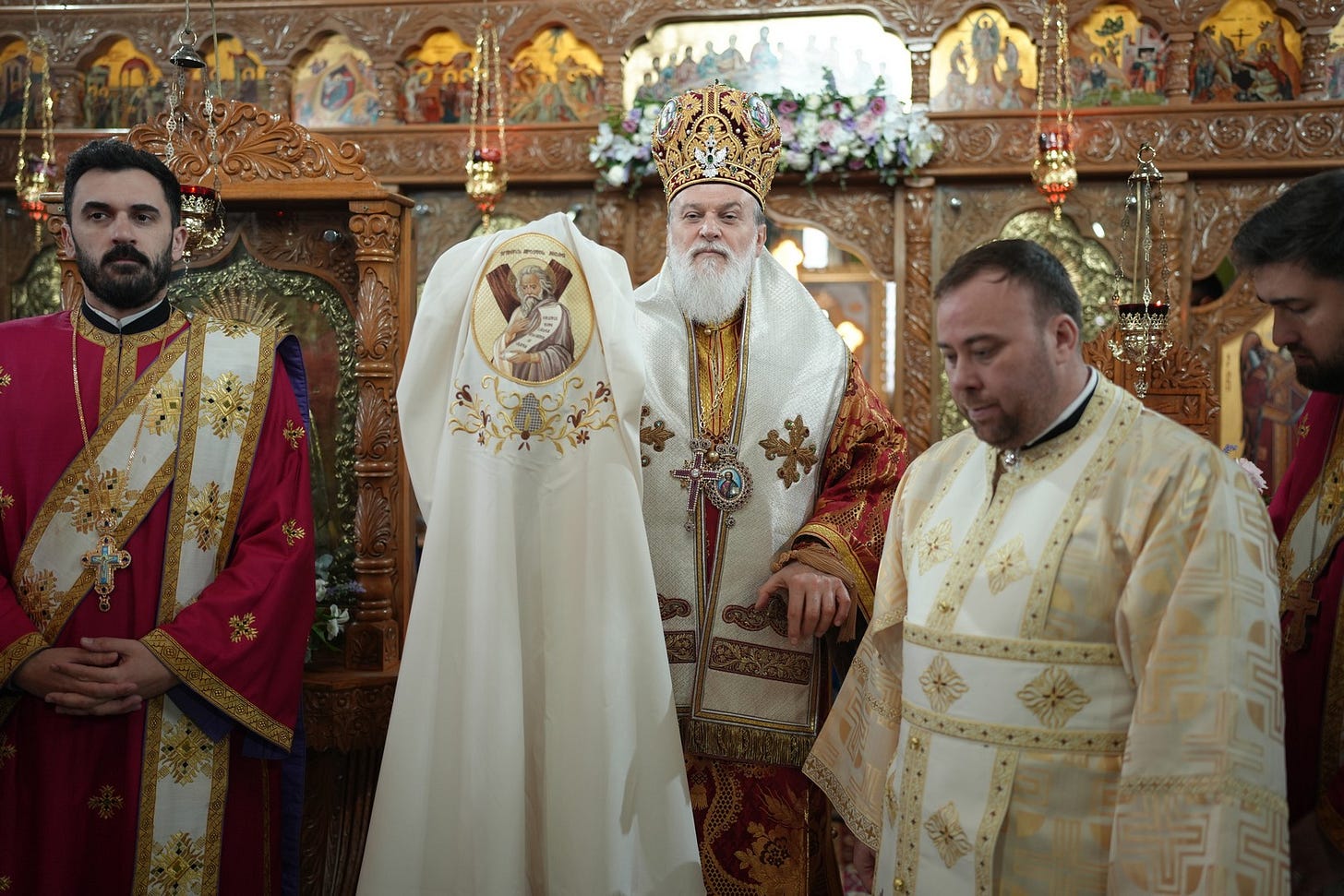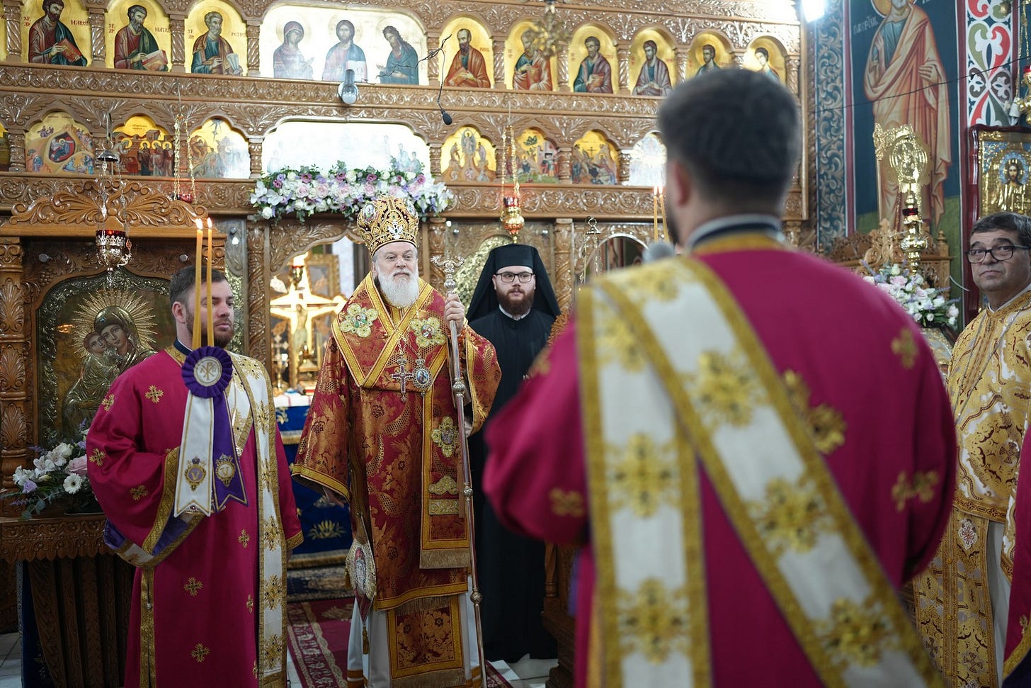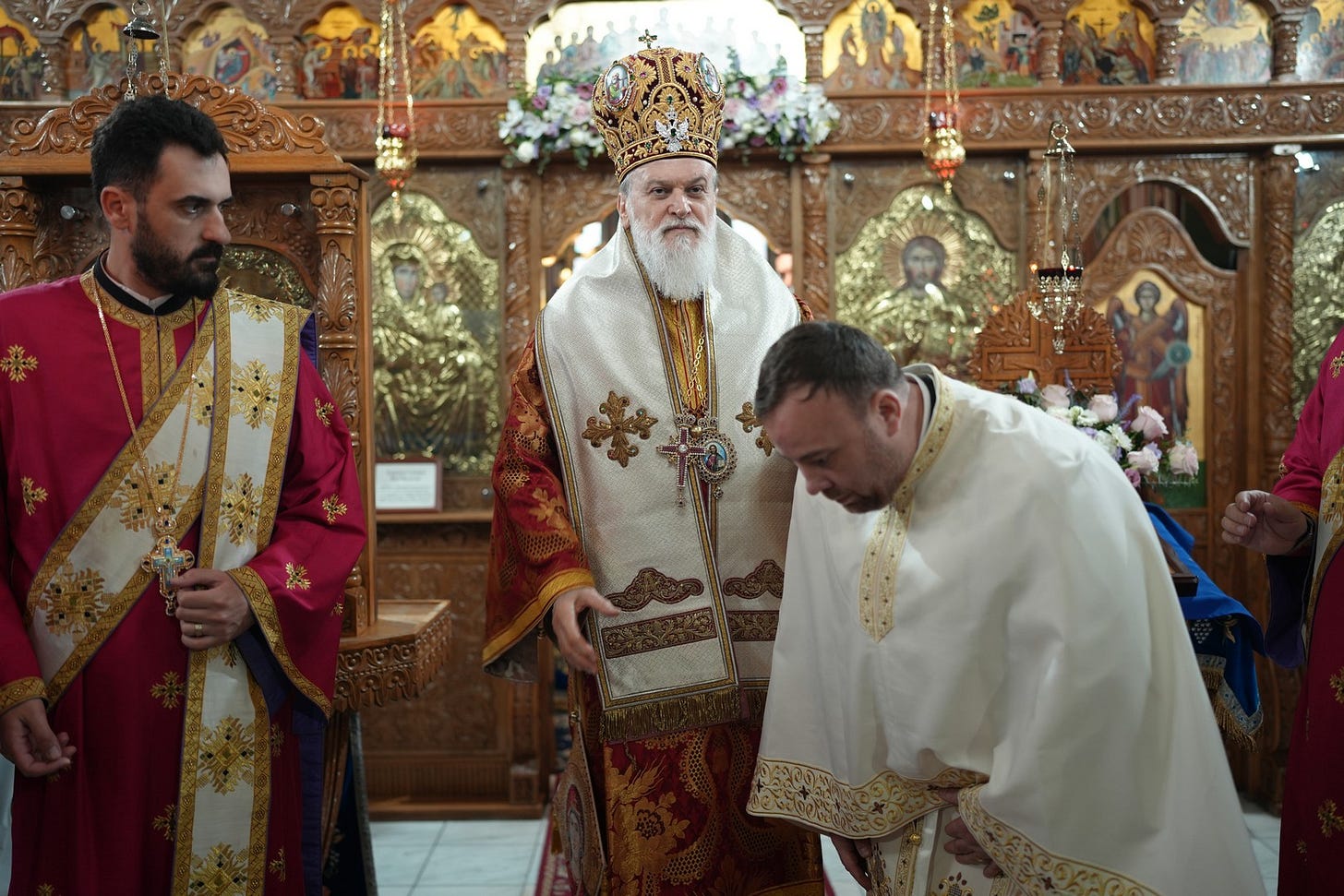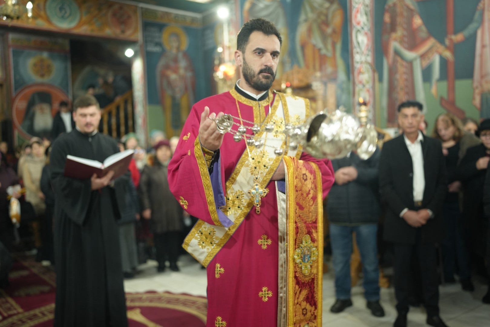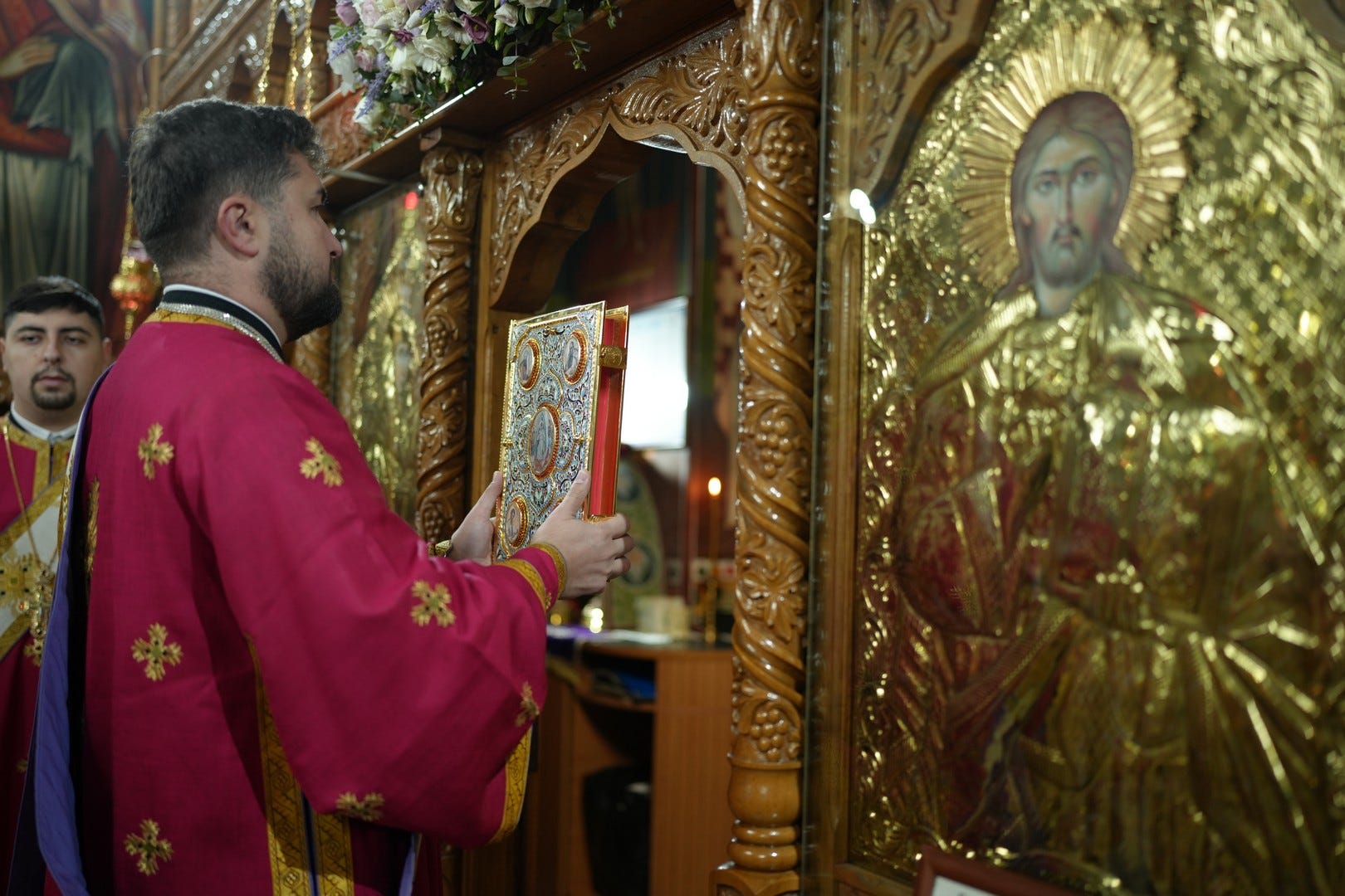 Sfânta Liturghie a fost săvârșită de către Preasfințitul Părinte Episcop Vincențiu, înconjurat de un sobor de preoți și arhidiaconi, din care au făcut parte preacuviosul părinte Arhimandrit Rafail, vicar eparhial, preacucernicii părinți consilieri Florin Ionescu, Marius Gabriel Purcărea, Nicușor Silviu Dascălu și Andrei Cornel Petre.