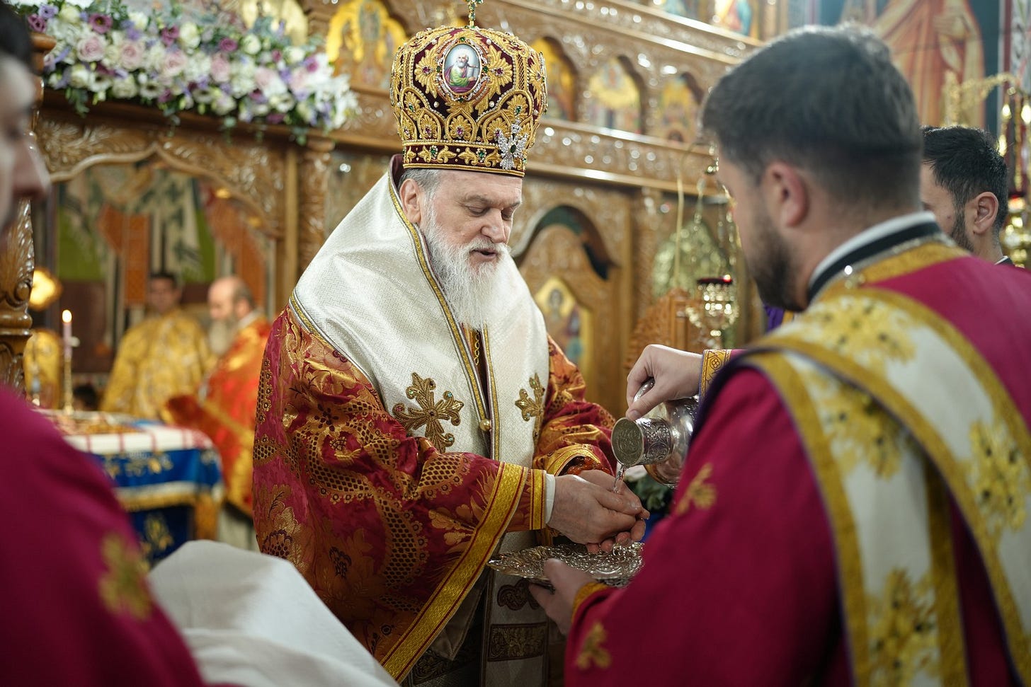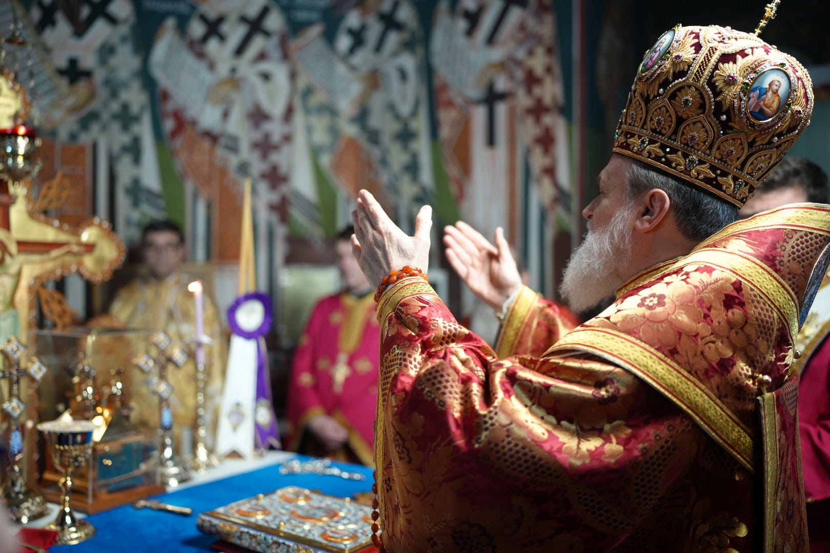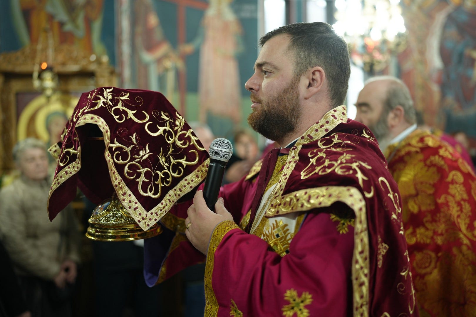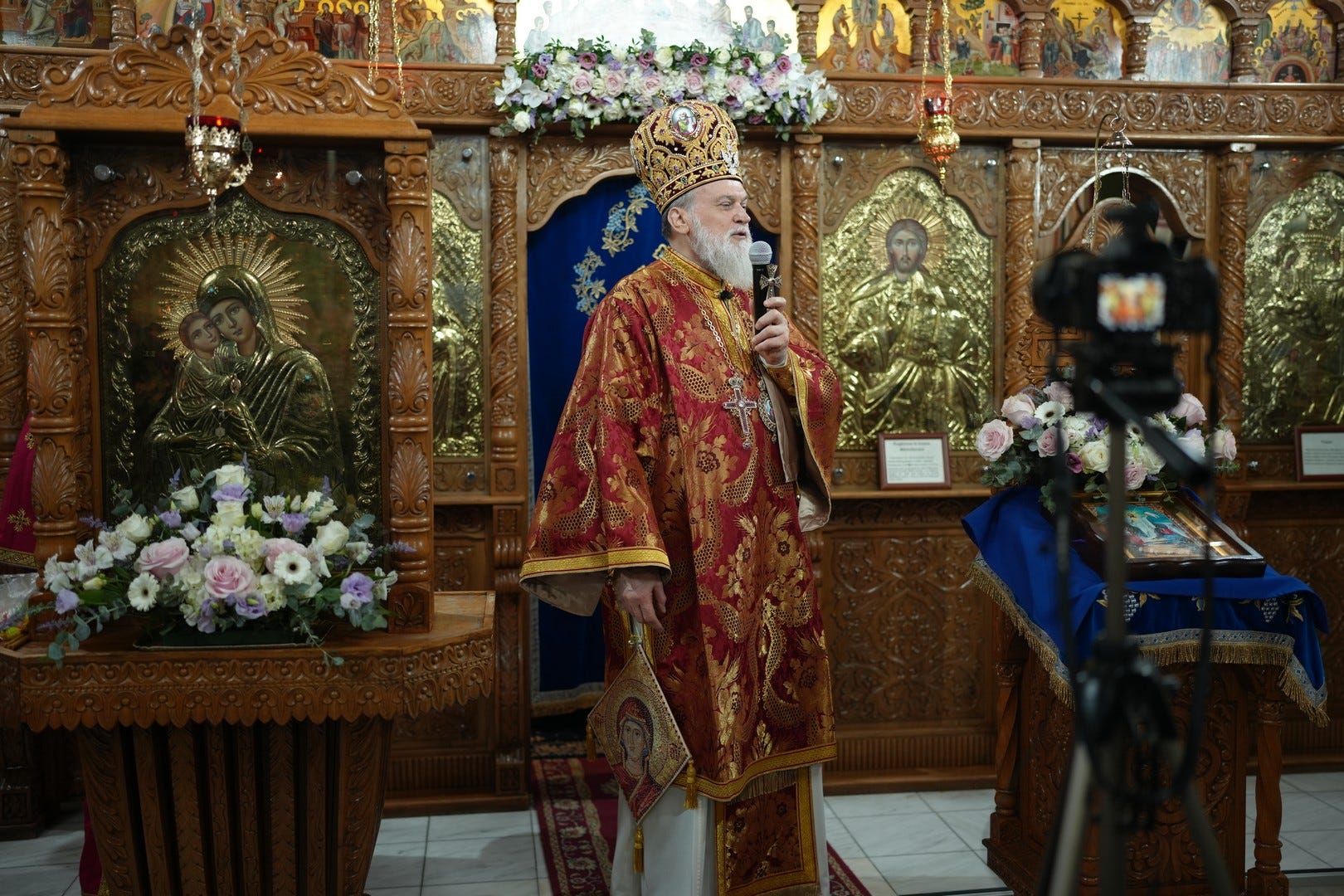 Sfânta Liturghie a fost săvârșită de către Preasfințitul Părinte Episcop Vincențiu, înconjurat de un sobor de preoți și arhidiaconi, din care au făcut parte preacuviosul părinte Arhimandrit Rafail, vicar eparhial, preacucernicii părinți consilieri Florin Ionescu, Marius Gabriel Purcărea, Nicușor Silviu Dascălu și Andrei Cornel Petre.