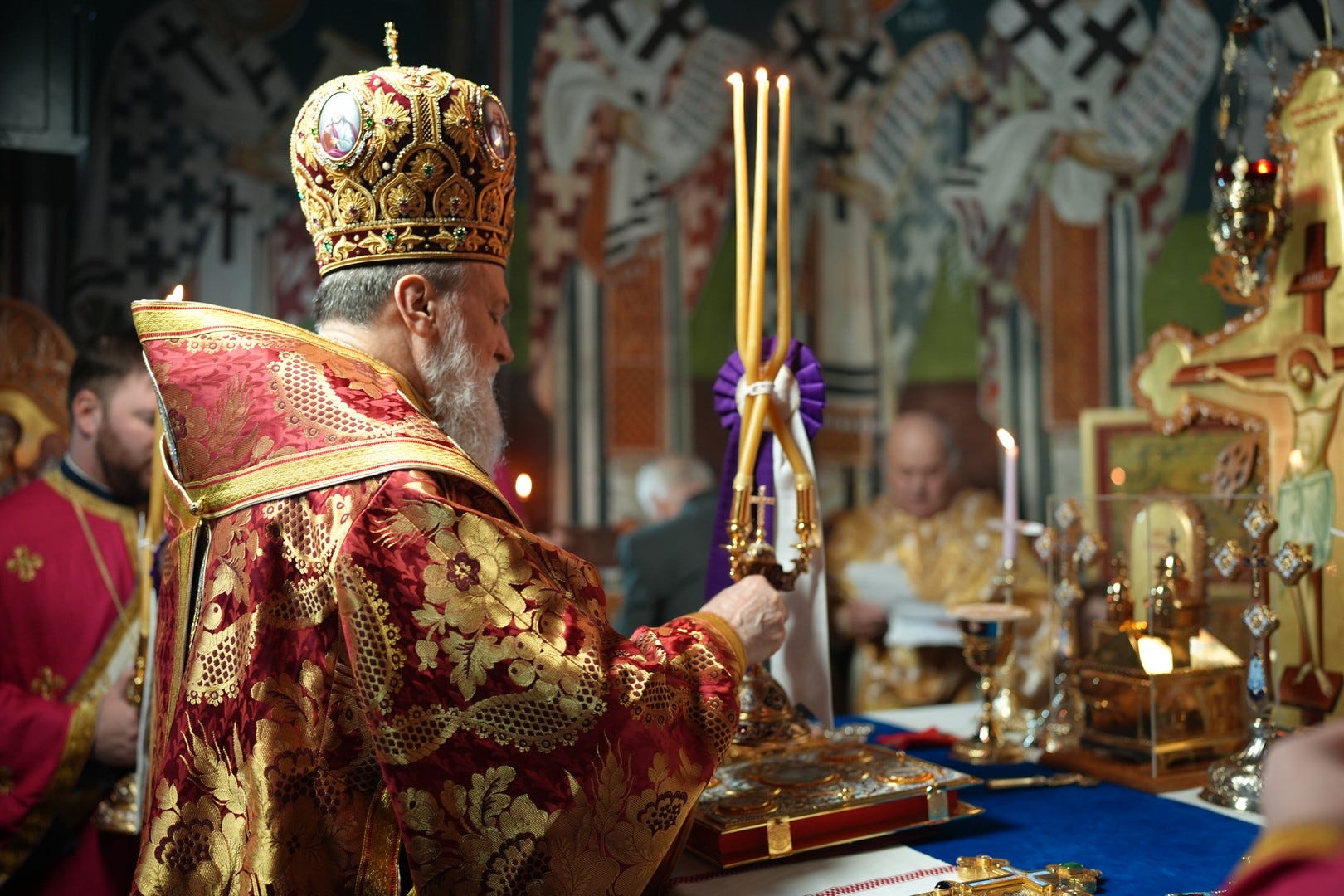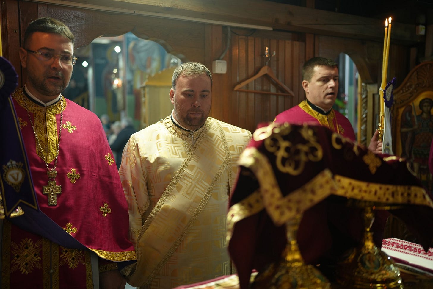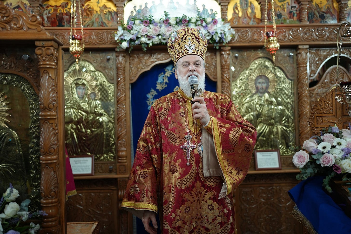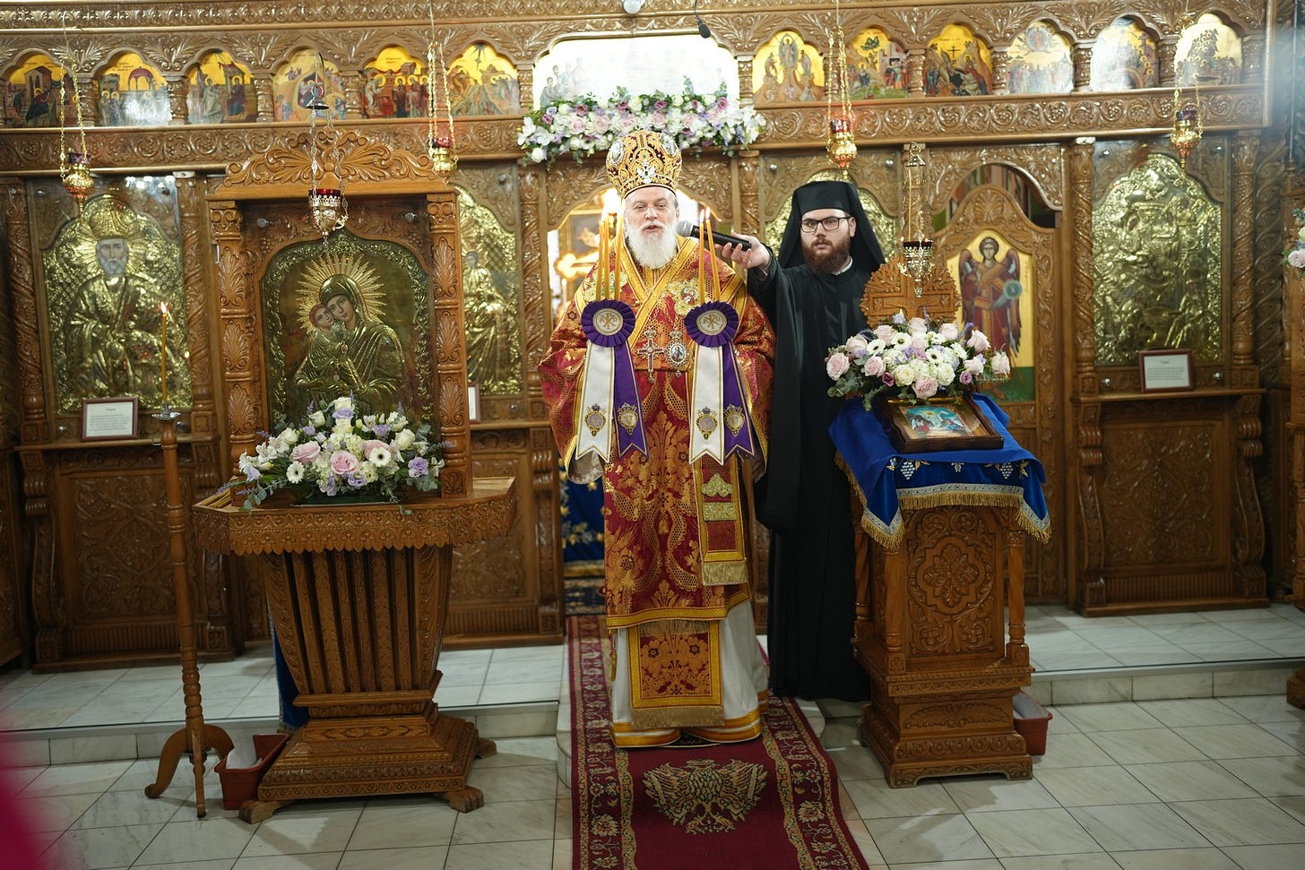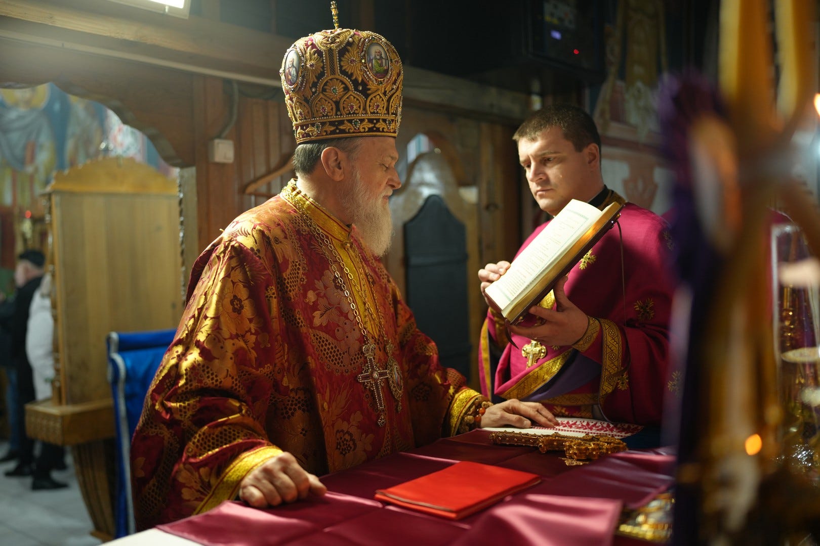Sfânta Liturghie a fost săvârșită de către Preasfințitul Părinte Episcop Vincențiu, înconjurat de un sobor de preoți și arhidiaconi, din care au făcut parte preacuviosul părinte Arhimandrit Rafail, vicar eparhial, preacucernicii părinți consilieri Florin Ionescu, Marius Gabriel Purcărea, Nicușor Silviu Dascălu și Andrei Cornel Petre.