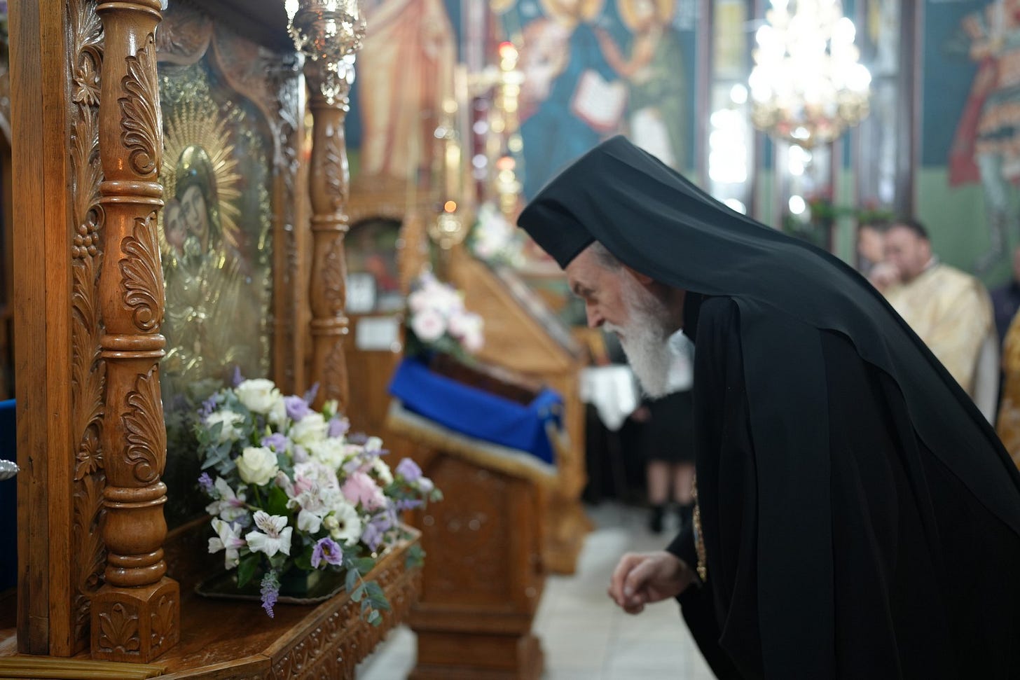 Preasfinția Sa a felicitat pe doamna Ecaterina Stroe, care în câteva zile sărbătorește ziua onomastică, dăruindu-i un buchet de flori.