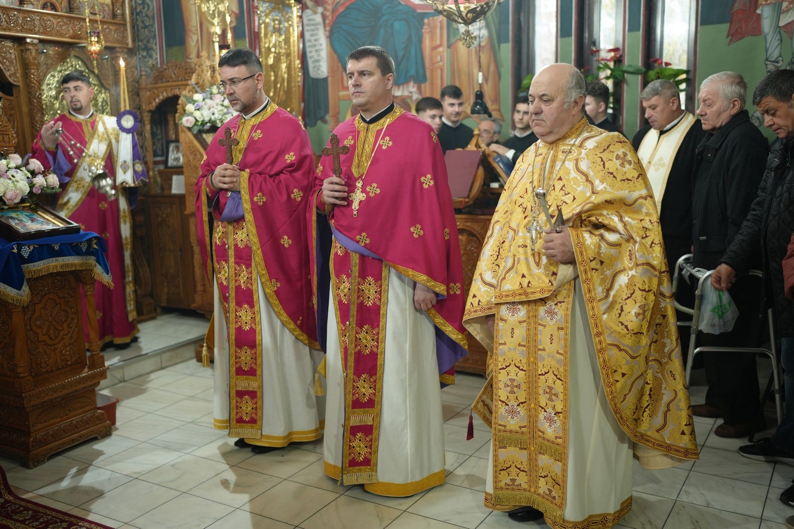 Credincioșii prezenți la slujbă au participat cu evlavie la Sfânta Liturghie.